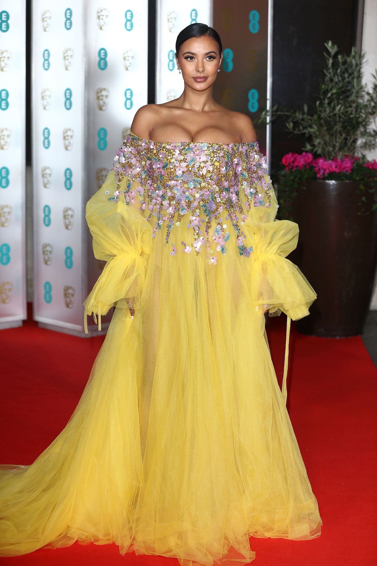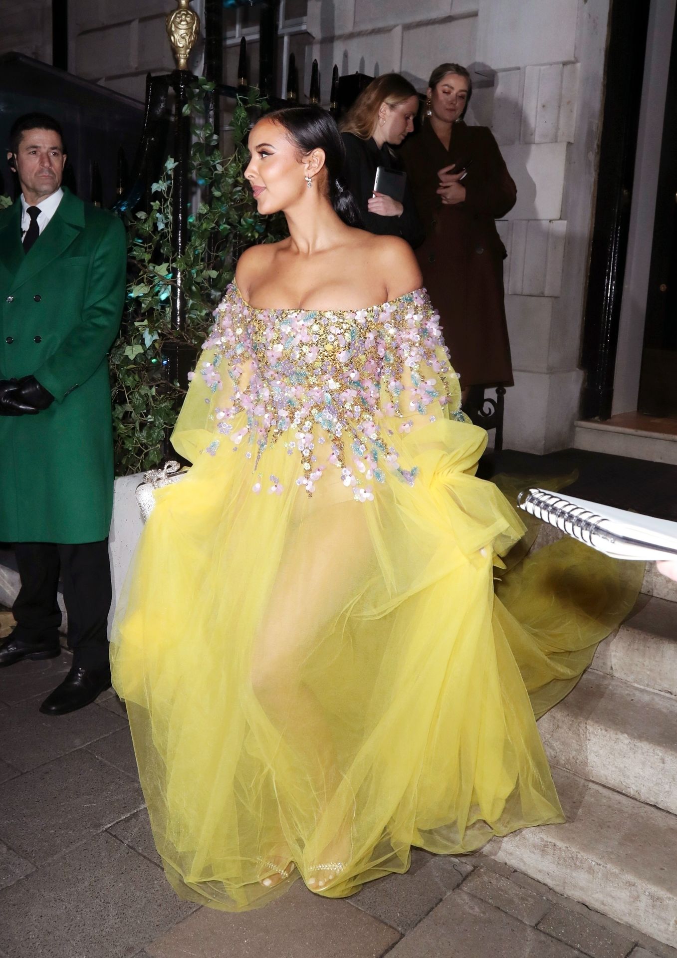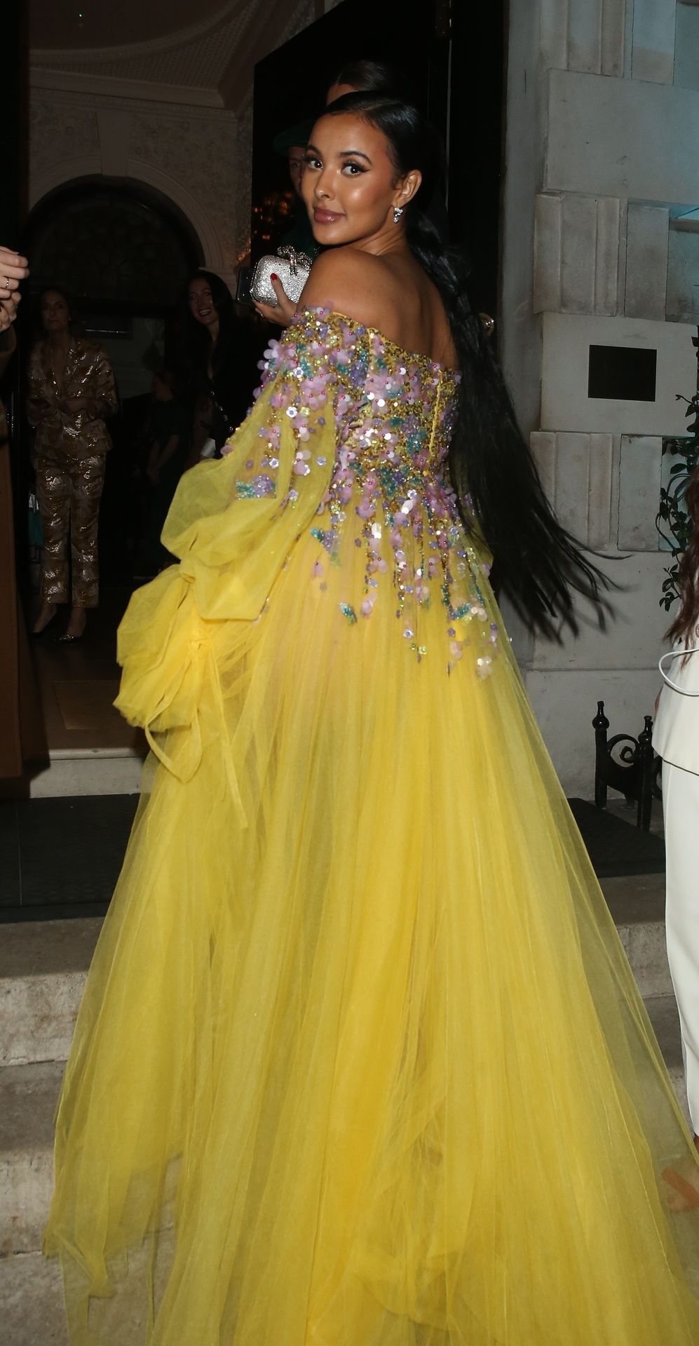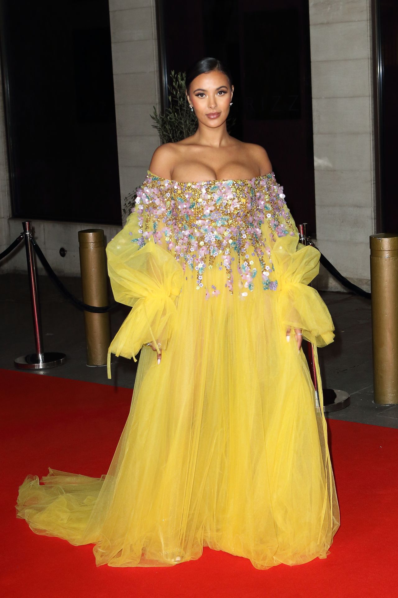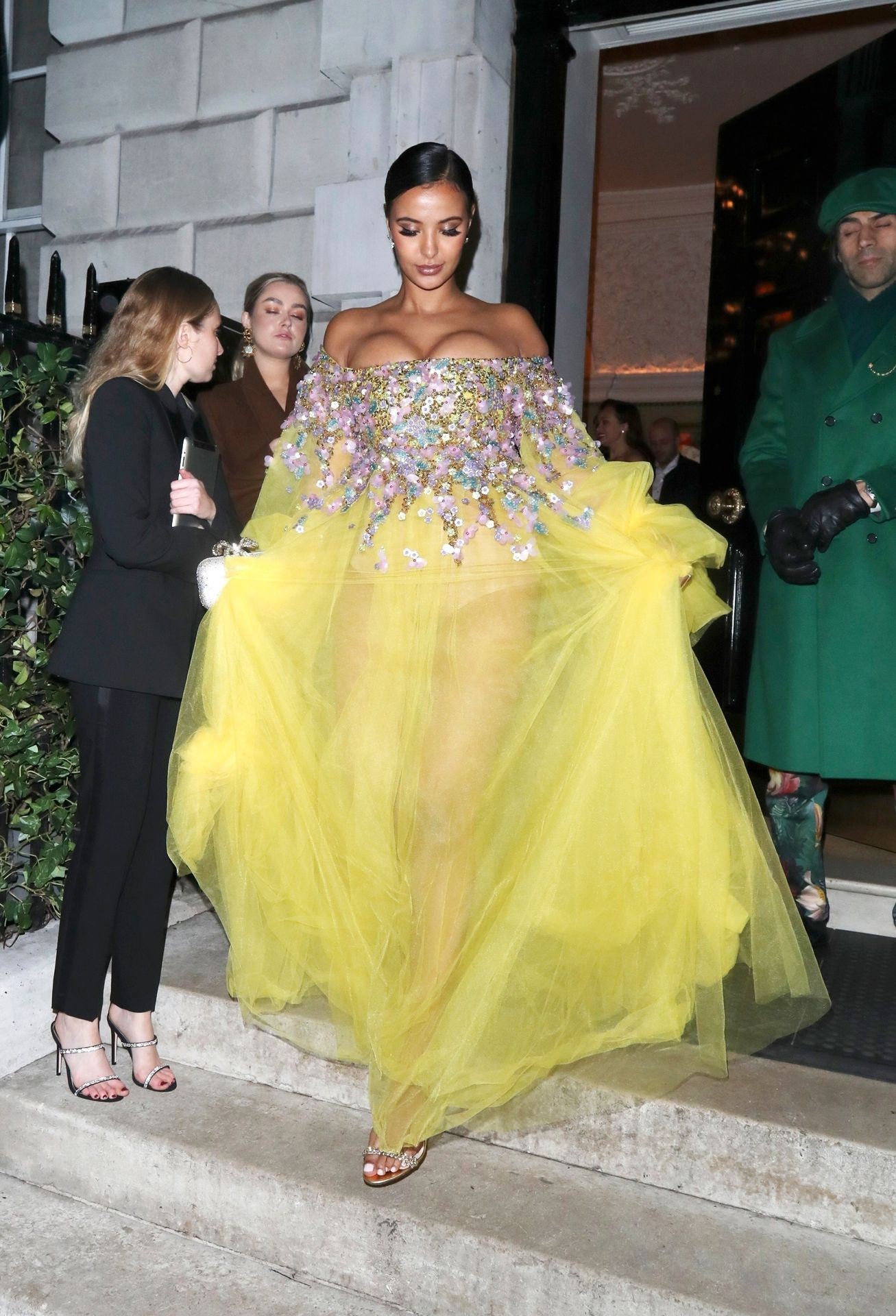 Busty TV host Maya Jama was photographed while attending the British Vogue and Tiffany & Co. Celebrate Fashion and Film Party at Annabel’s in London, 02/02/2020.