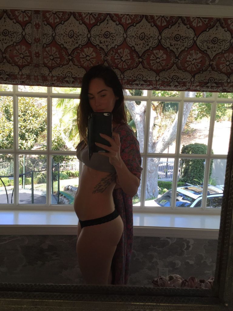 Check out a few Megan Fox’s non-nude leaked Fappening photos from iCloud (2016). You can see her belly and tattoo in honor of her husband, Austin Green.