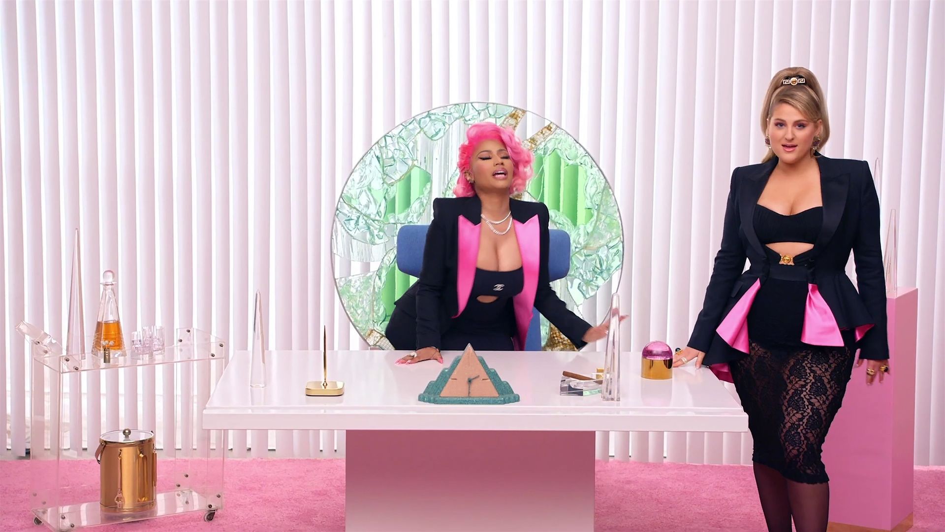 Meghan Trainor and Nicki Minaj present the new music video ‘Nice to Meet Ya’ (2020). The singers showed their tits while singing.