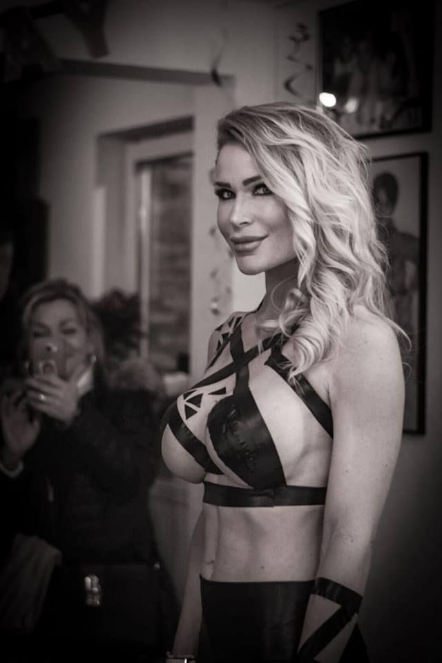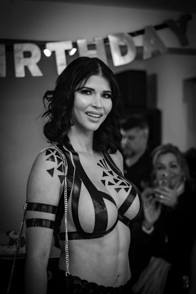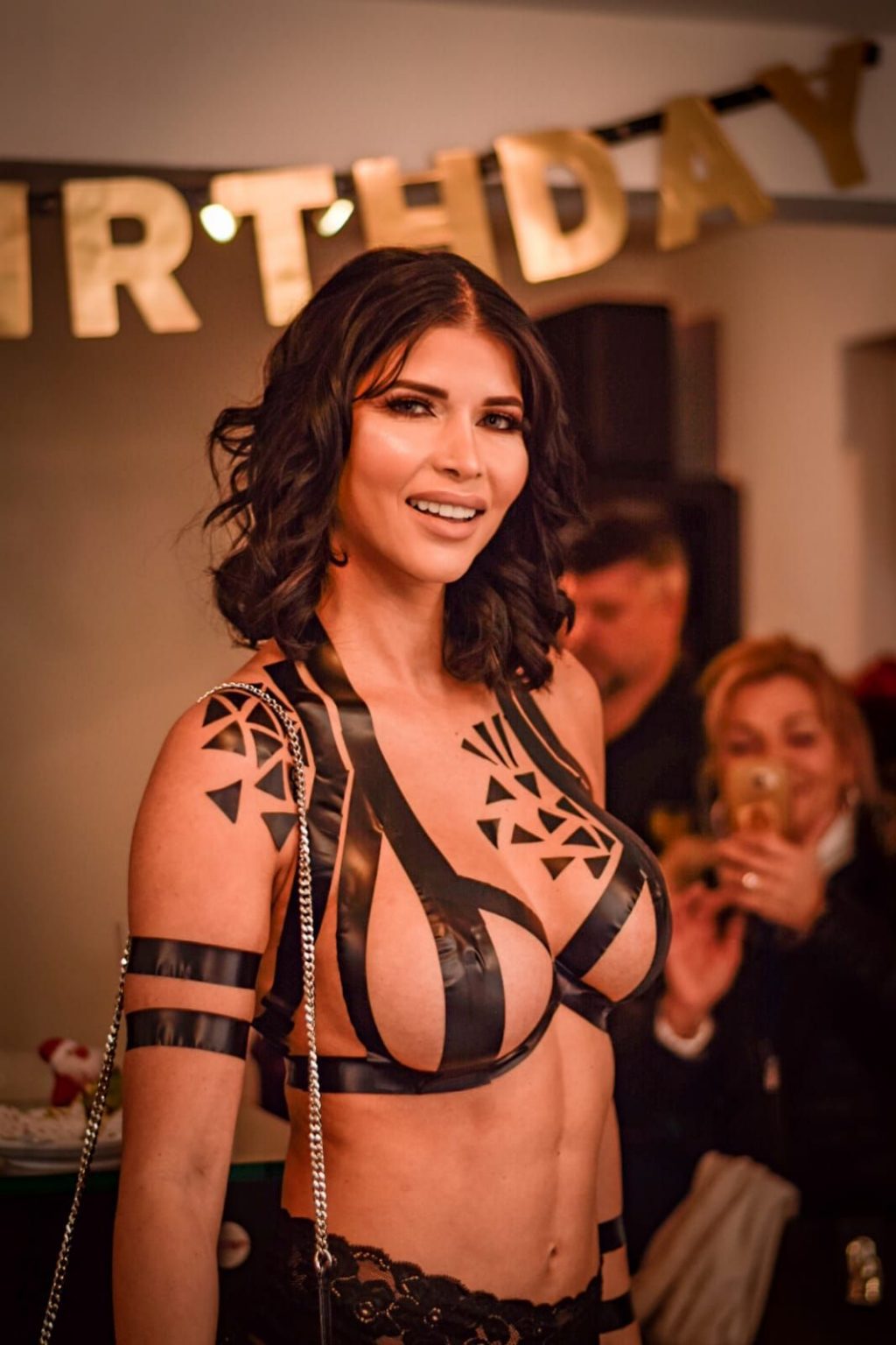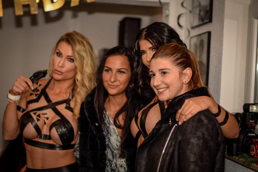 German erotic model Micaela Schäfer celebrated the 10th anniversary of BARBER Nik in Waiblingen together with Playboy’s Playmate Ramona Bernhard (December 2018).