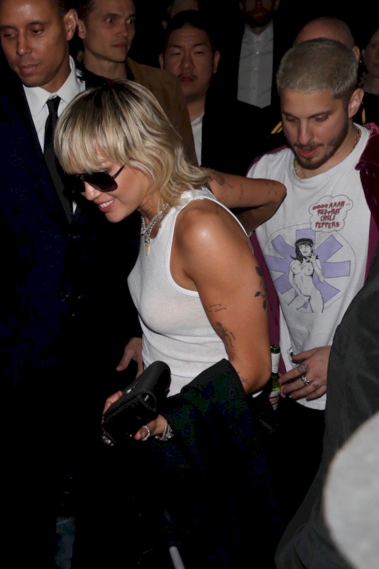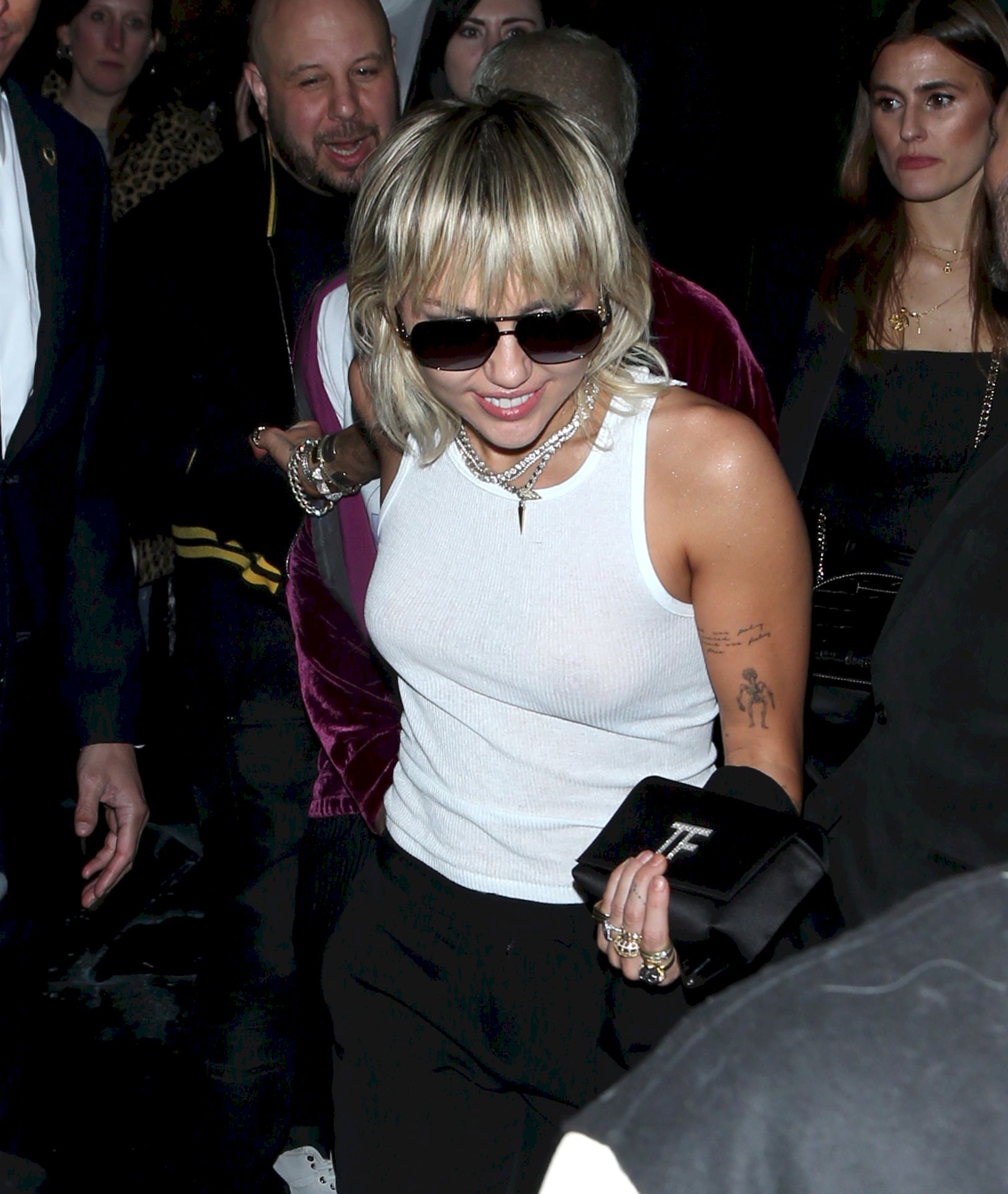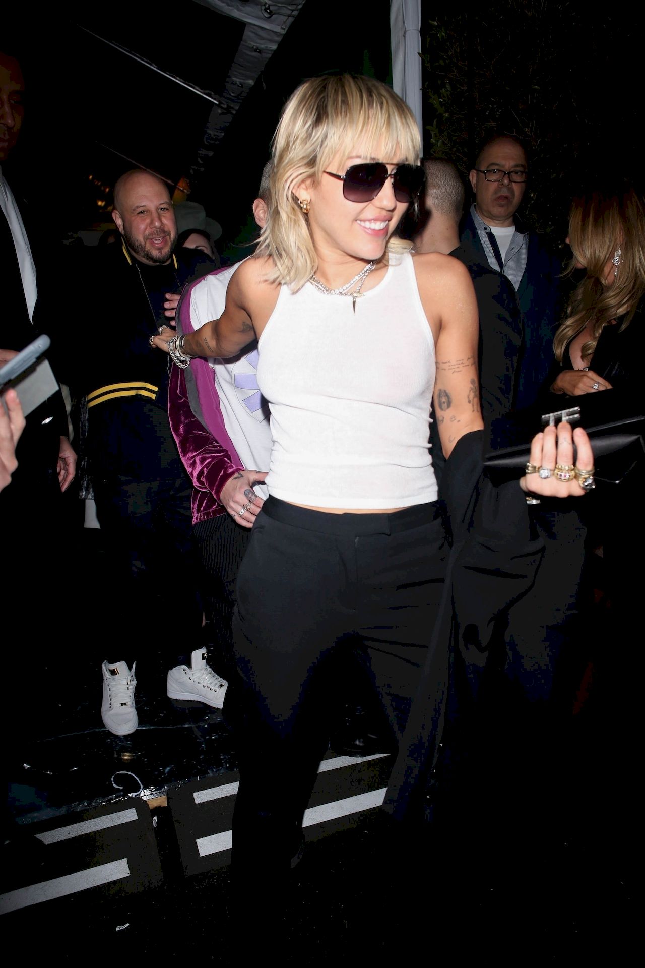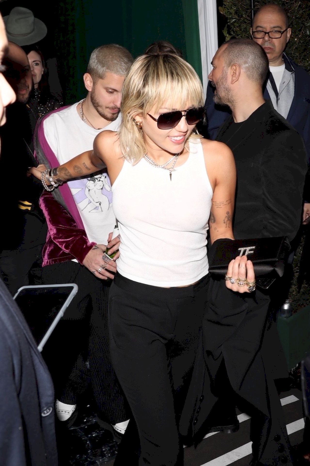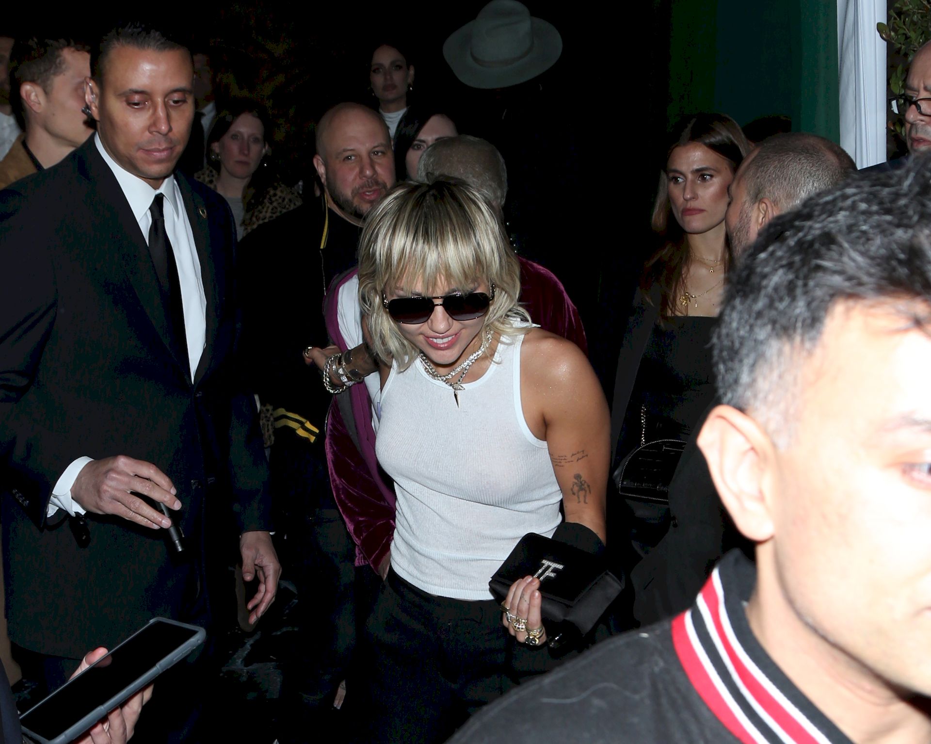 The Fappening Star, singer Miley Cyrus leaves Chateau Marmont wearing a plain white tank top without a bra, 02/07/2020.