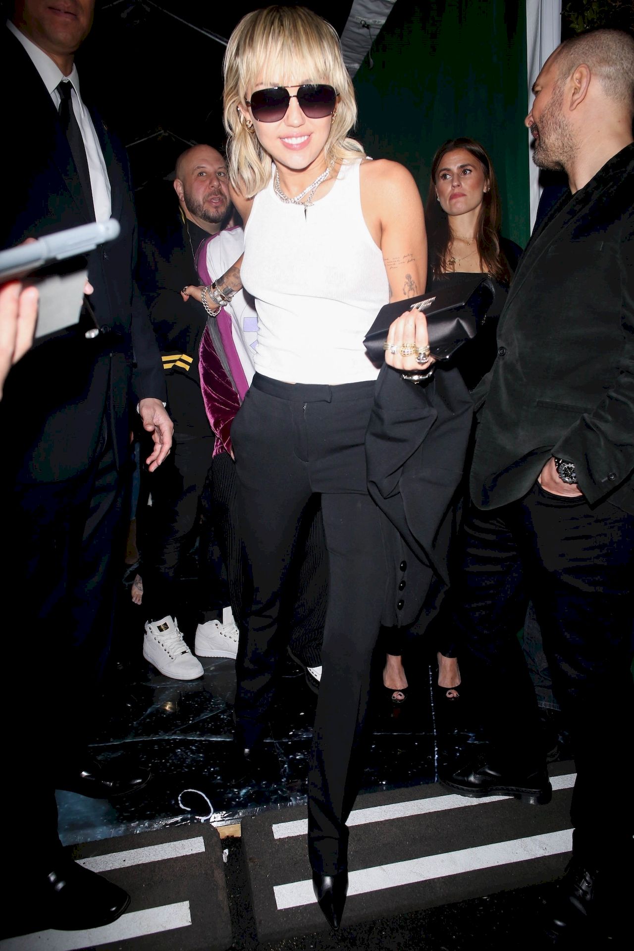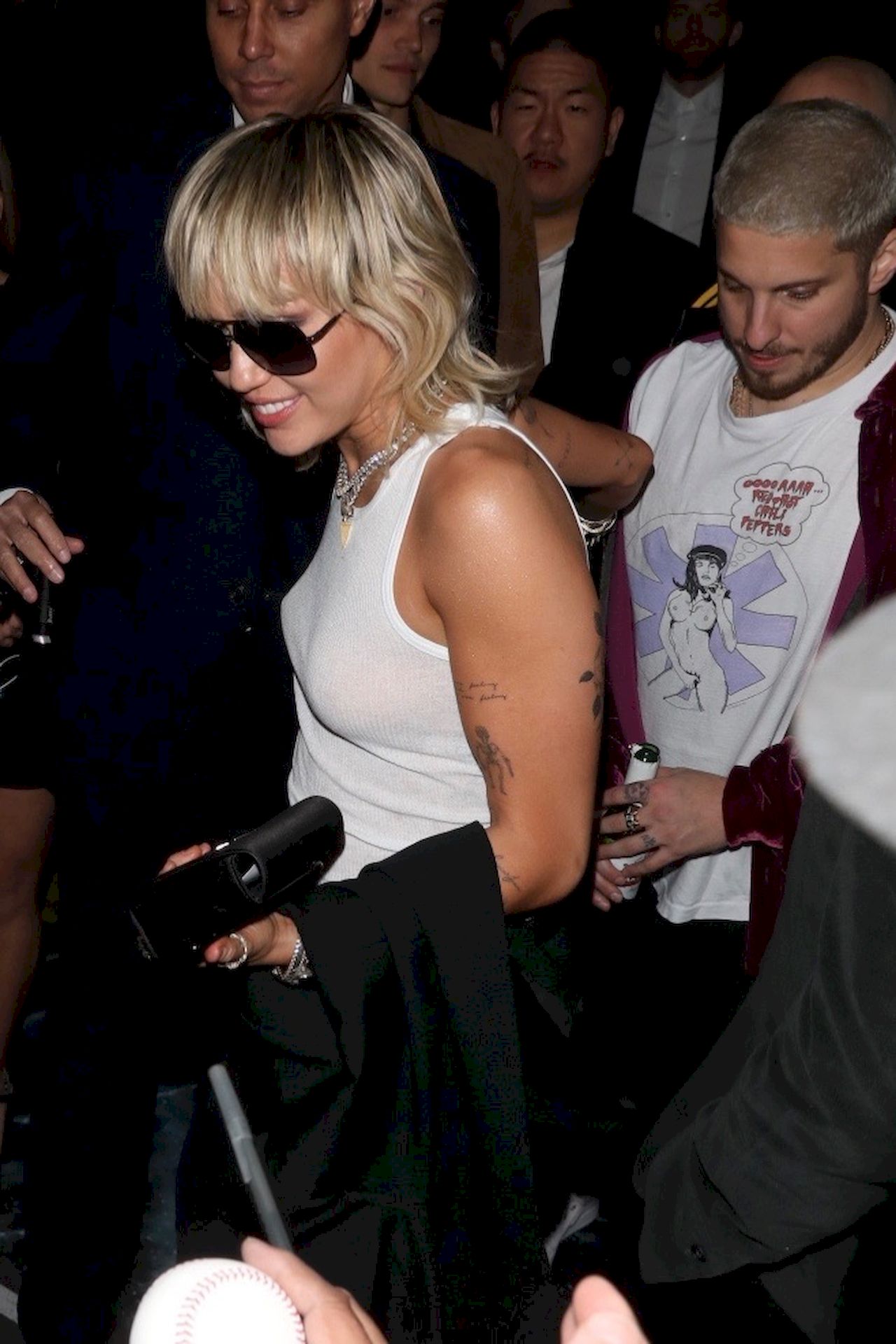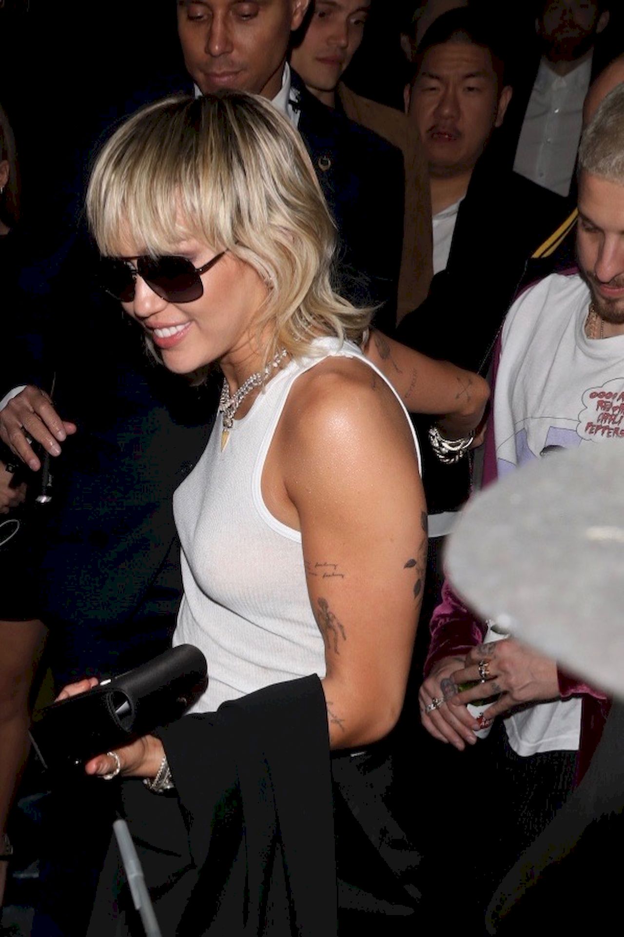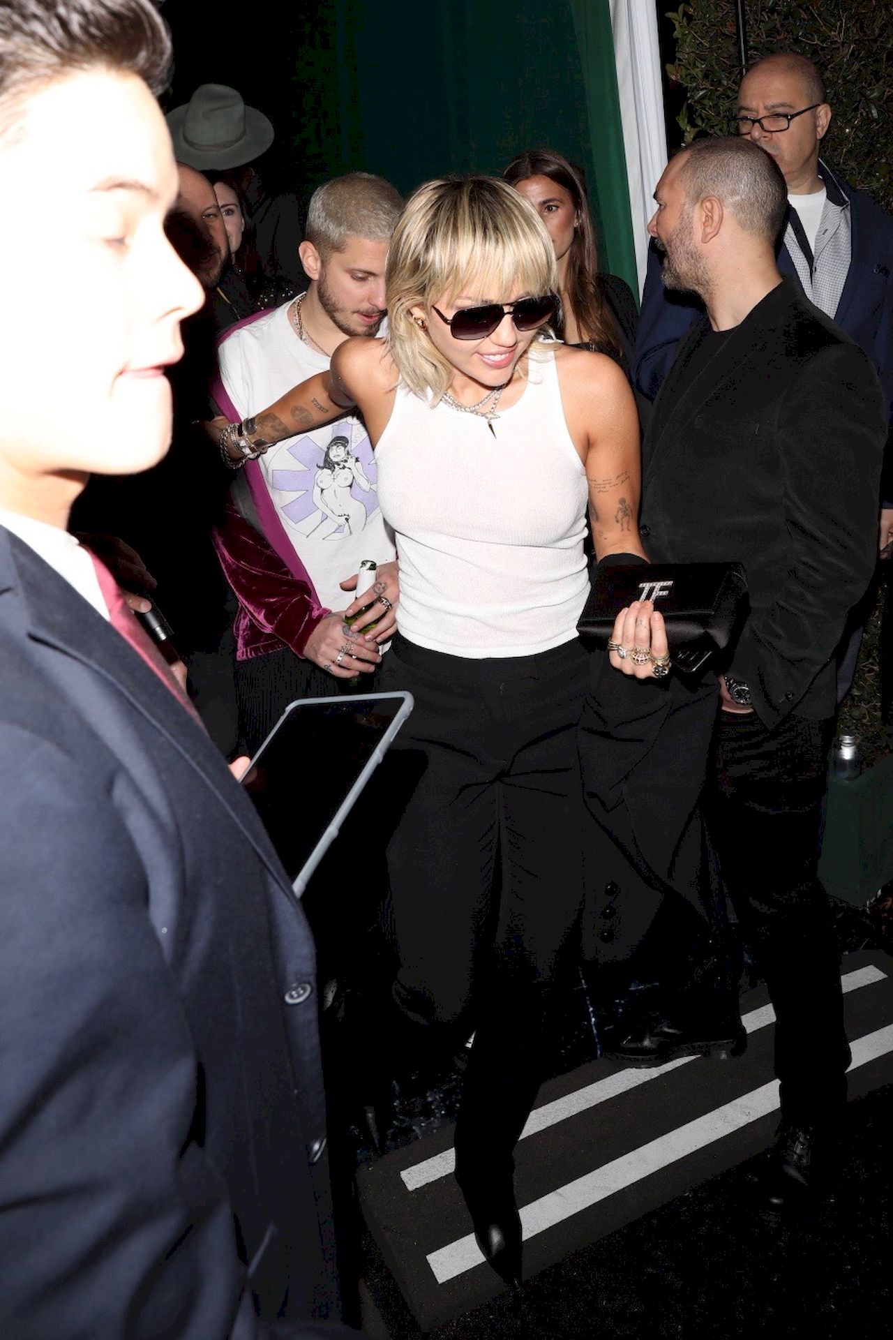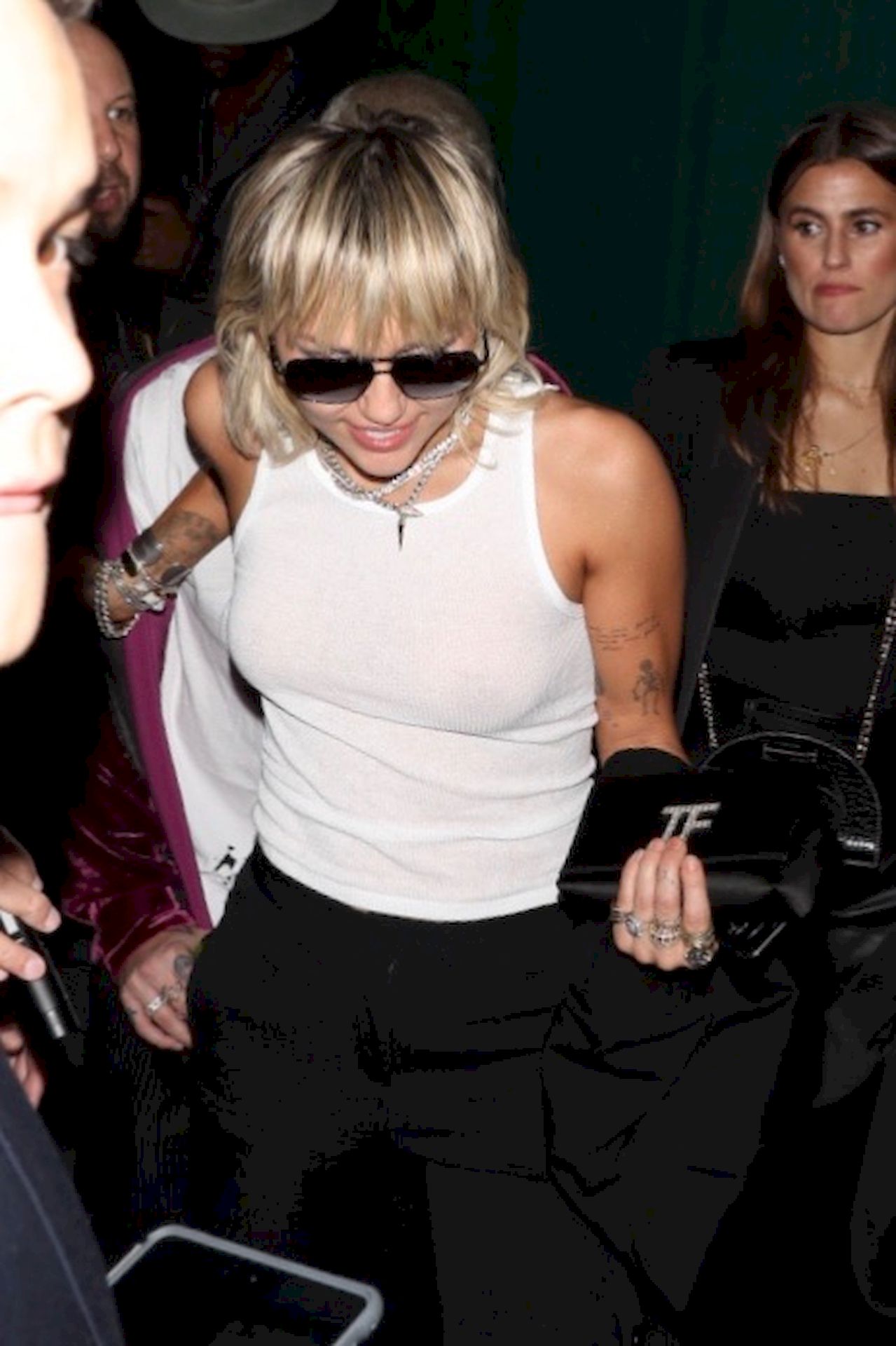 The Fappening Star, singer Miley Cyrus leaves Chateau Marmont wearing a plain white tank top without a bra, 02/07/2020.