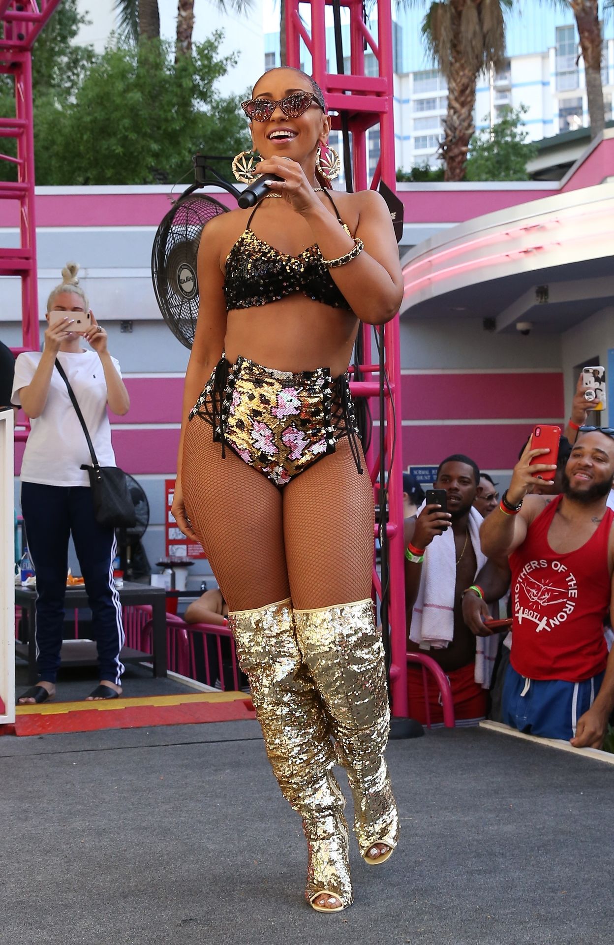 Singer, songwriter, producer and actress Mya (Mýa Marie Harrison) performs live at the Go Pool Dayclub at the Flamingo Hotel and Casino in Las Vegas, Nevada, 09/28/2019.