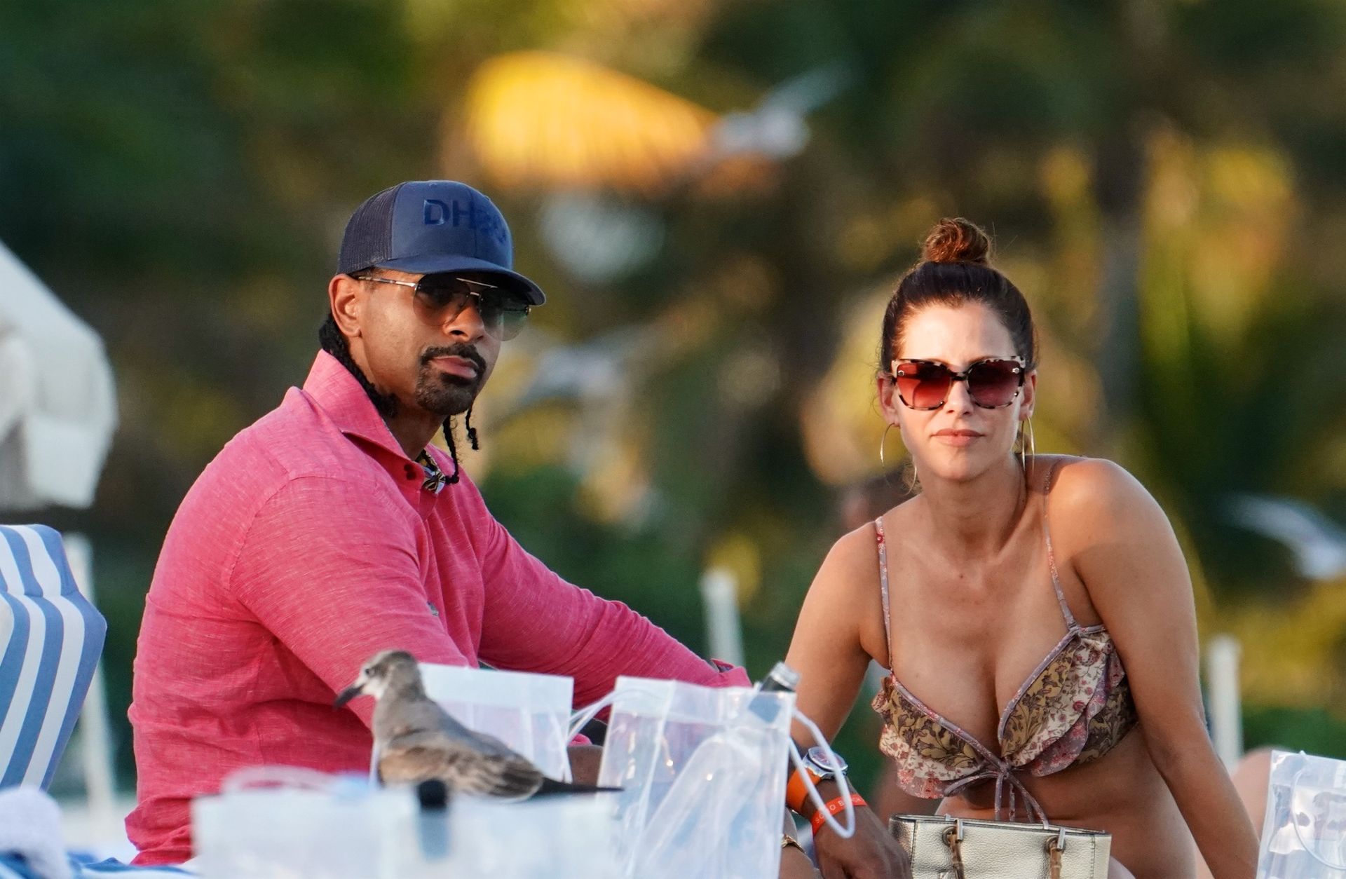 British boxing legend David Haye enjoys a day in the sun at a beach party in Miami Beach alongside his bikini clad ex-wife Natasha, 12/15/2019.