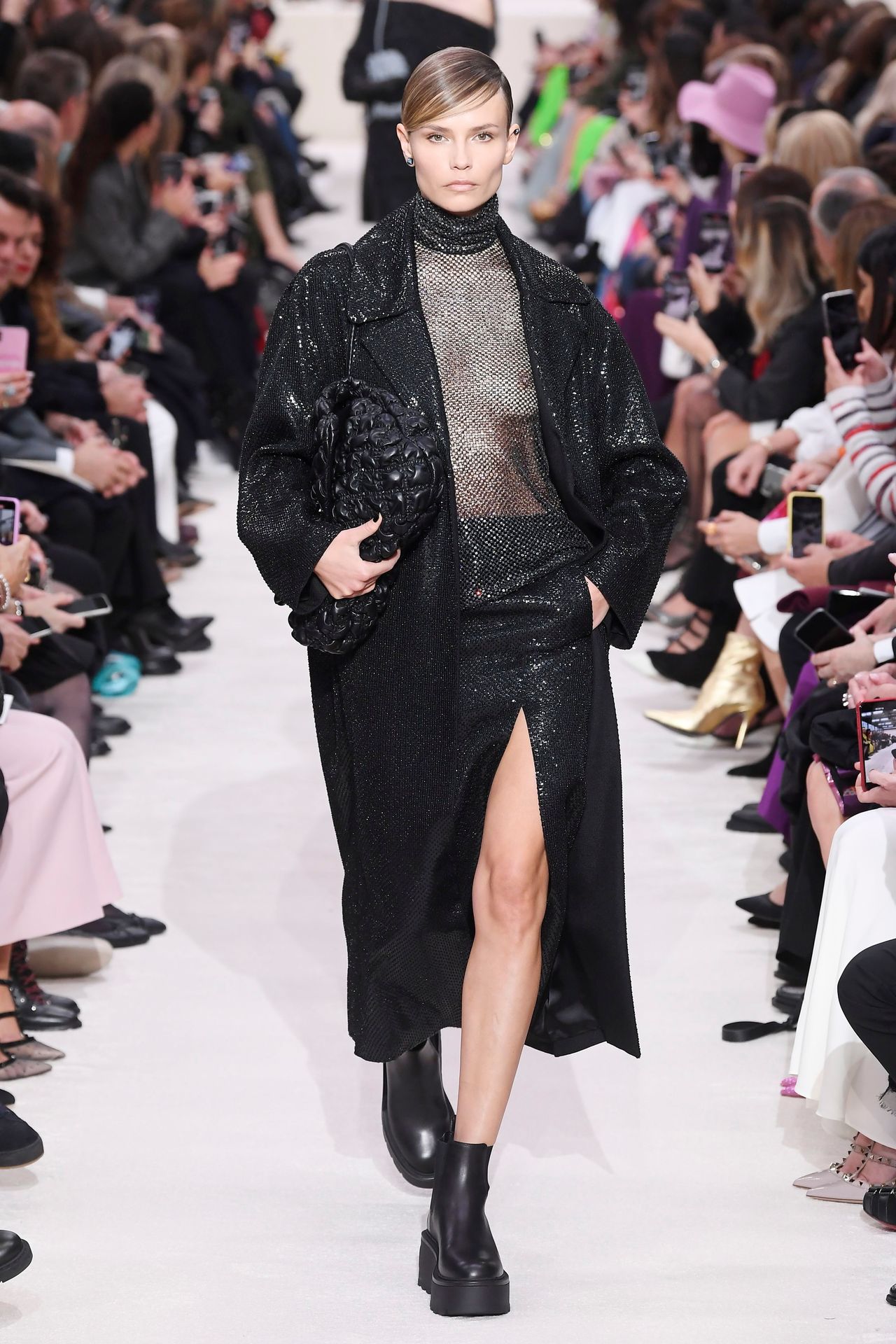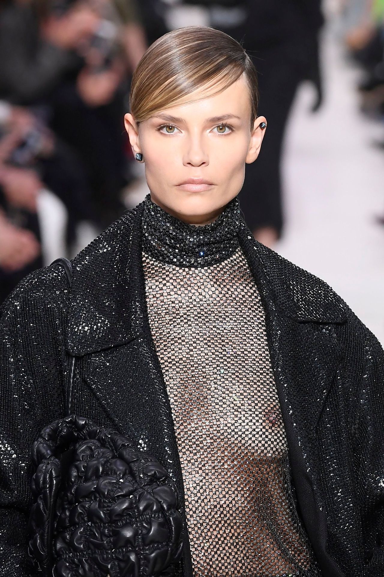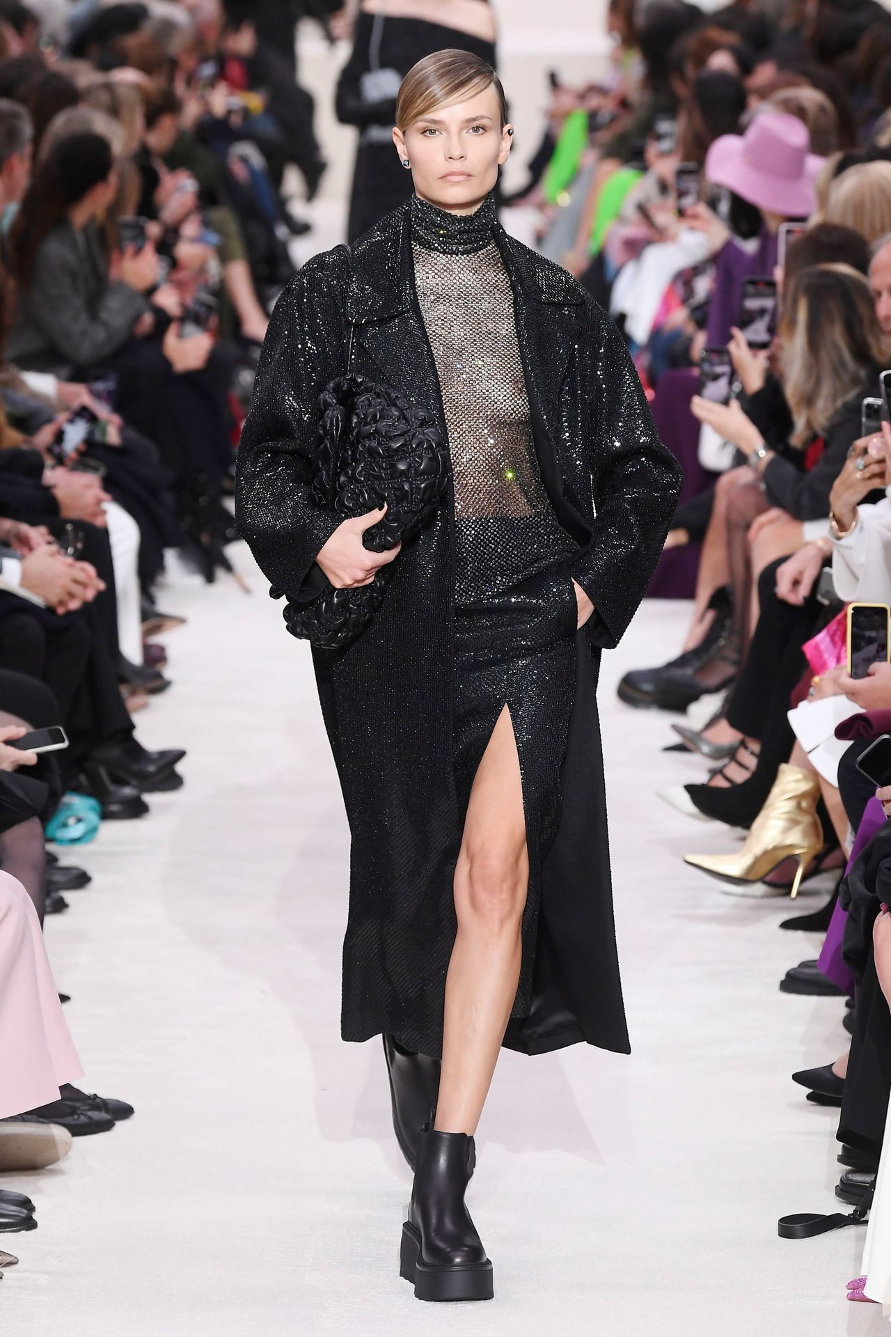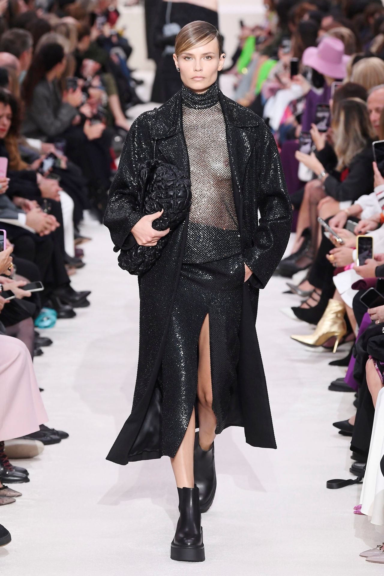 Model Natasha Poly wears a see-through top on the catwalk for Valentino Fall/Winter 2020 Fashion Show during Paris Fashion Week, 03/01/2020.