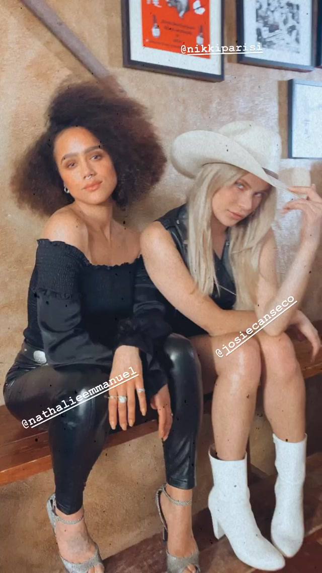 Actress Nathalie Emmanuel and model Josie Canseco look hot on a set of Cowboy themed photoshoot by David Yarrow (2020). Josie showed some skin, covering her tits.