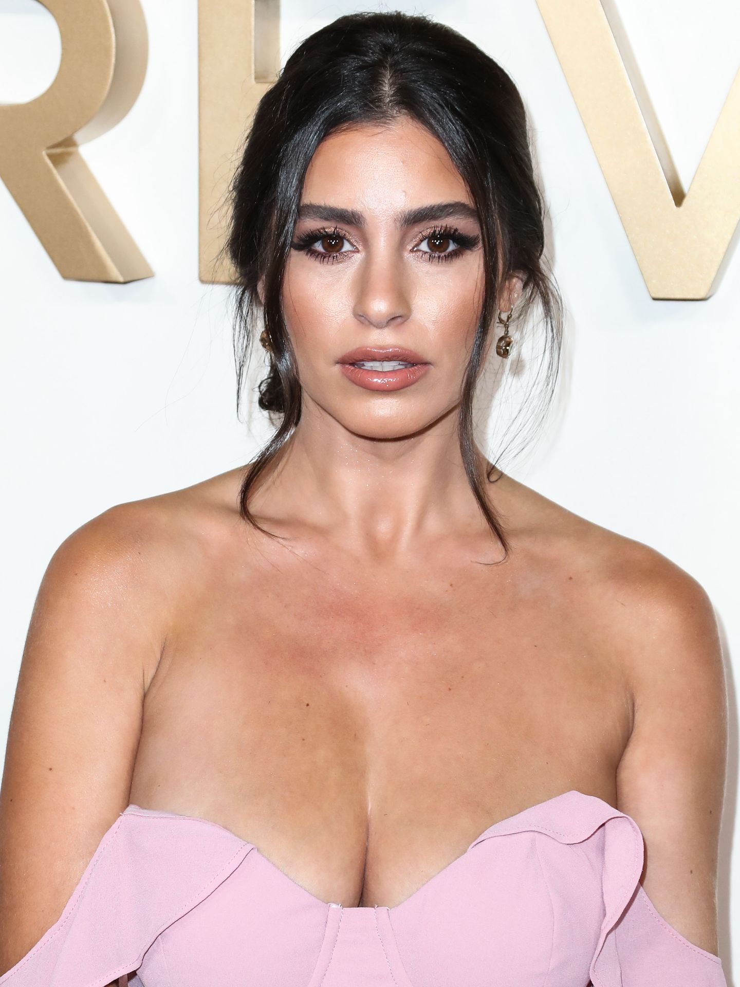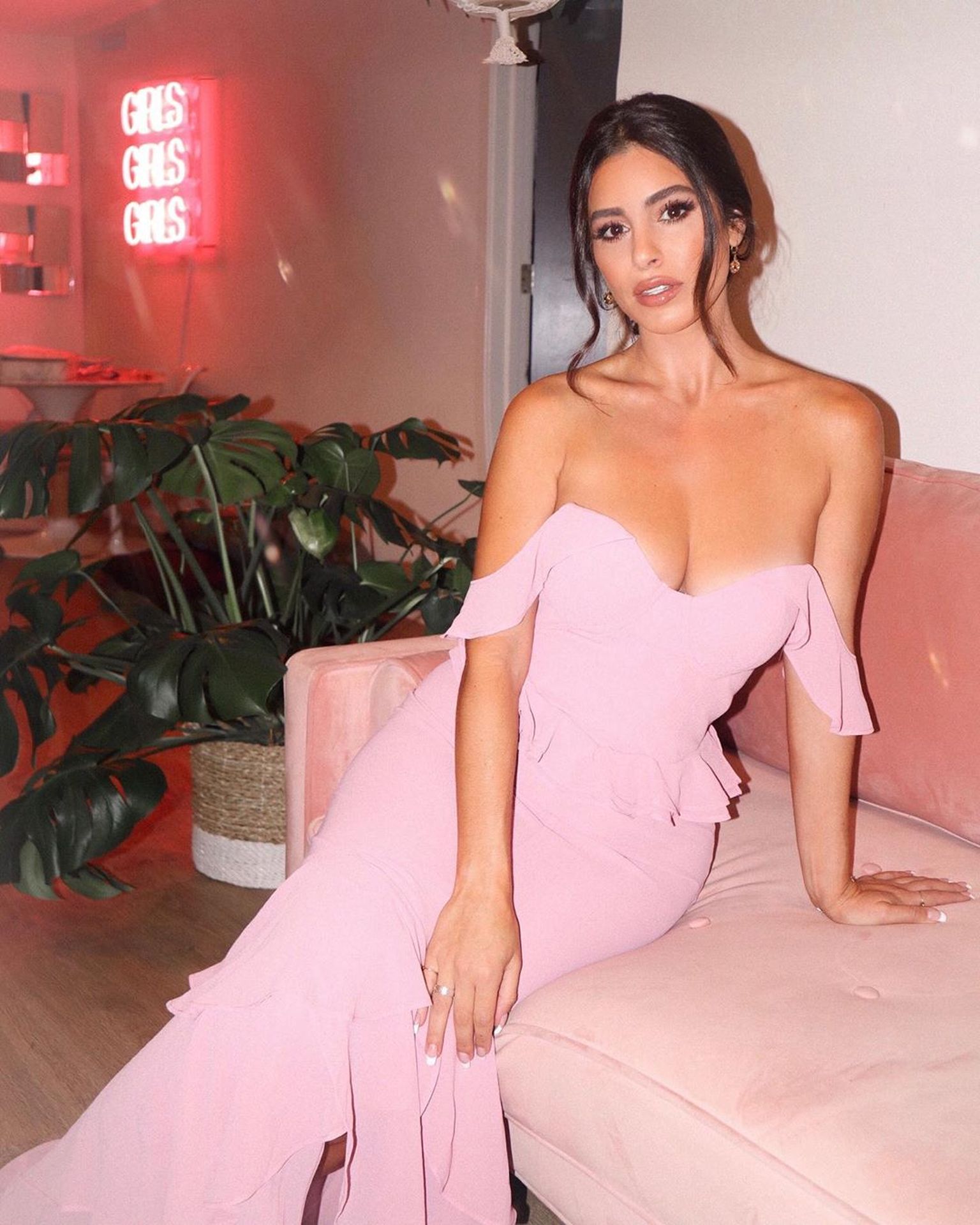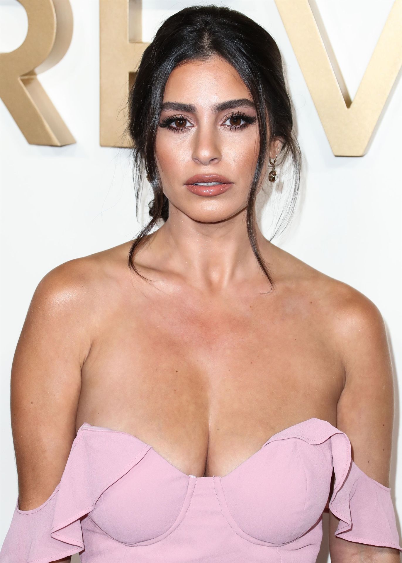 American model Nicole Isaacs showed off her big breasts while posing in a pink dress on the red carpet of the 3rd Annual #REVOLVEawards 2019 held at Goya Studios in Hollywood, 11/15/2019.