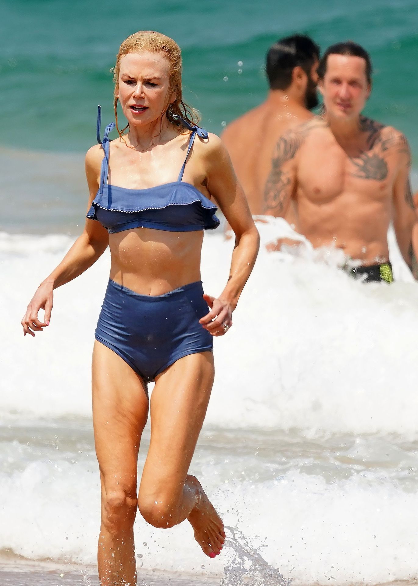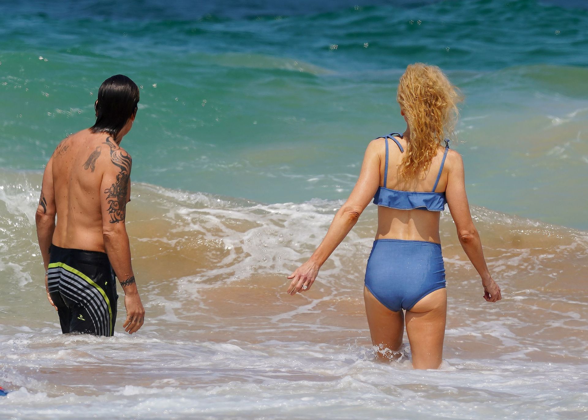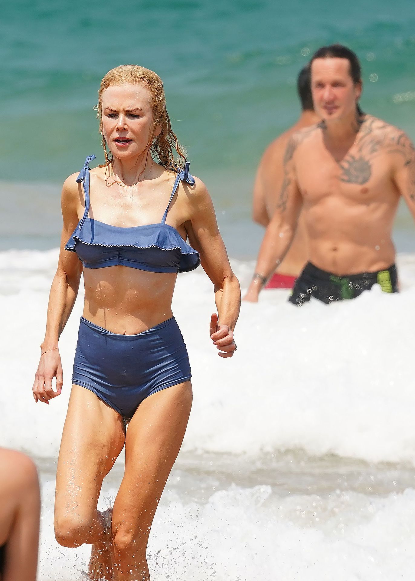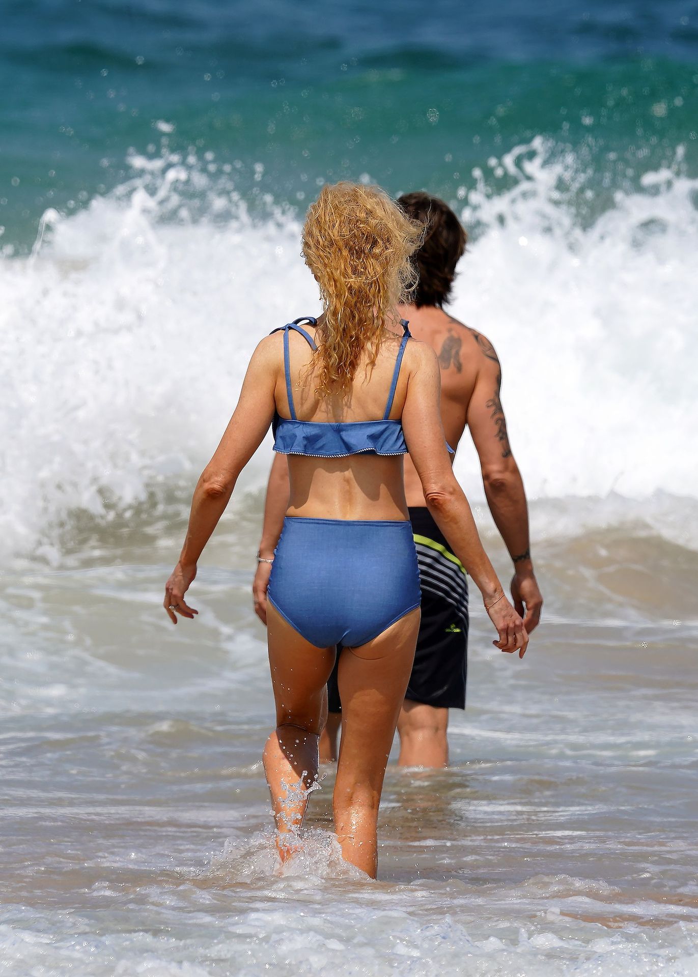 Actress Nicole Kidman was pictured in a blue bikini with her husband Keith Urban at the beach in Sydney, 12/26/2019.