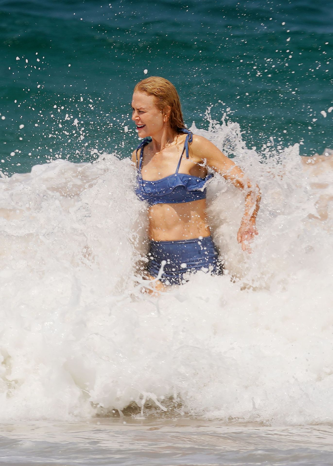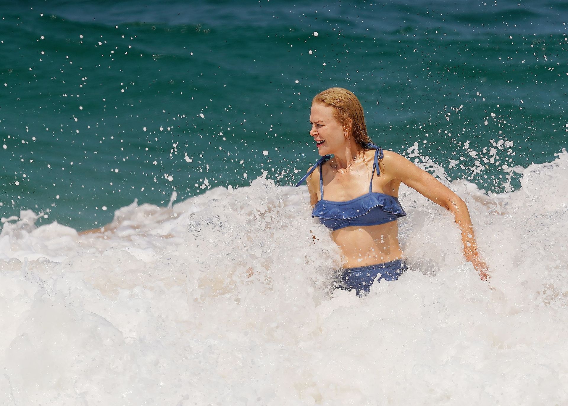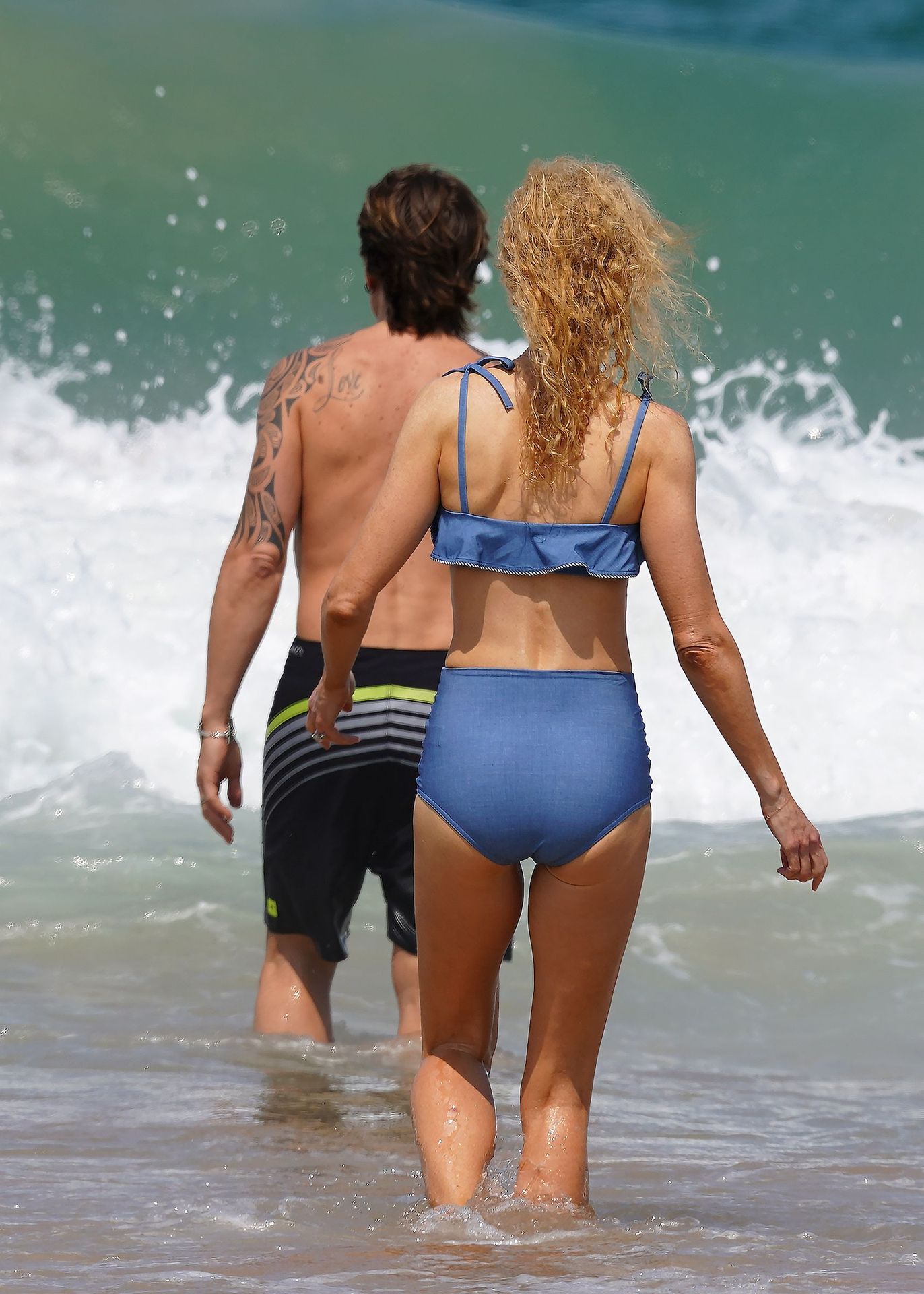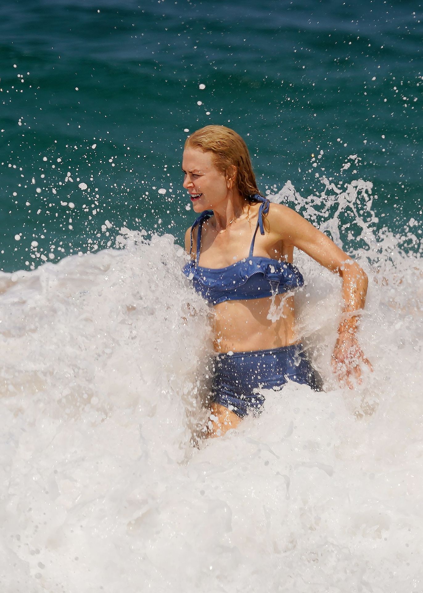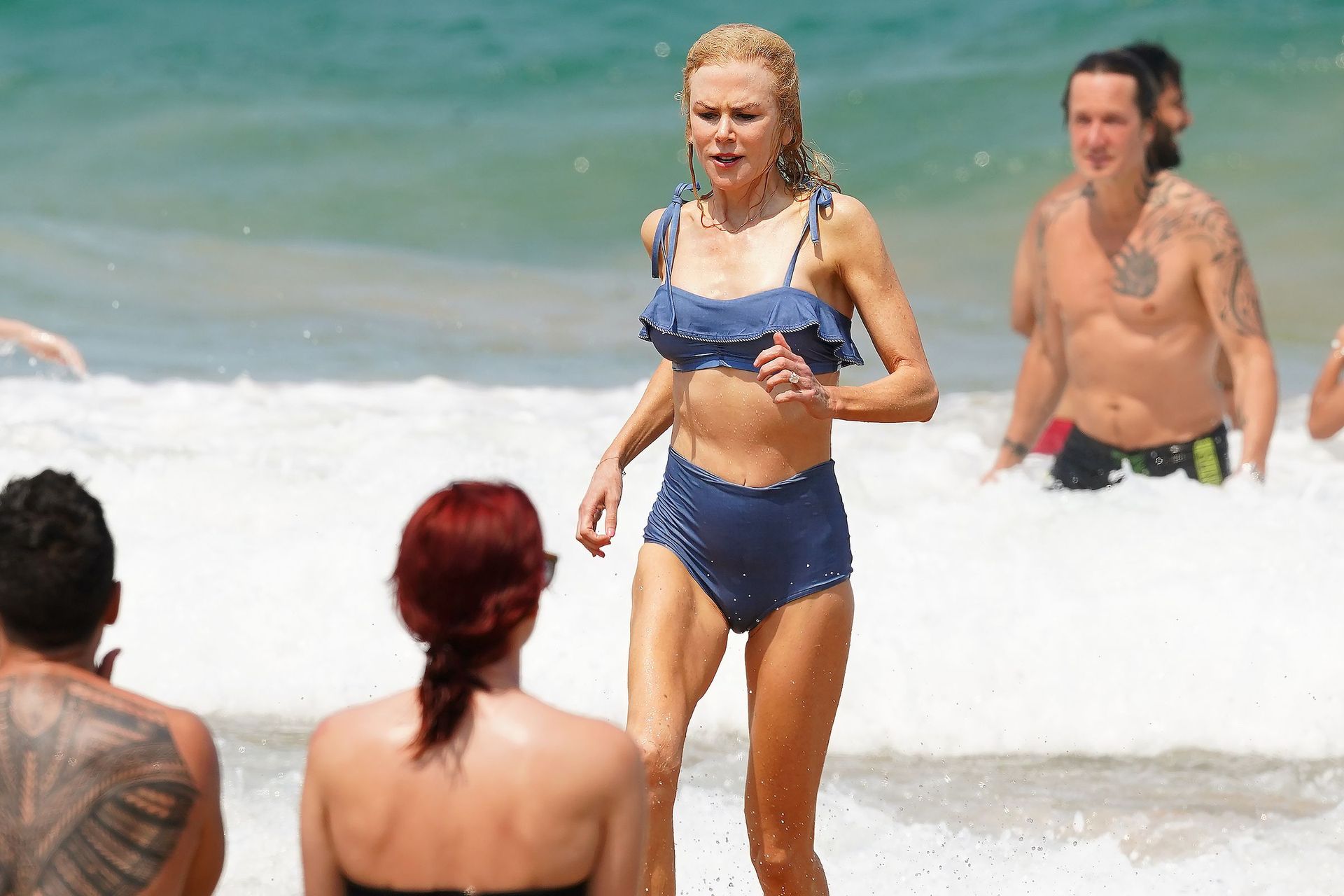 Actress Nicole Kidman was pictured in a blue bikini with her husband Keith Urban at the beach in Sydney, 12/26/2019.