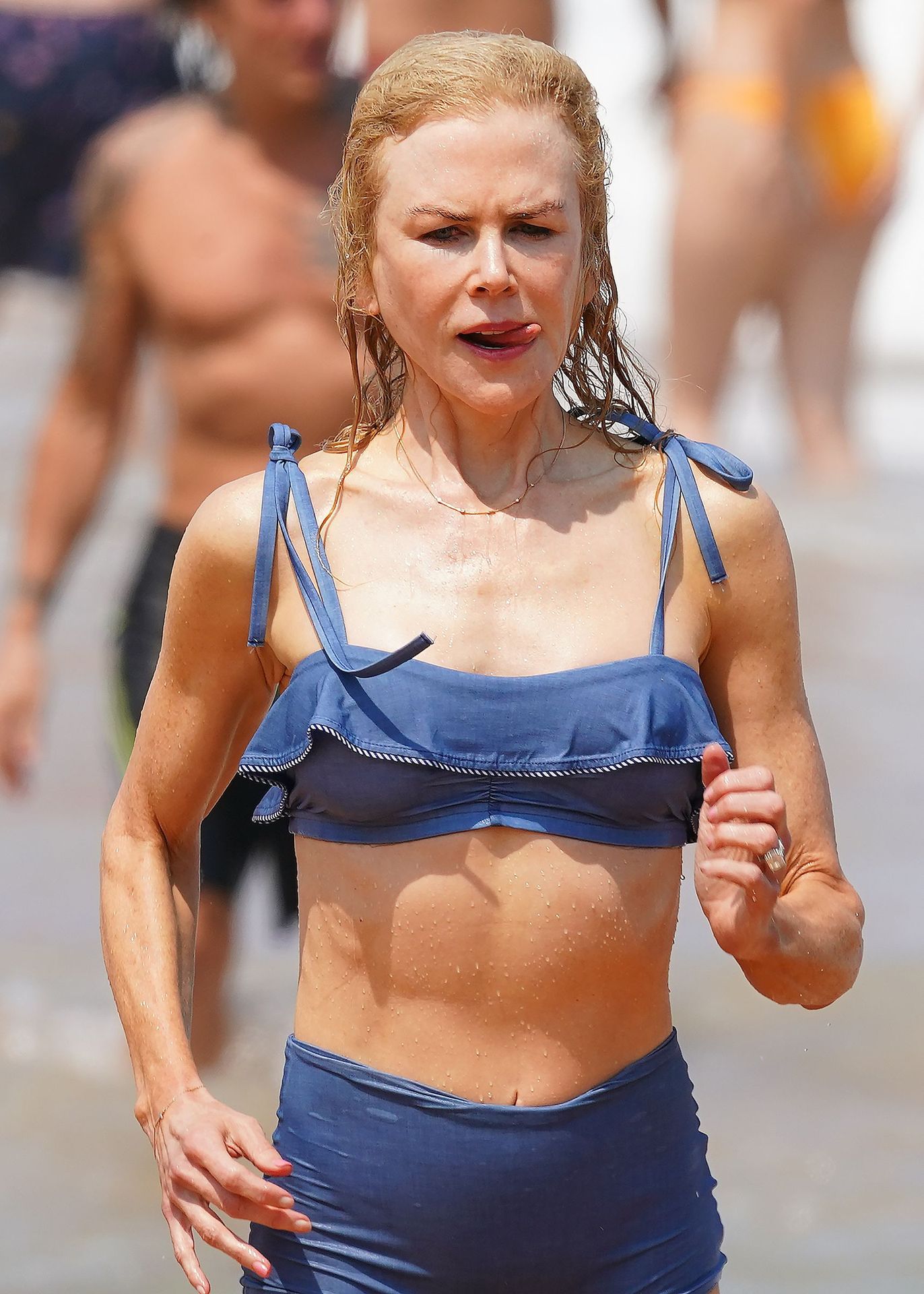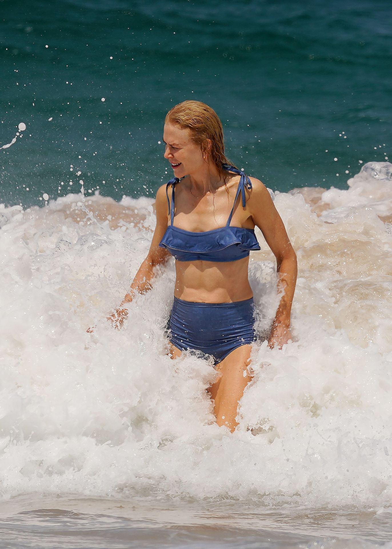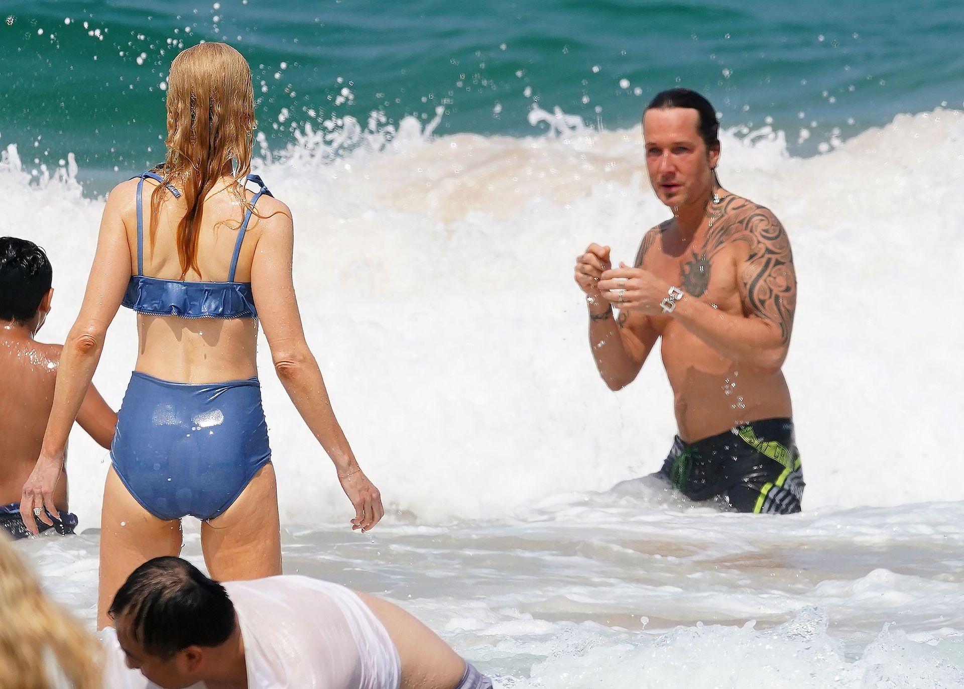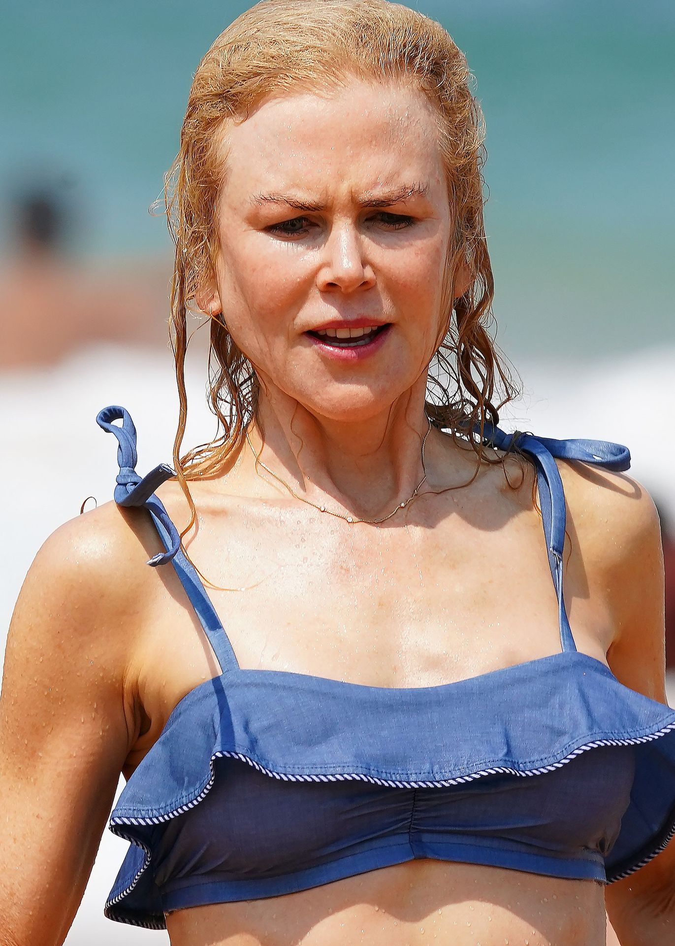 Actress Nicole Kidman was pictured in a blue bikini with her husband Keith Urban at the beach in Sydney, 12/26/2019.