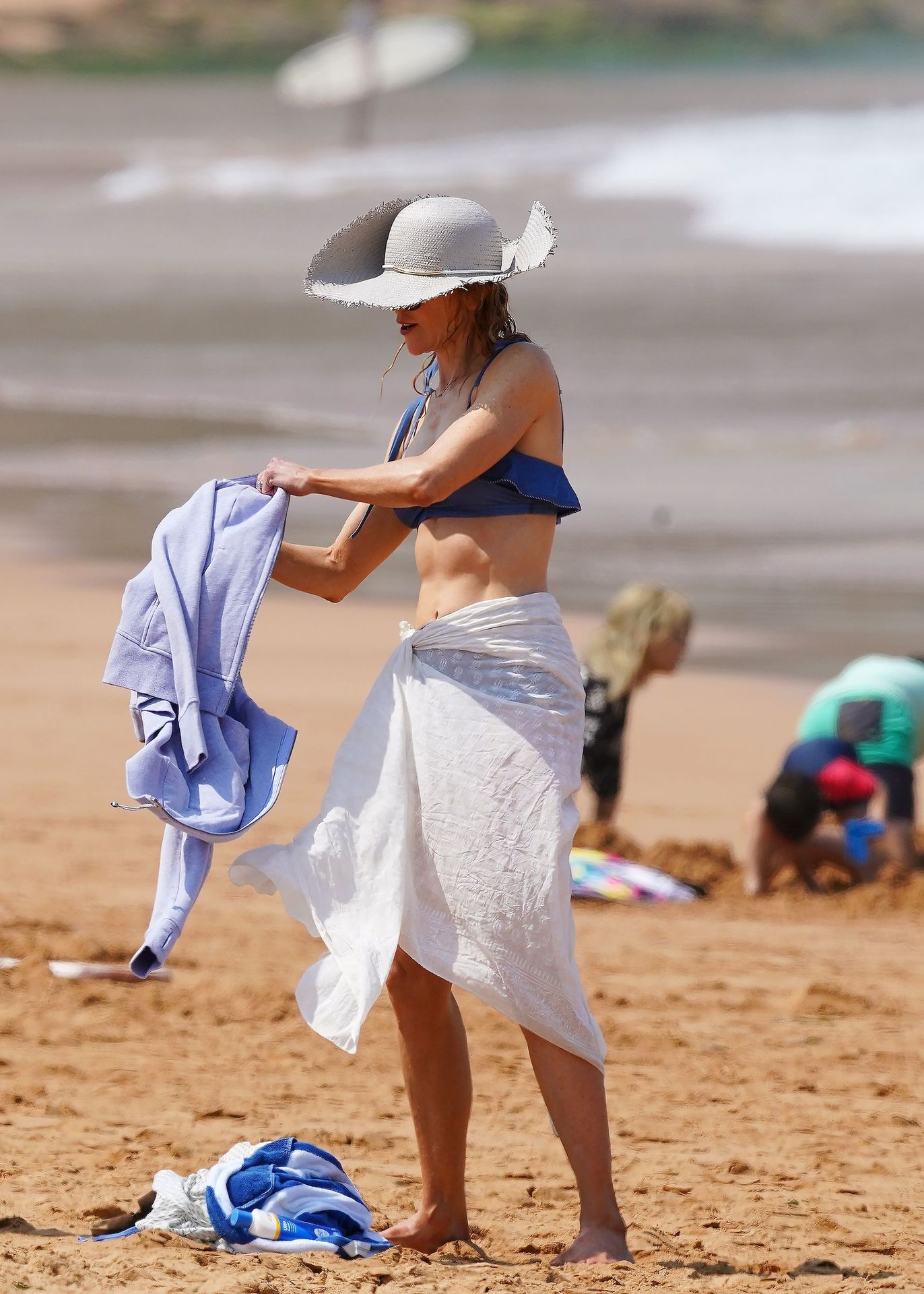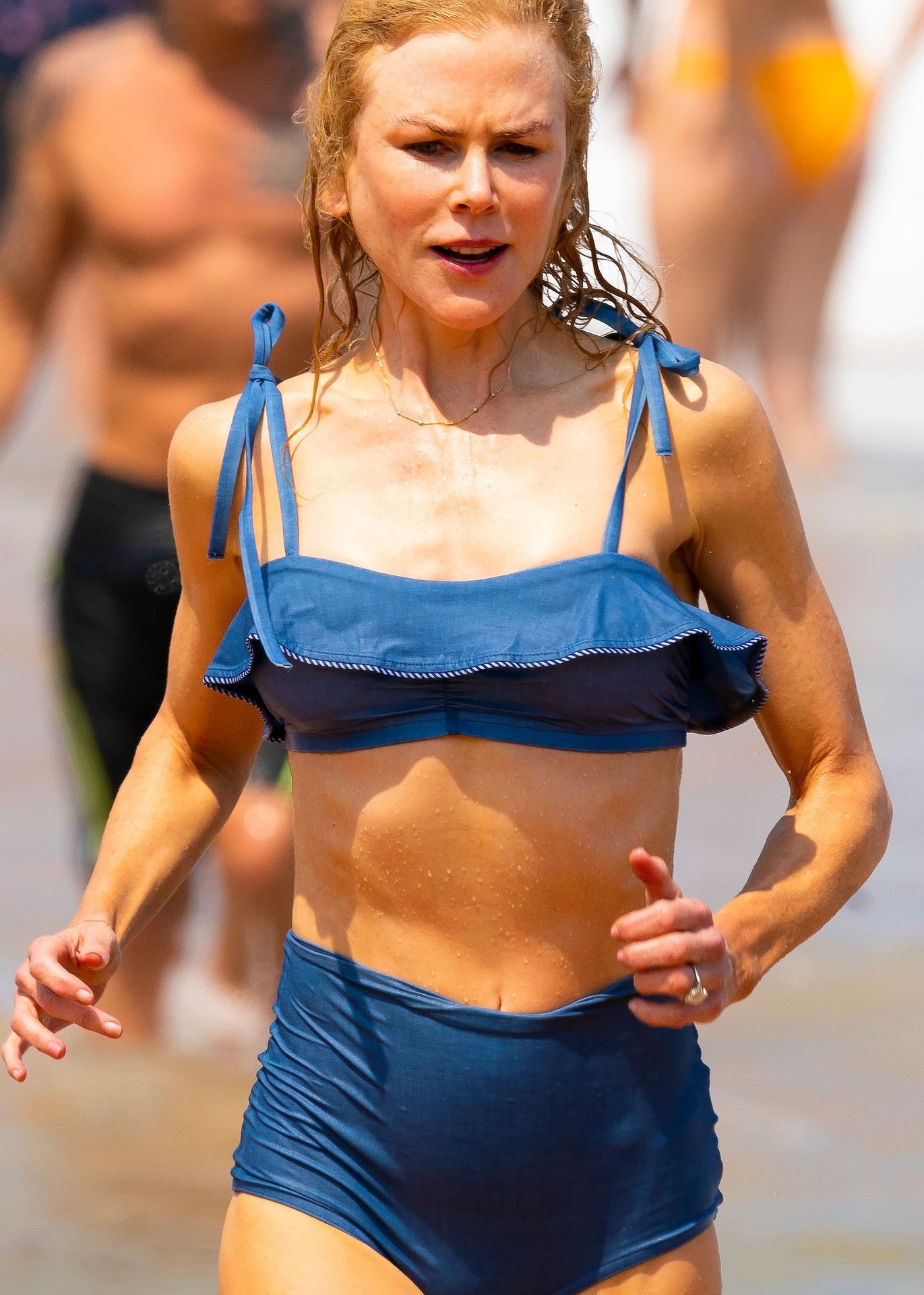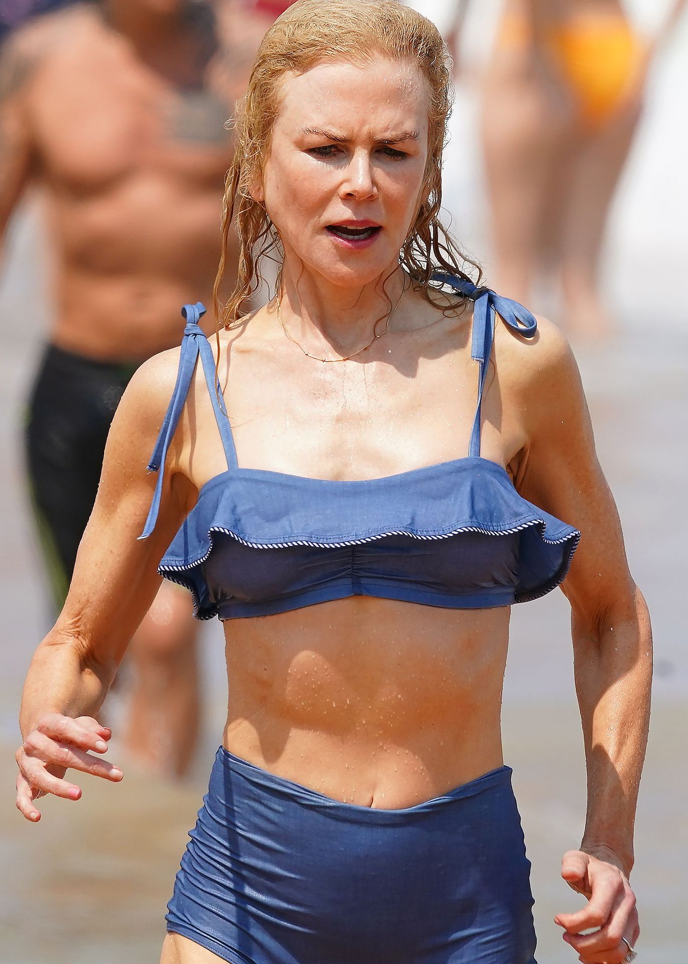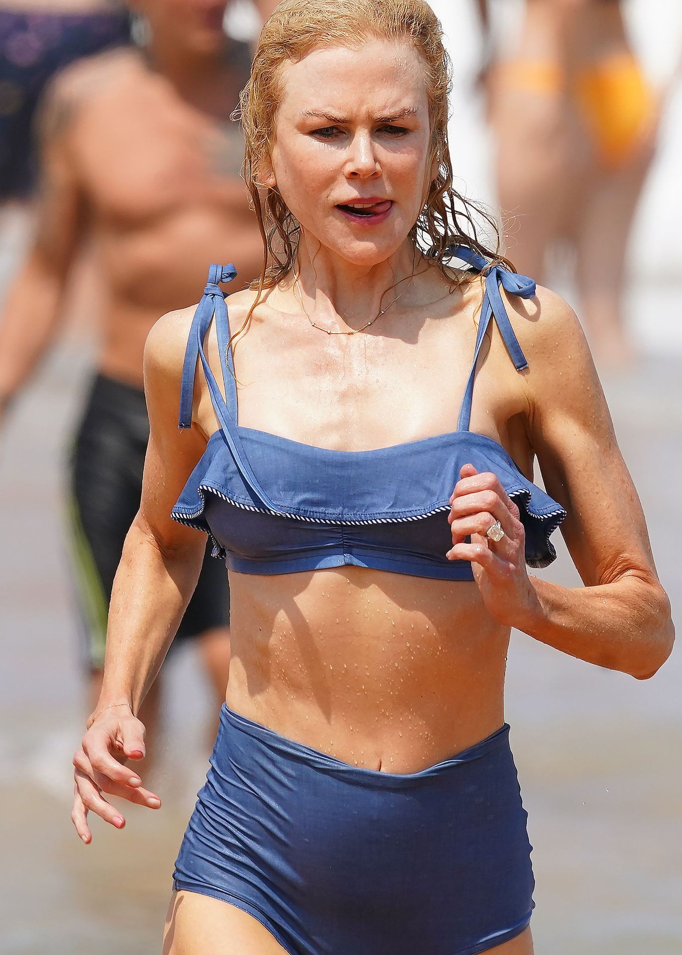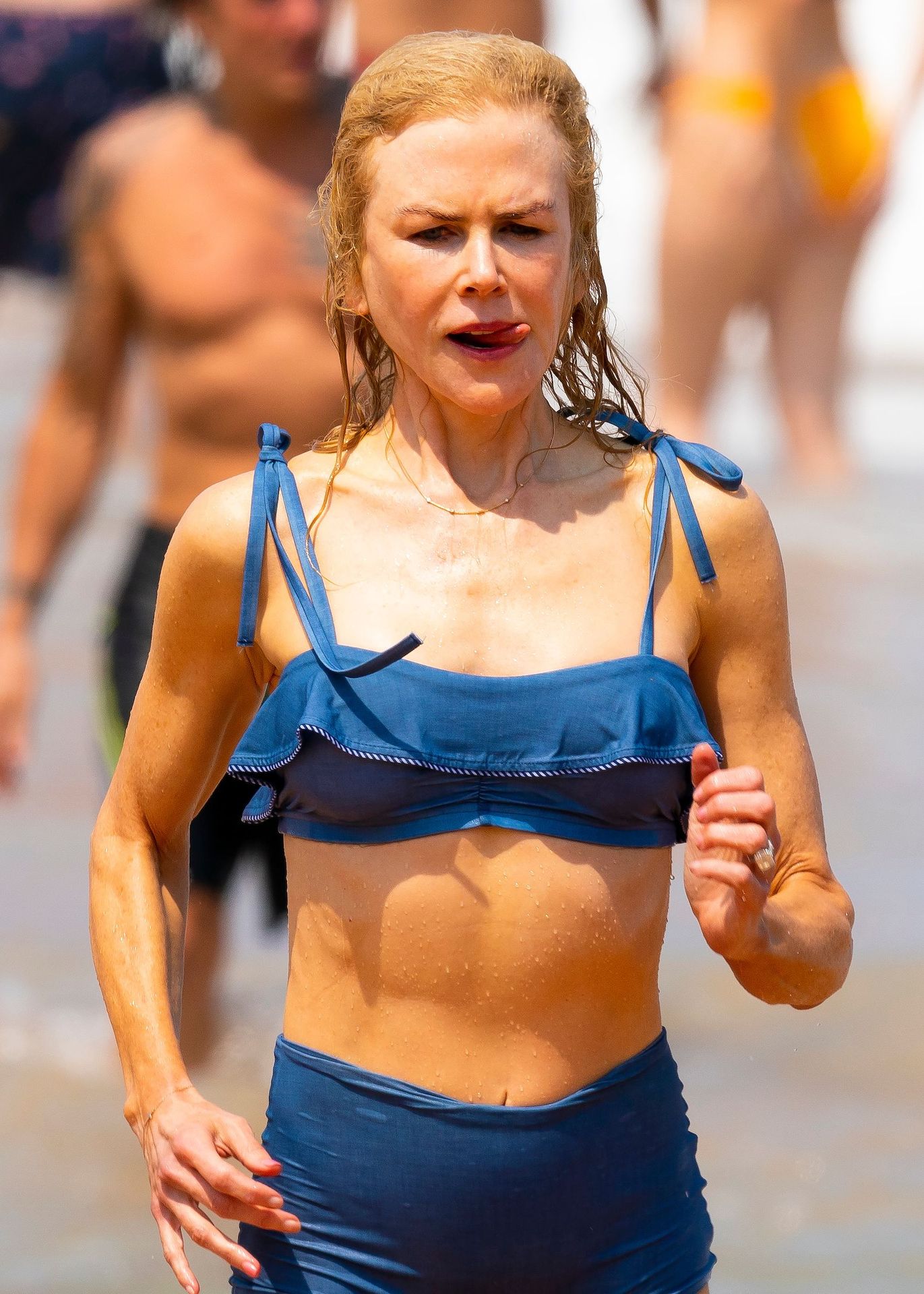 Actress Nicole Kidman was pictured in a blue bikini with her husband Keith Urban at the beach in Sydney, 12/26/2019.