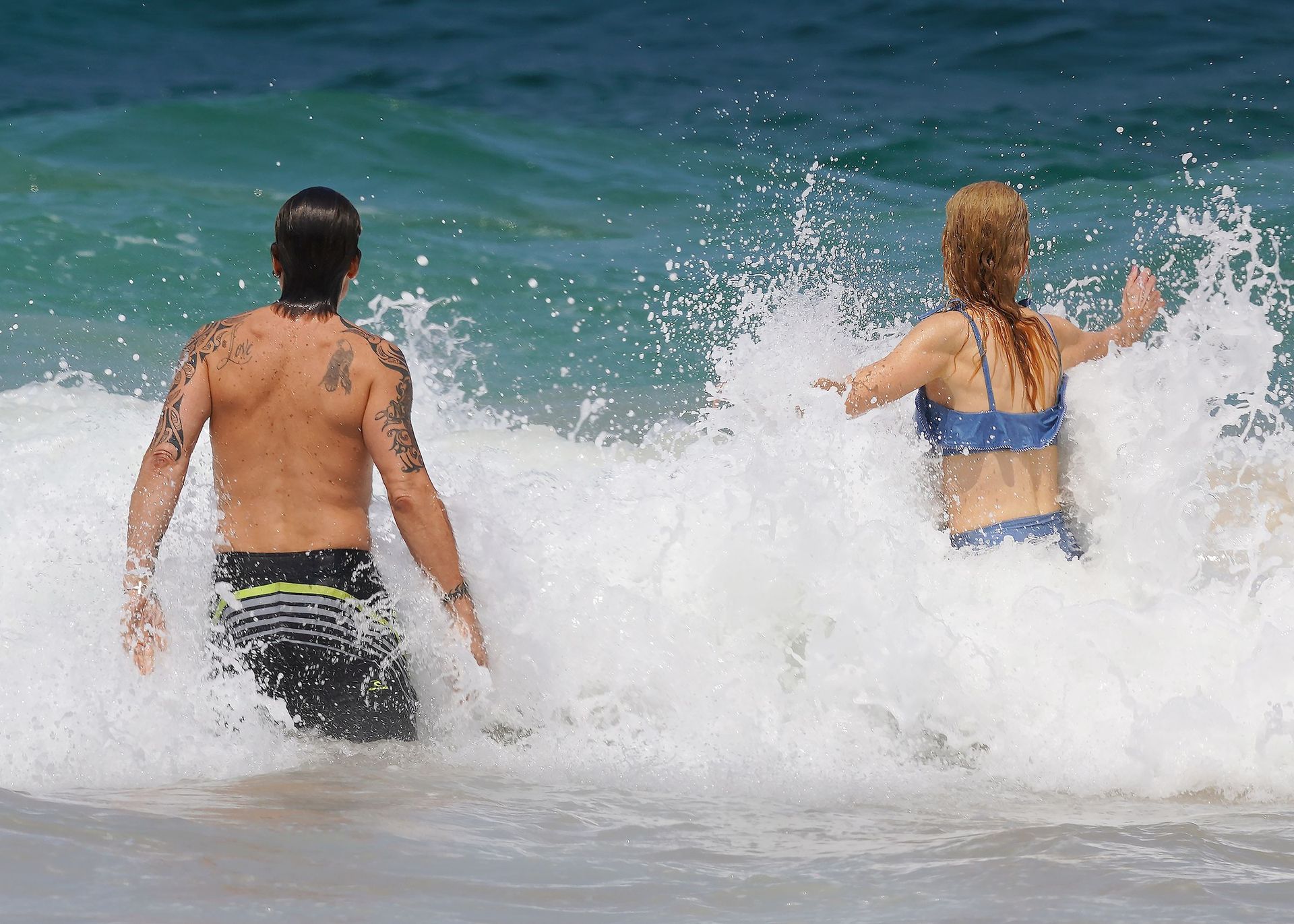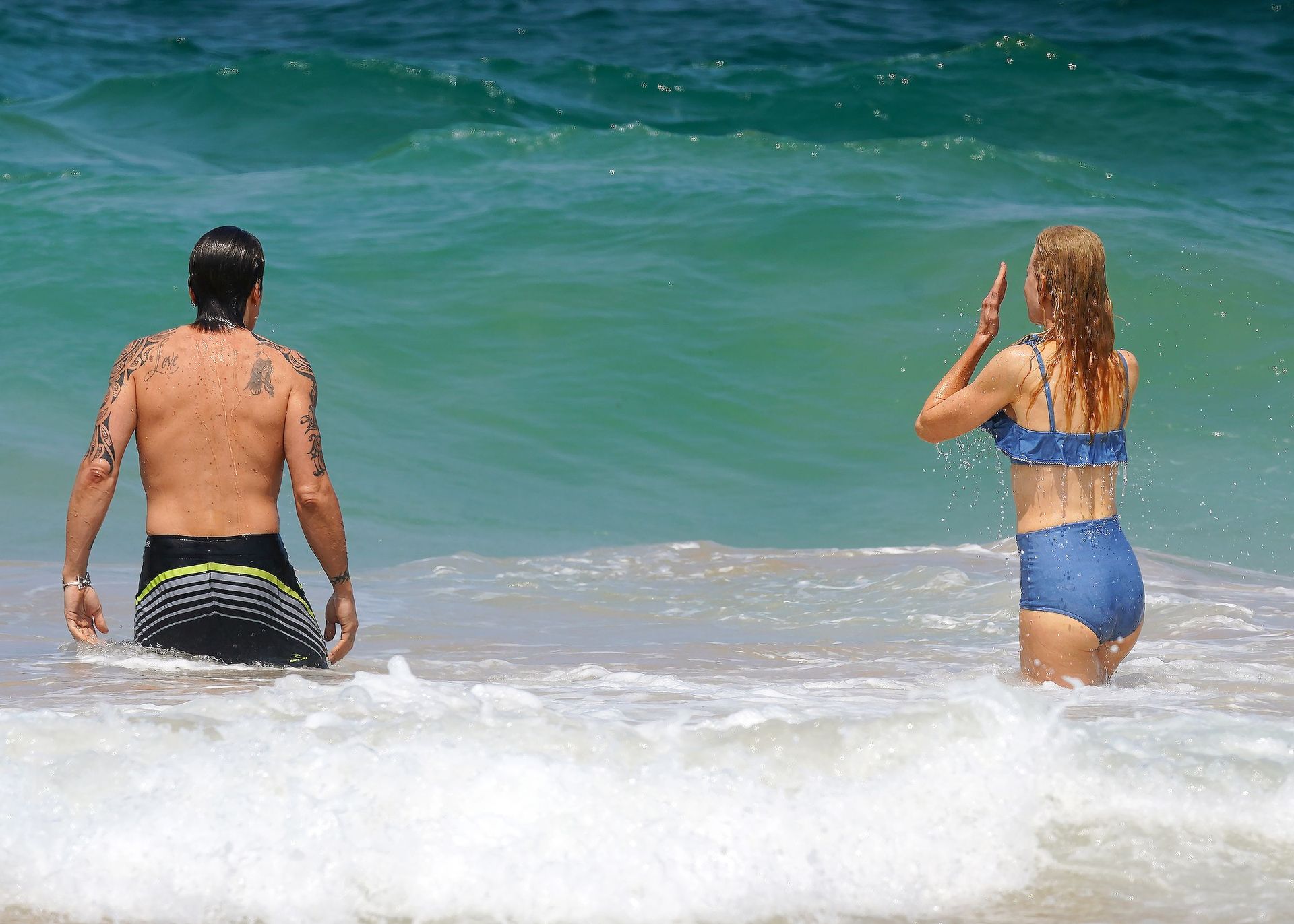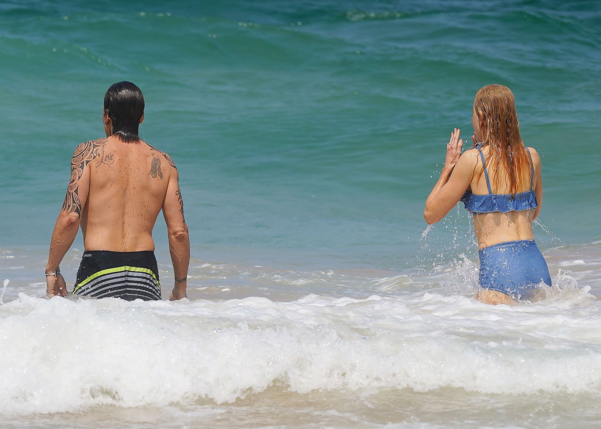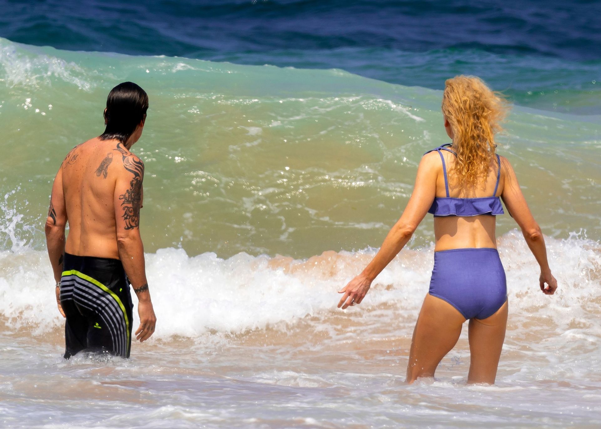 Actress Nicole Kidman was pictured in a blue bikini with her husband Keith Urban at the beach in Sydney, 12/26/2019.