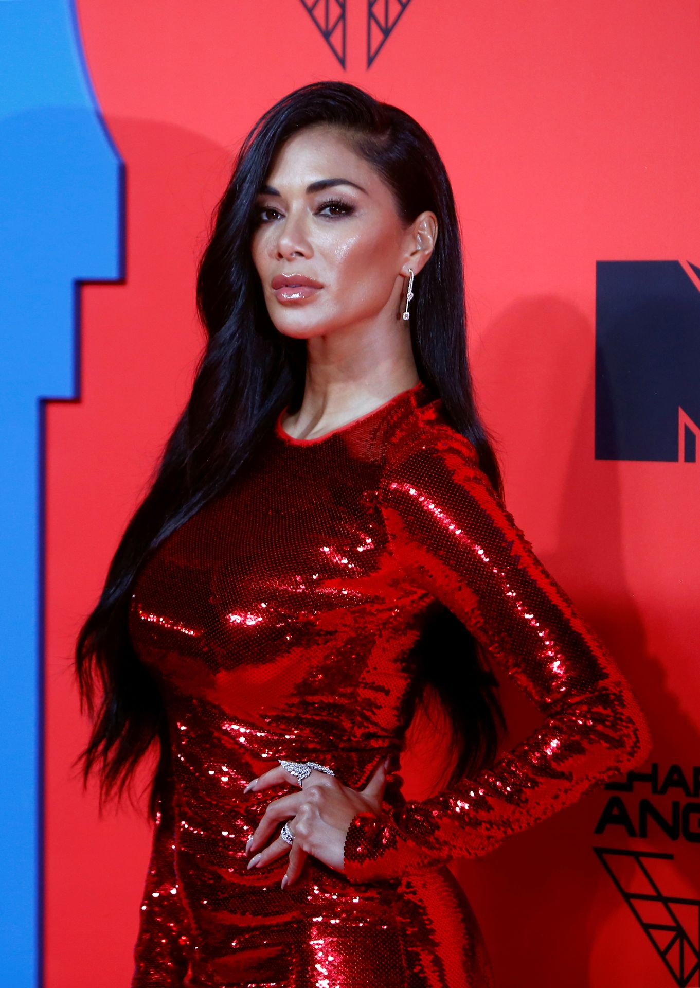 Singer Nicole Scherzinger poses on a red carpet as she arrives at the 2019 MTV Europe Music Awards at the FIBES Conference and Exhibition Centre in Seville, Spain, 11/03/2019.
