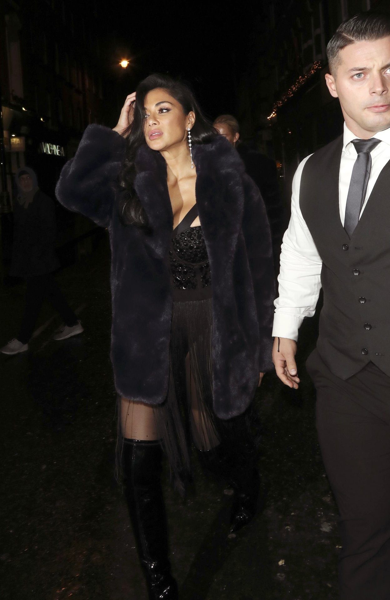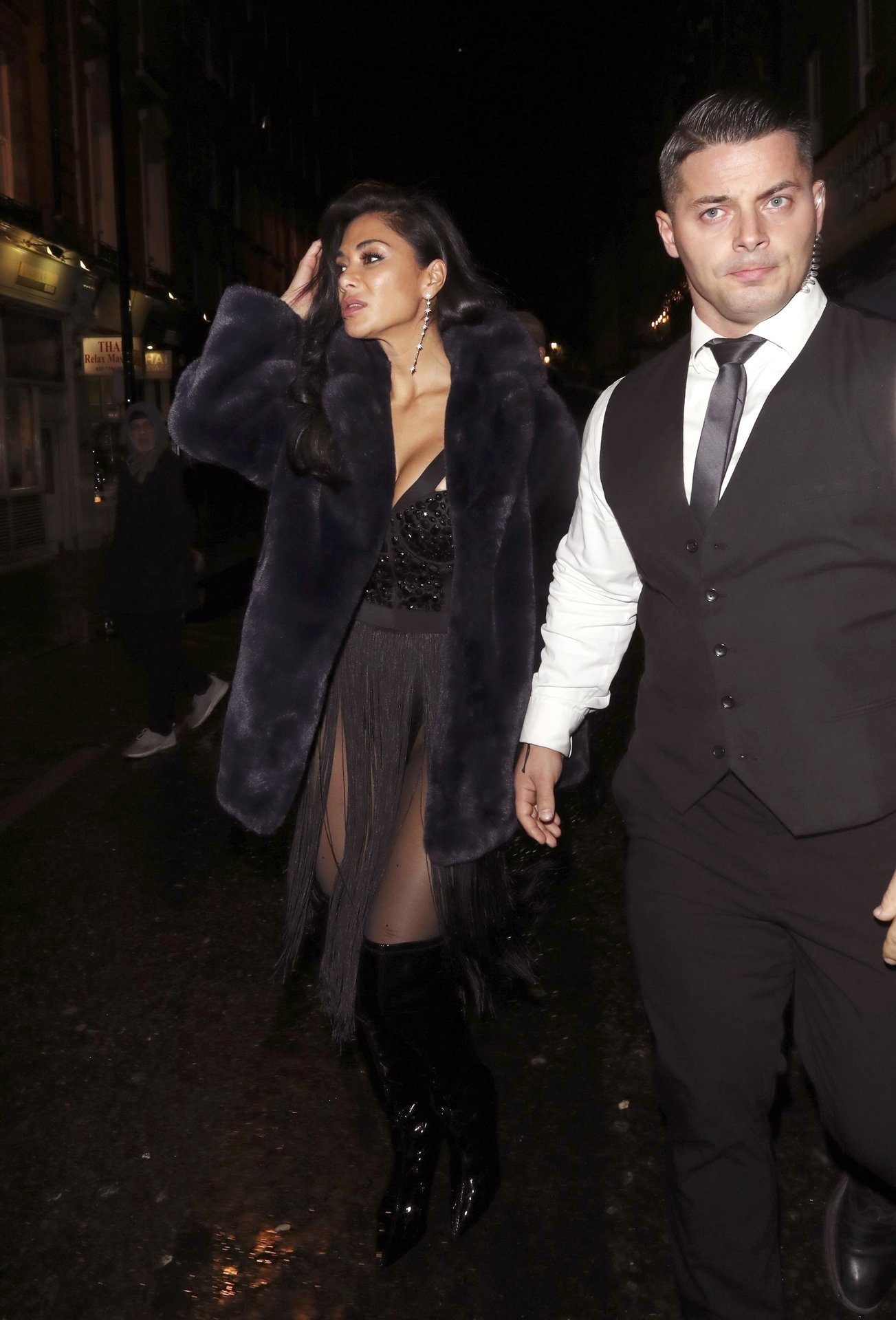 Thom Evans and Nicole Scherzinger were pictured leaving the Boulevard theatre in Soho, London after Nicole’s Musical Theatre inspired stage show, 12/08/2019.