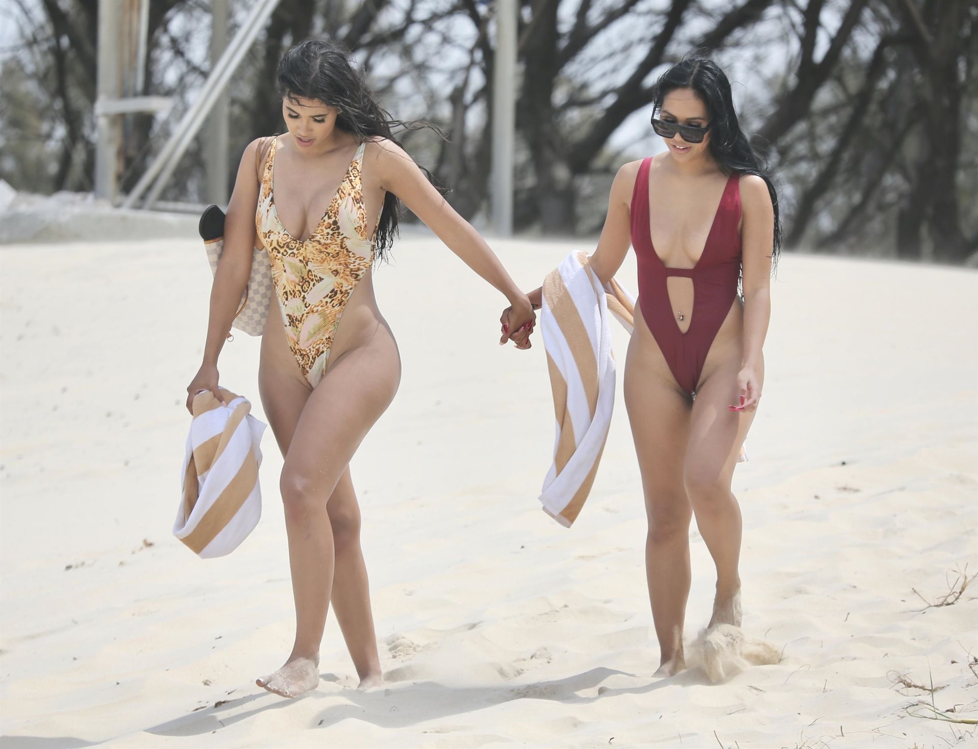 Curvy bisexual models Nicole Shiraz and Parnia Porsche get it on at the beach on the Gold Coast, Australia, 11/27/2019.