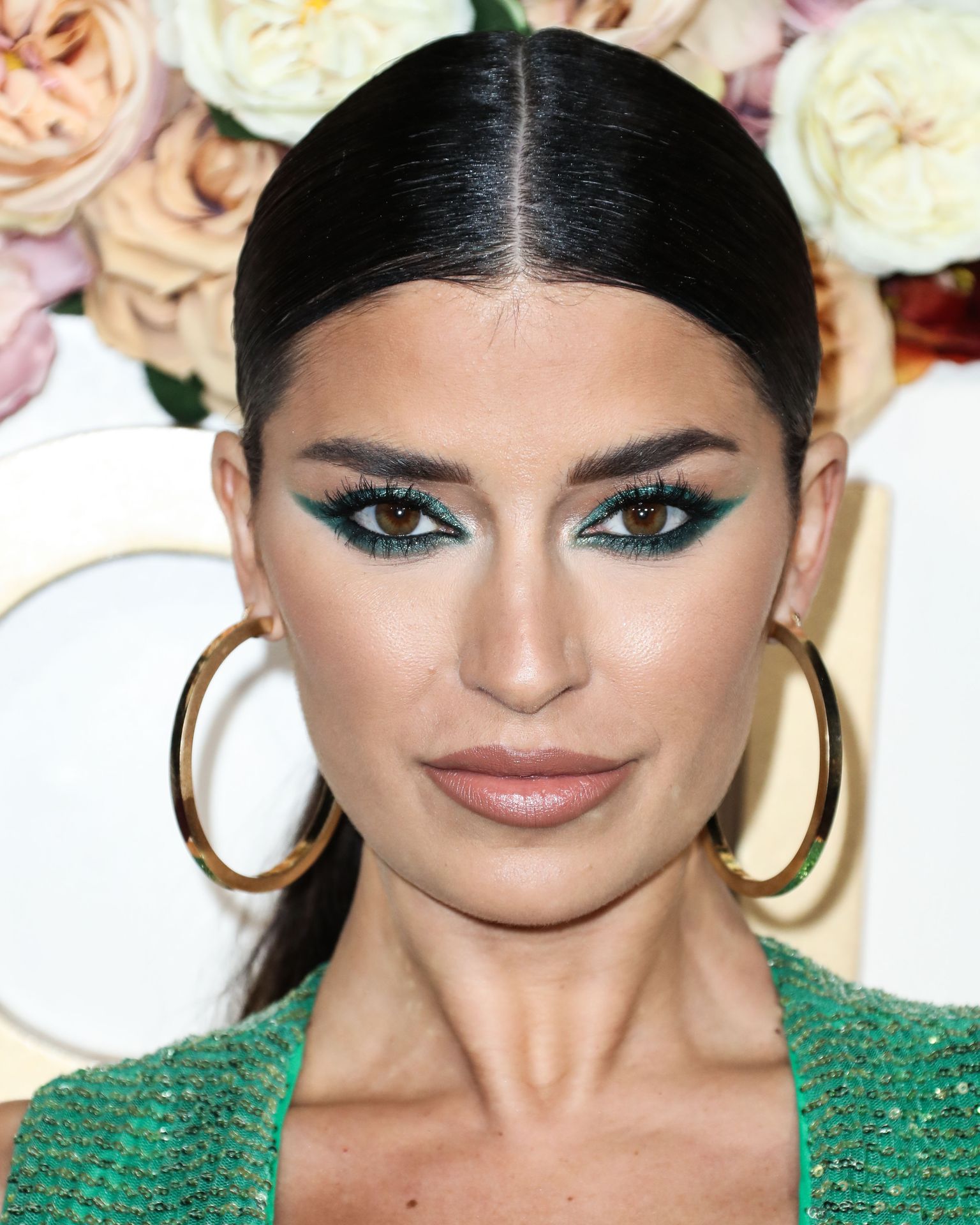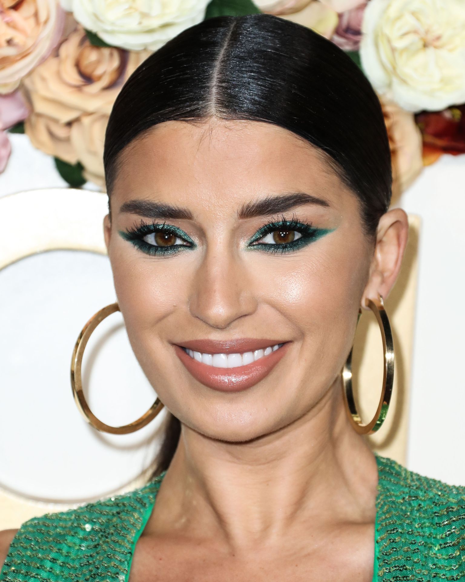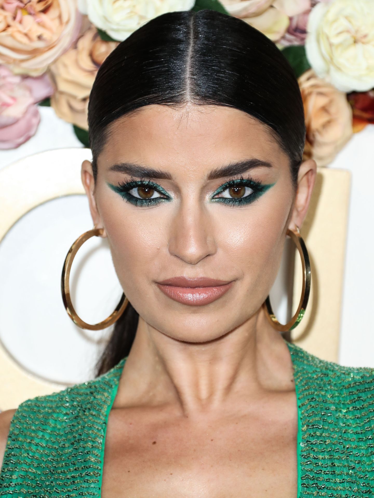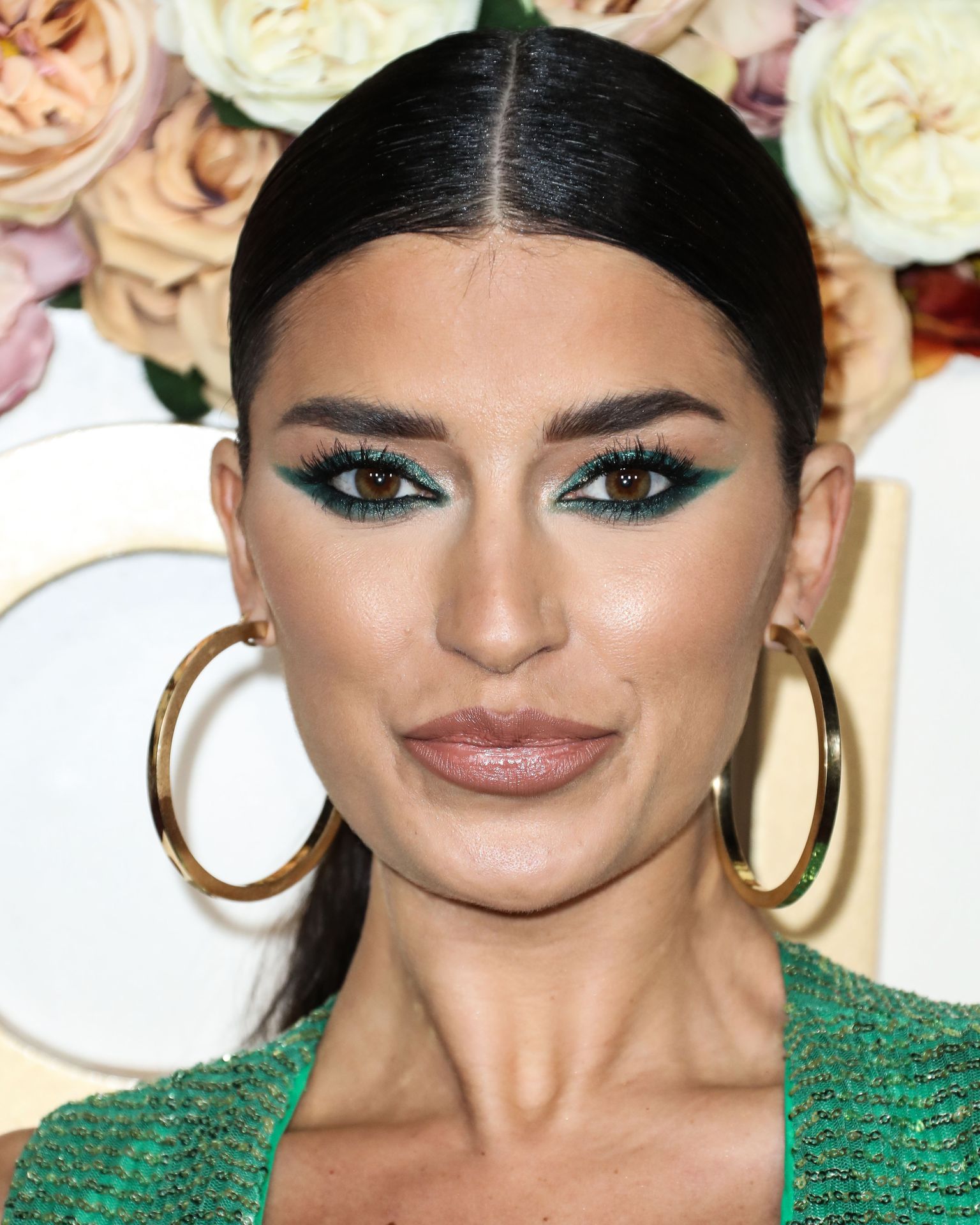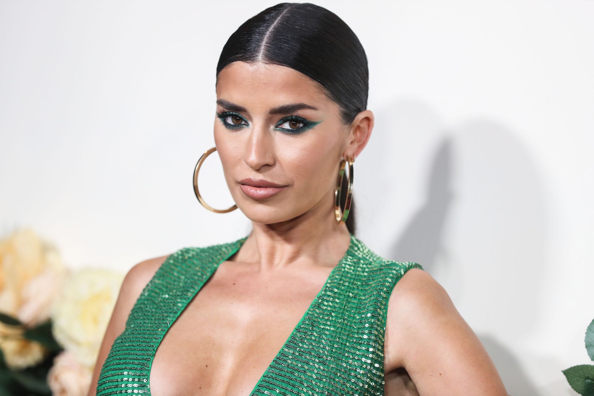 Television star Nicole Williams was photographed in a green dress with a deep cleavage at the 3rd Annual #REVOLVEawards held at Goya Studios in Hollywood, Los Angeles, California, 11/15/2019.