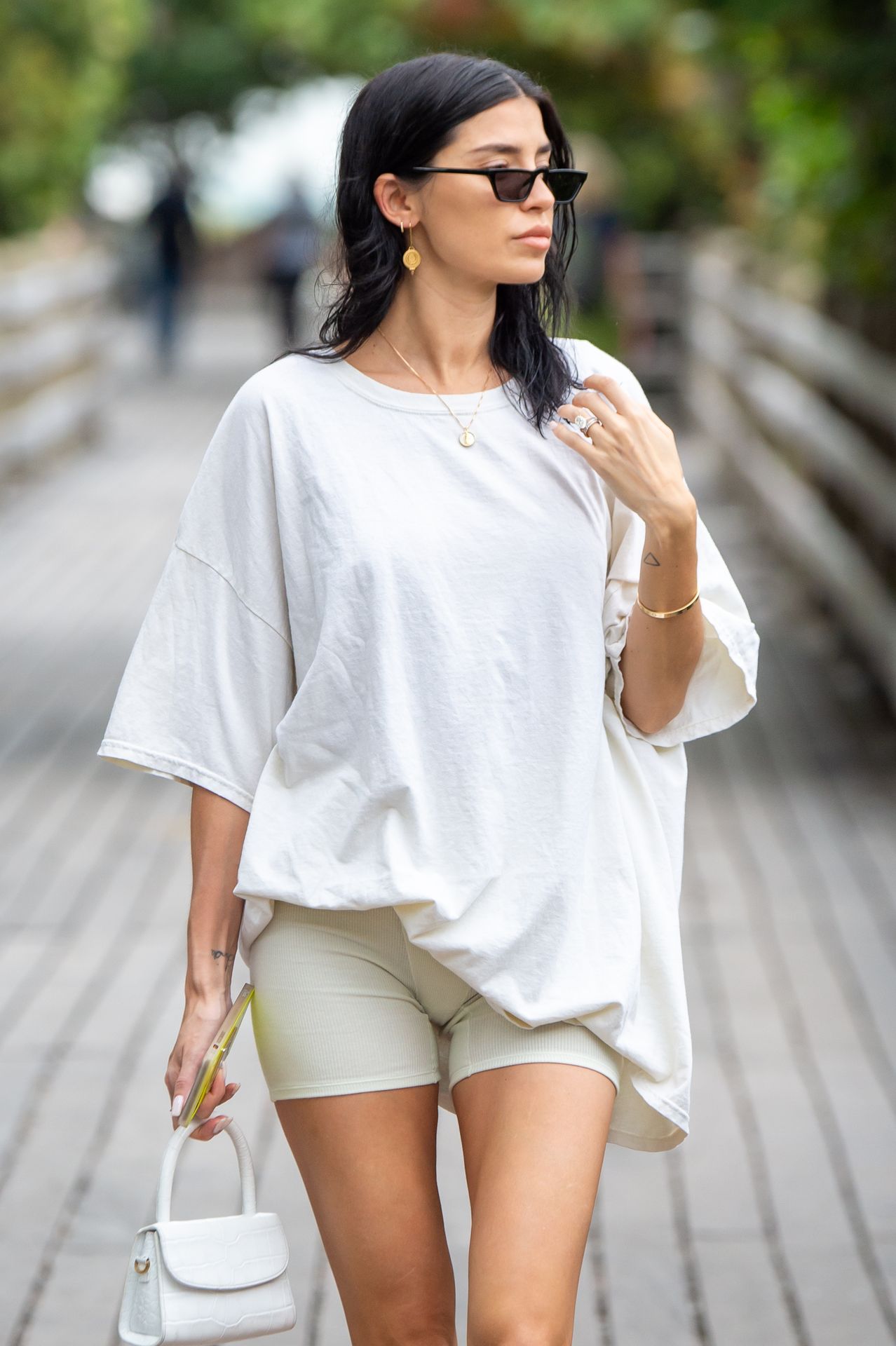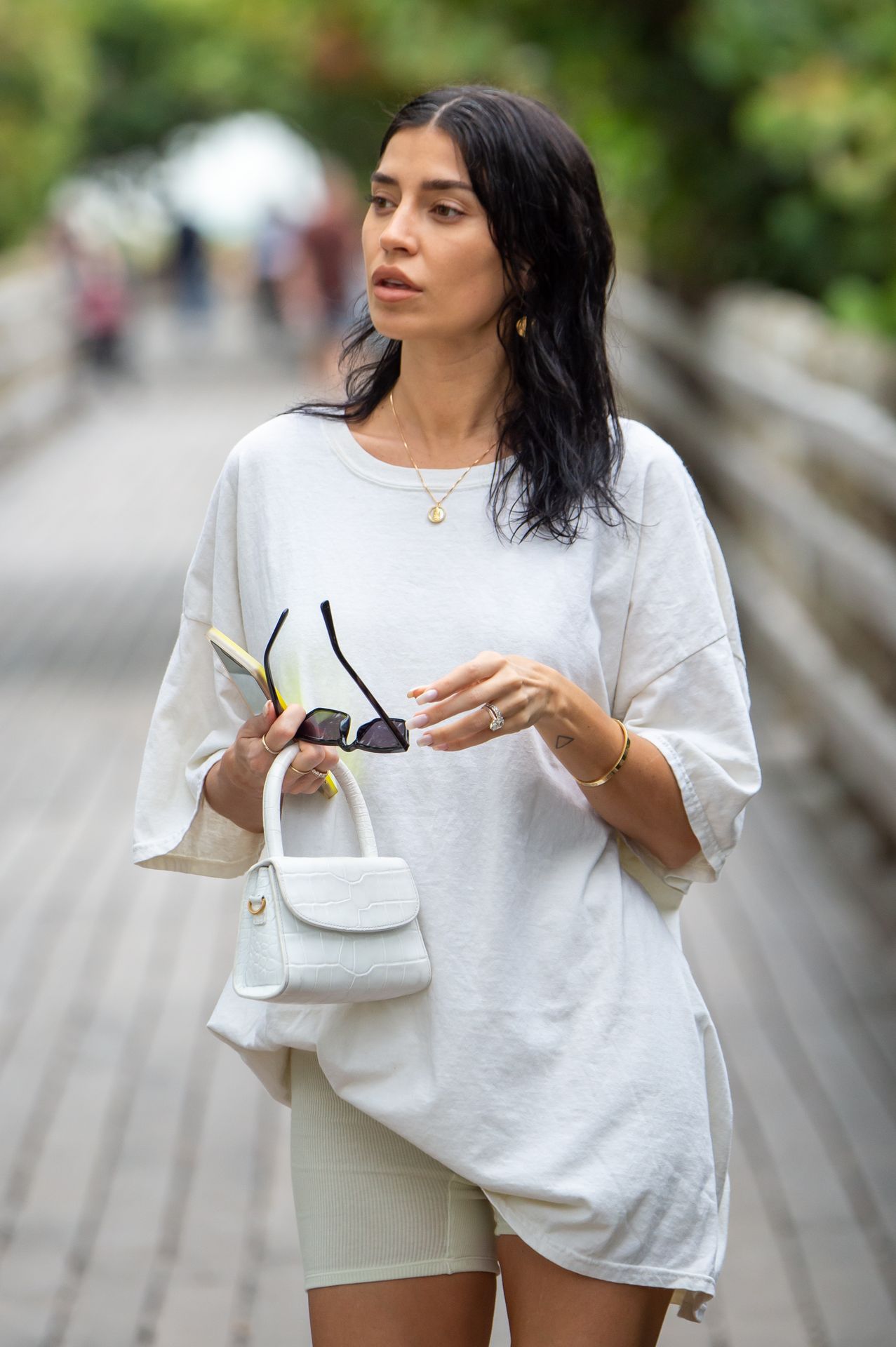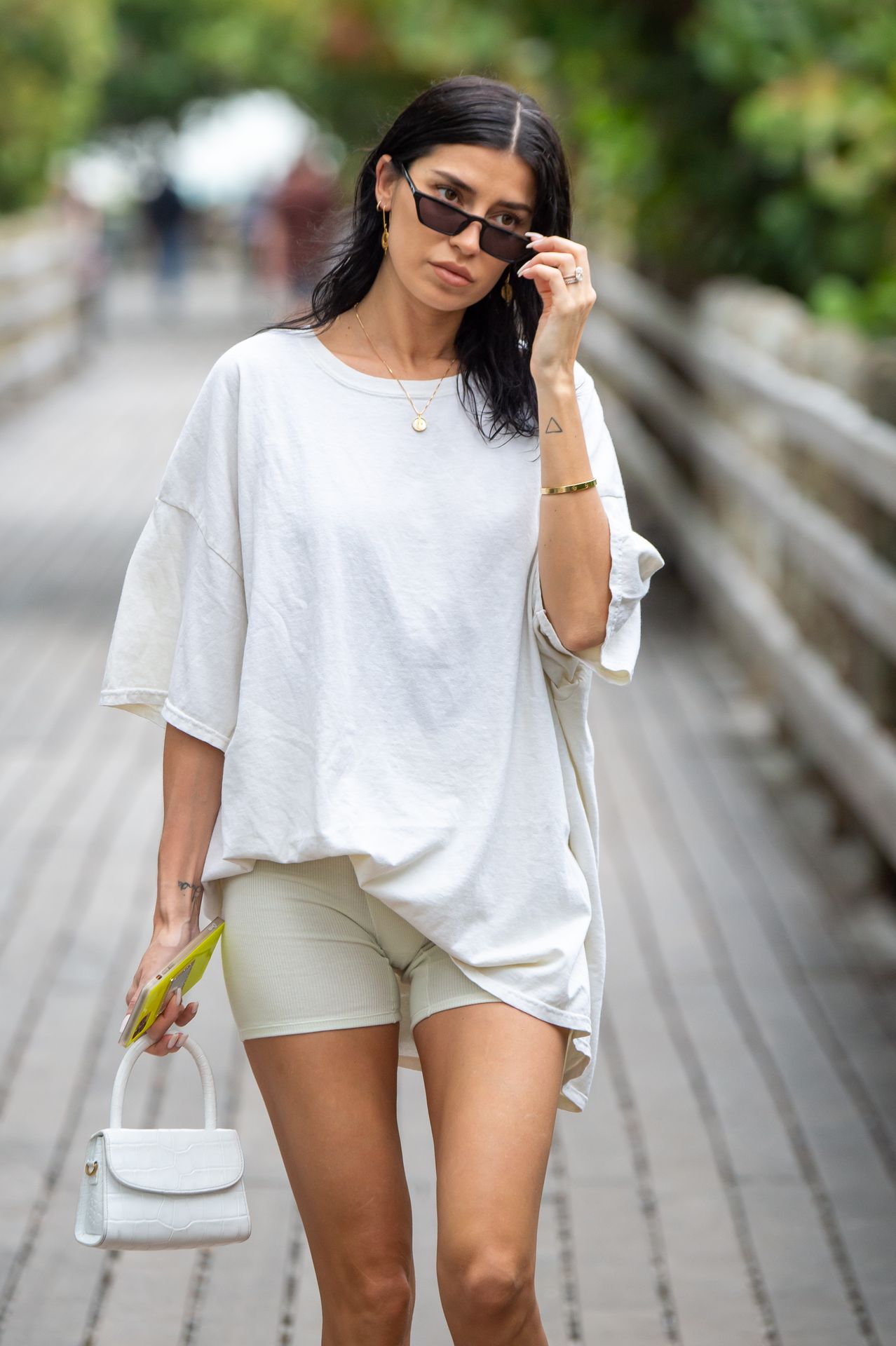The model who is on the cover of the newest Ocean Drive magazine was seen wearing a Myra one-piece bating suit paired with black Pretty Little Thing sunglasses as she enjoyed some down time ahead of a busy evening.