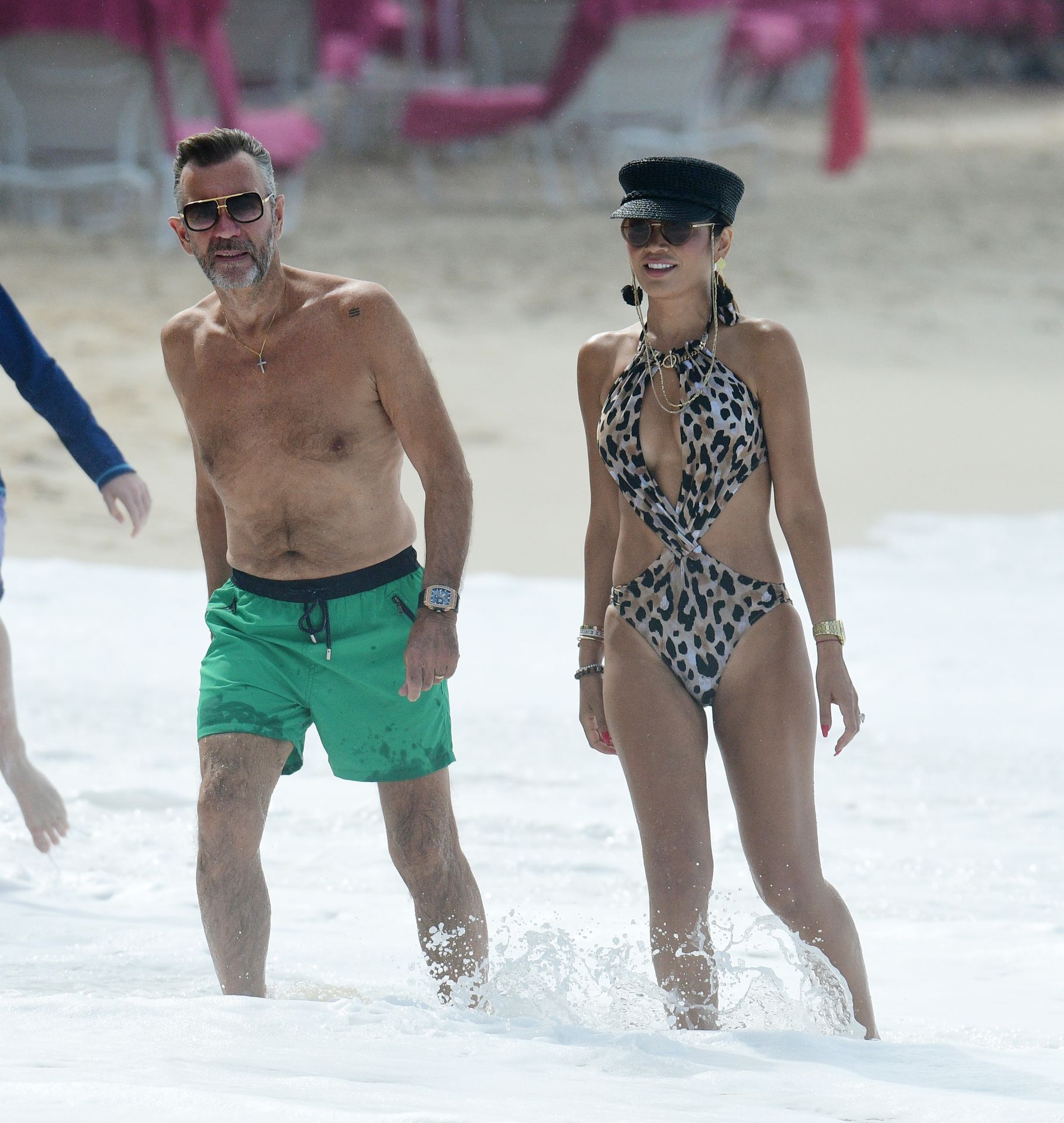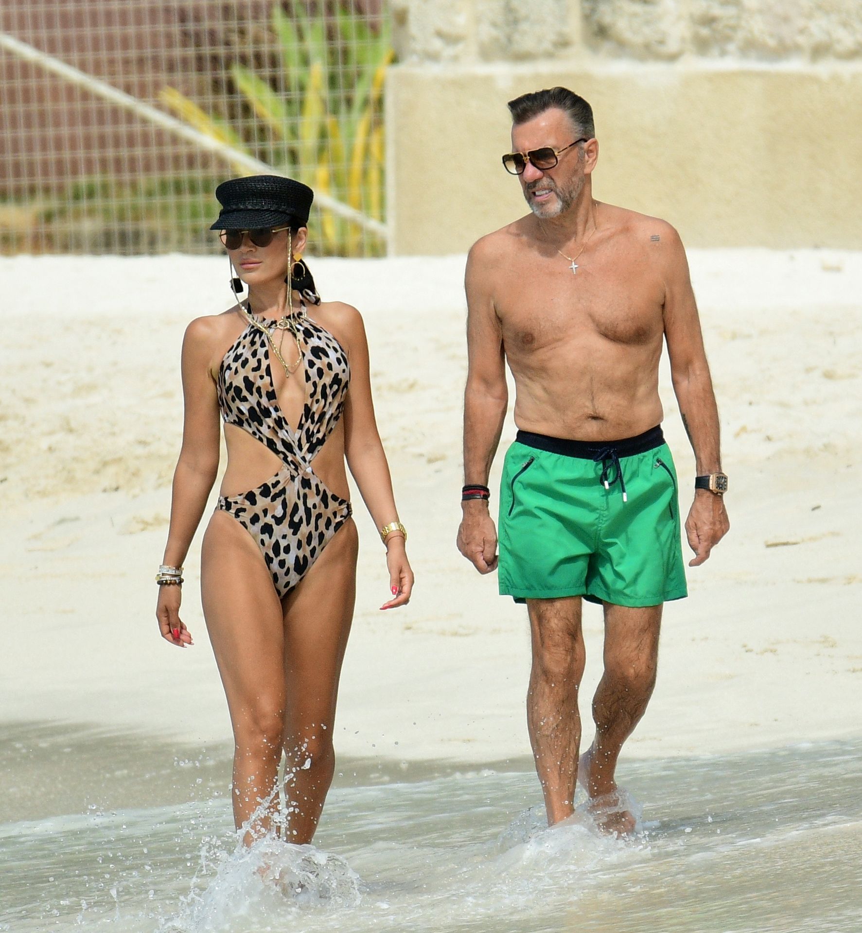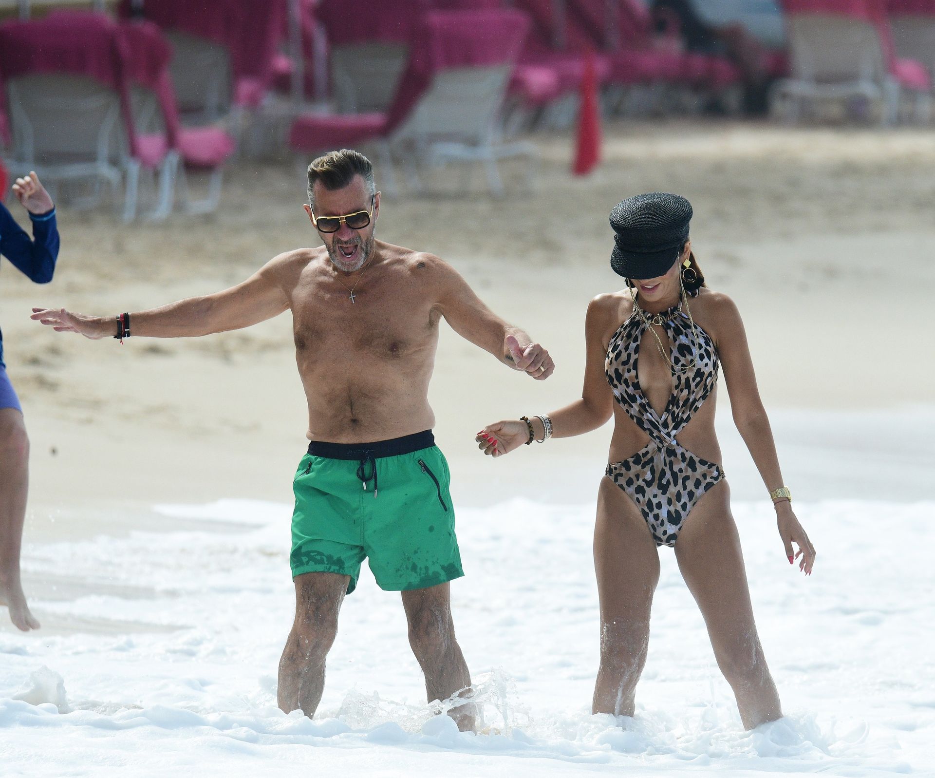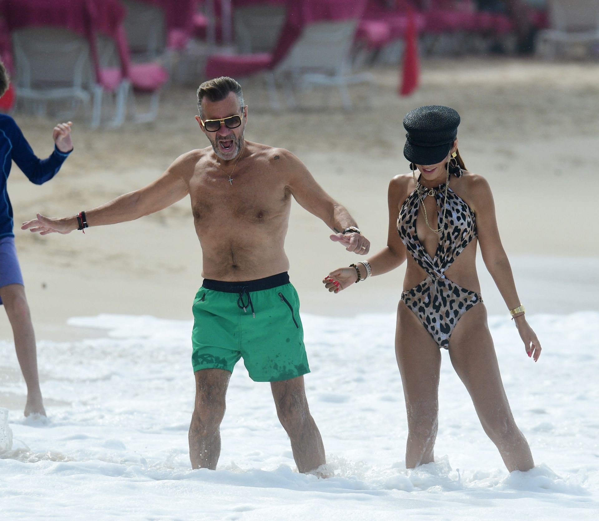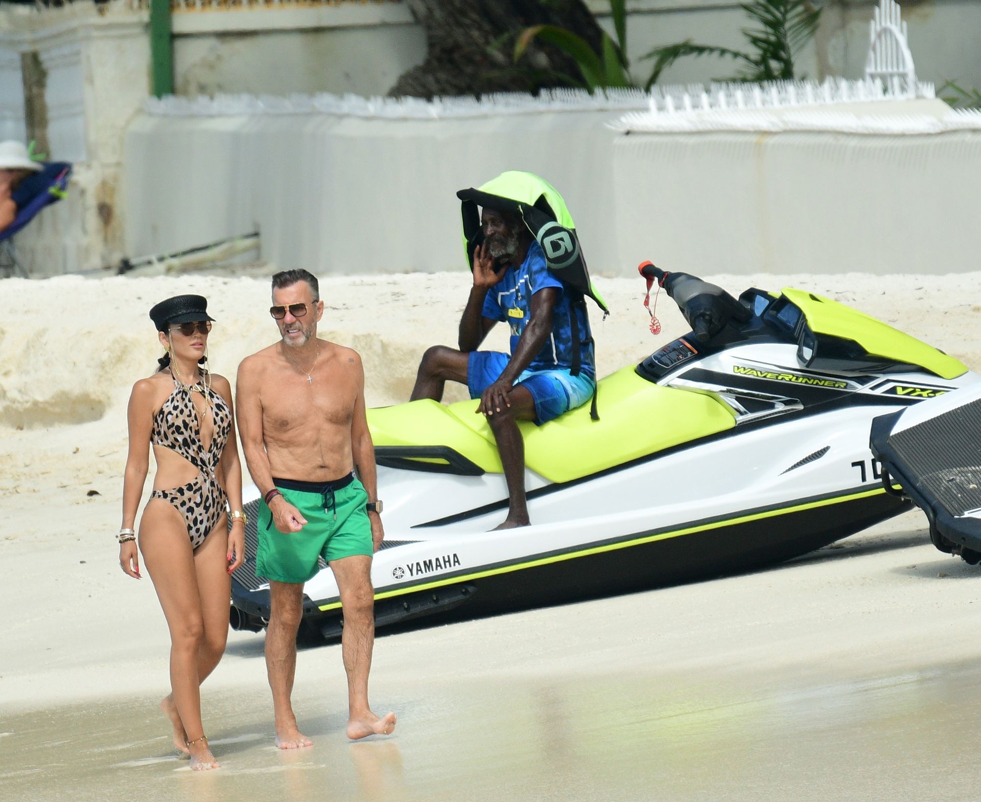 Scottish entrepreneur, Duncan Bannatyne and his wife Nigora Bannatyne make a splash on the beach and have some fun in the sun while vacationing in Barbados, 12/29/2019.