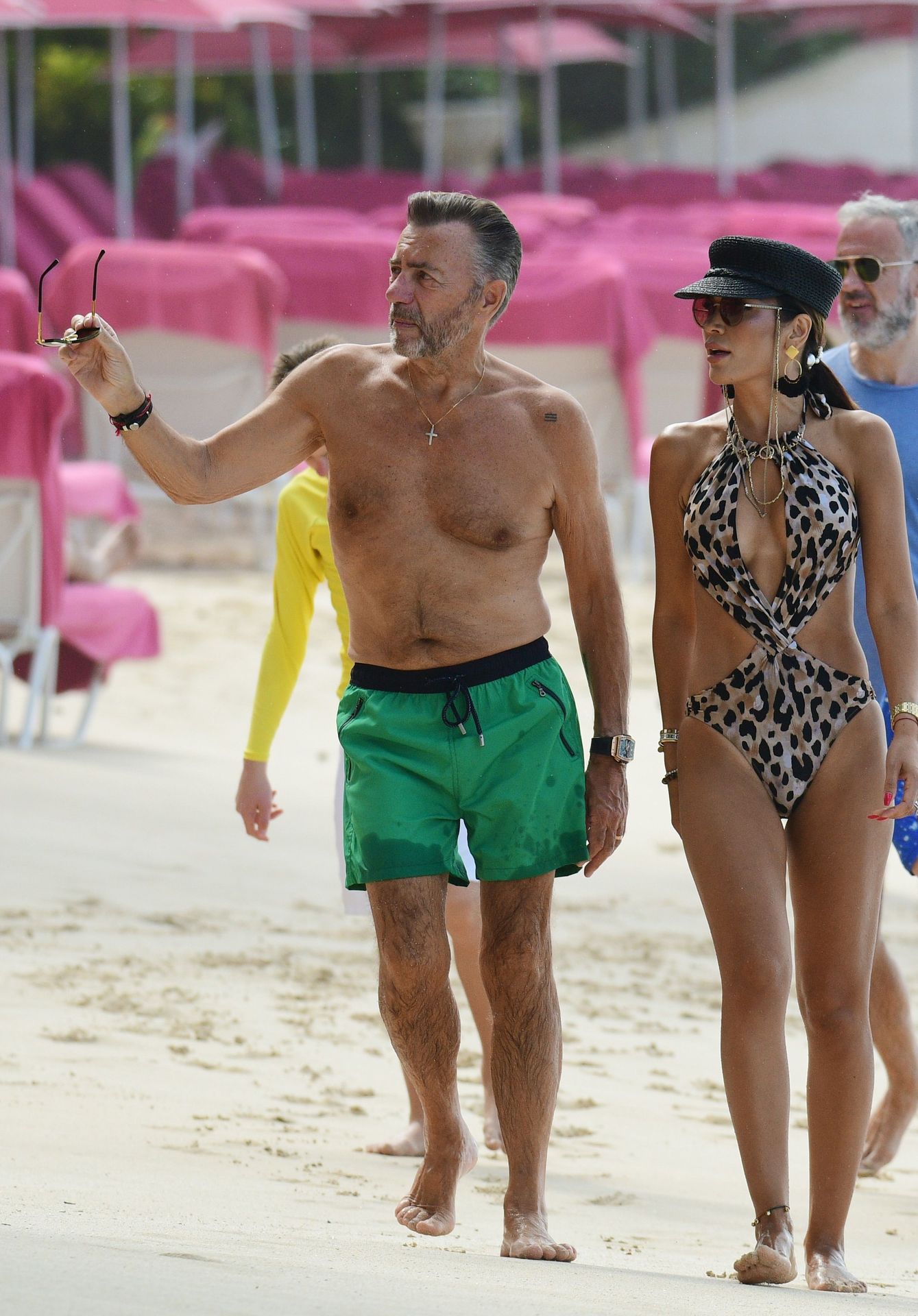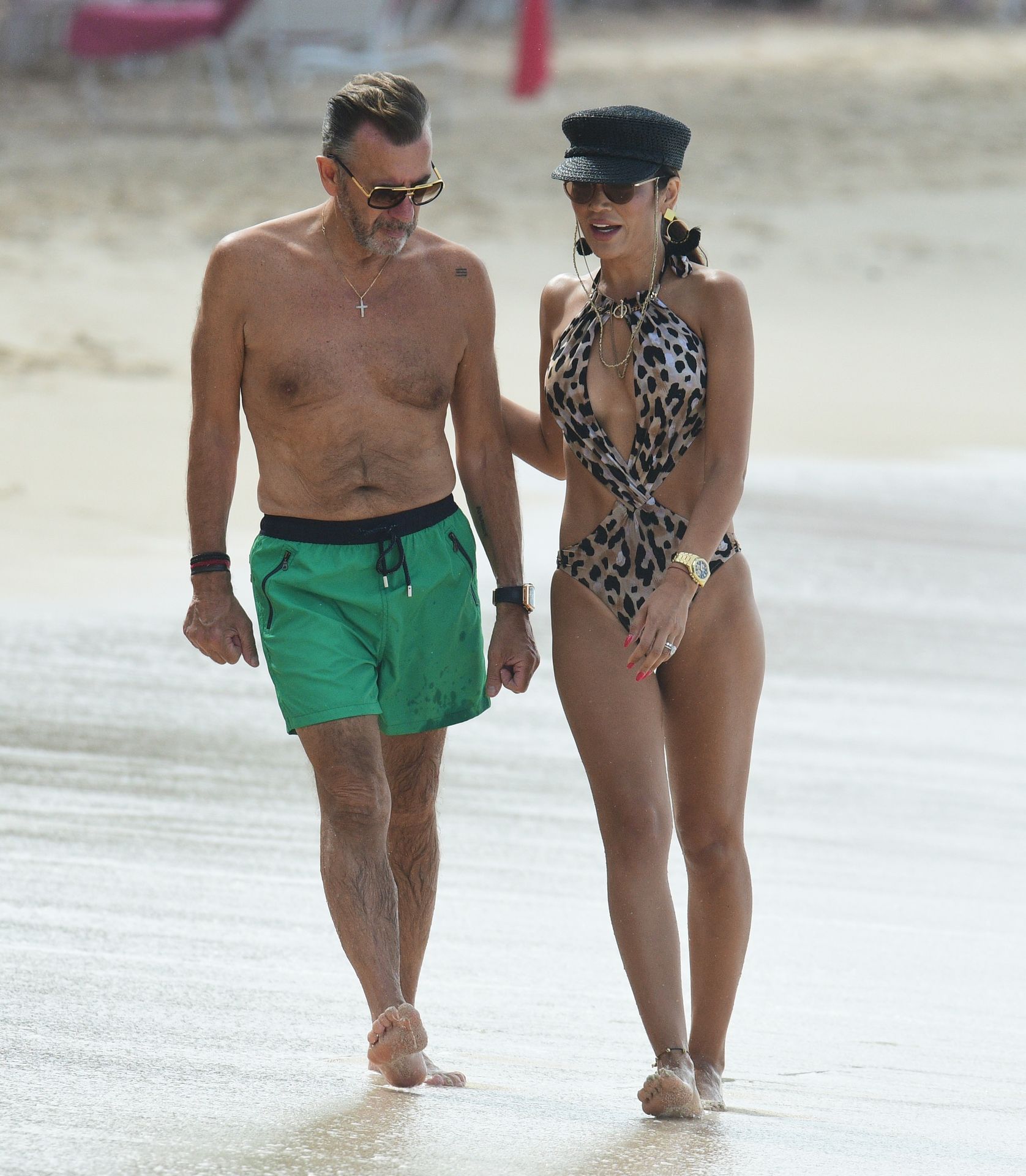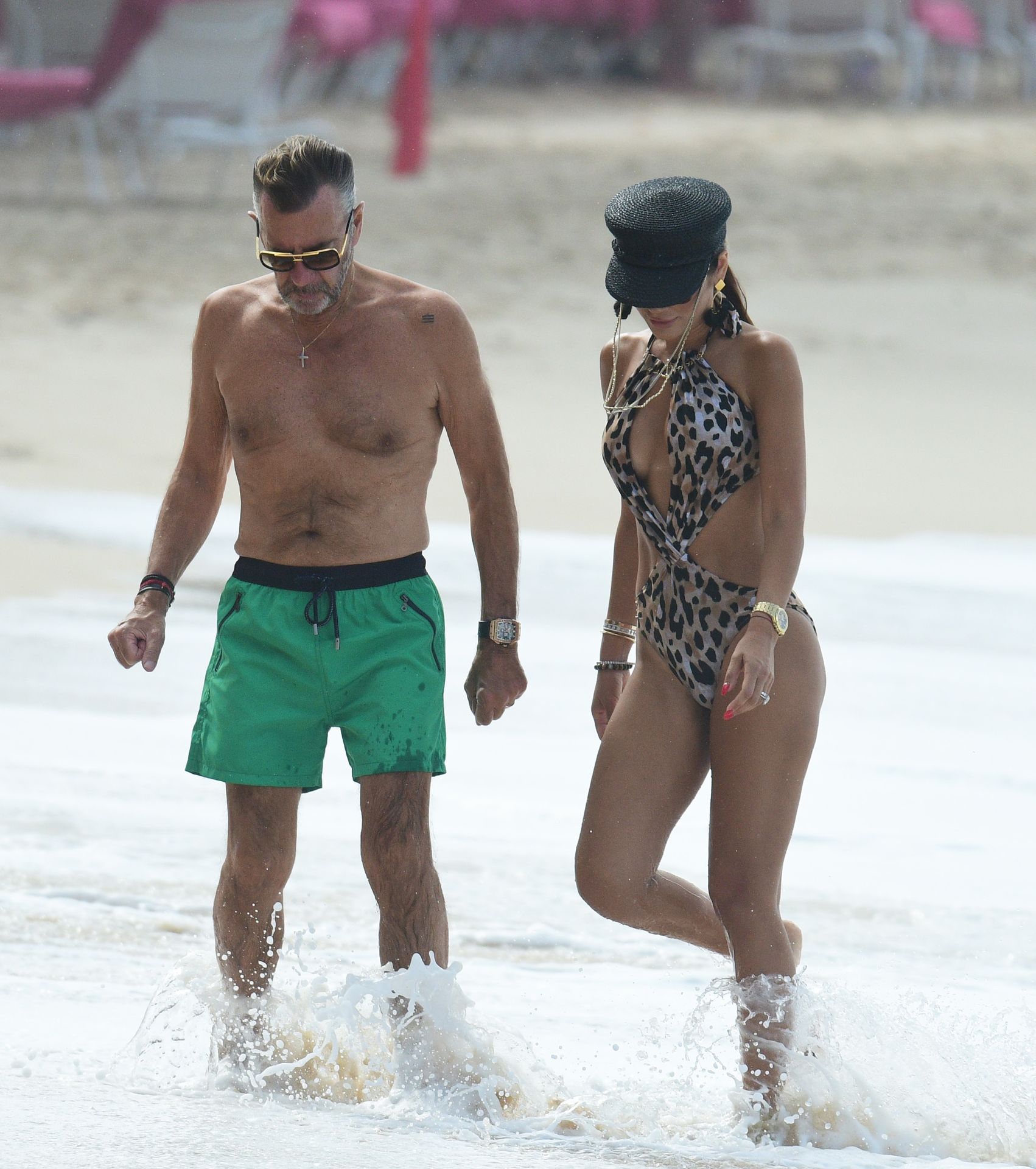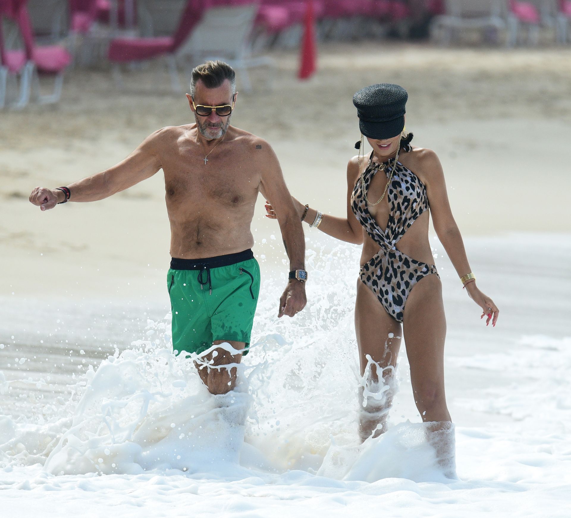Scottish entrepreneur, Duncan Bannatyne and his wife Nigora Bannatyne make a splash on the beach and have some fun in the sun while vacationing in Barbados, 12/29/2019.