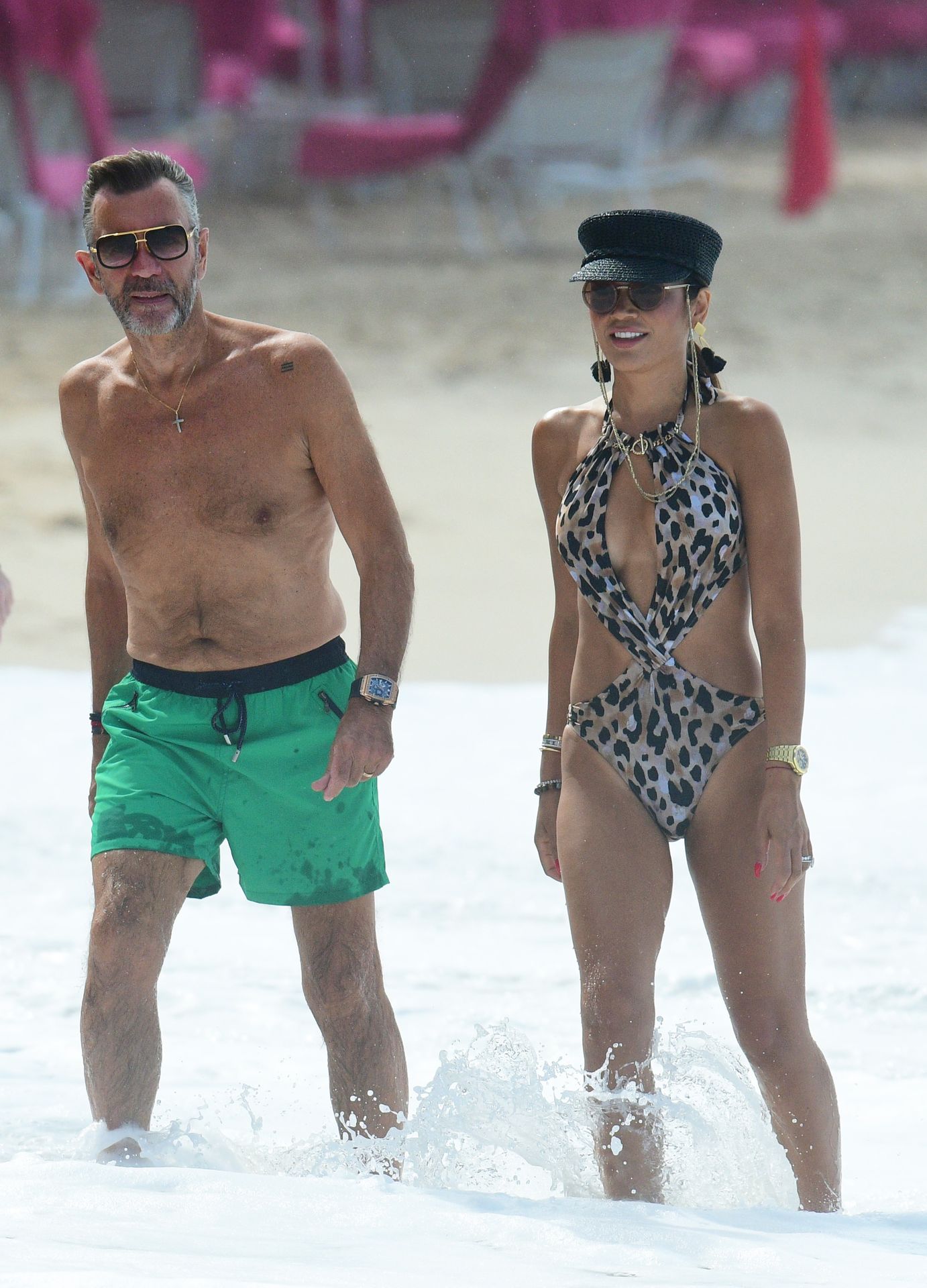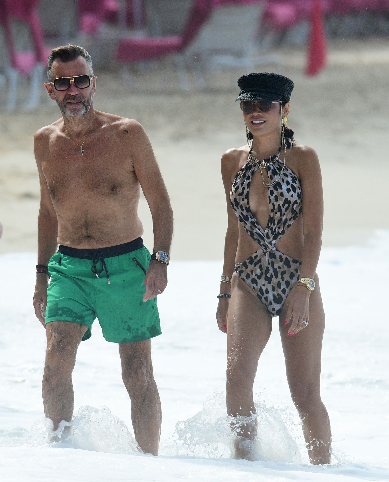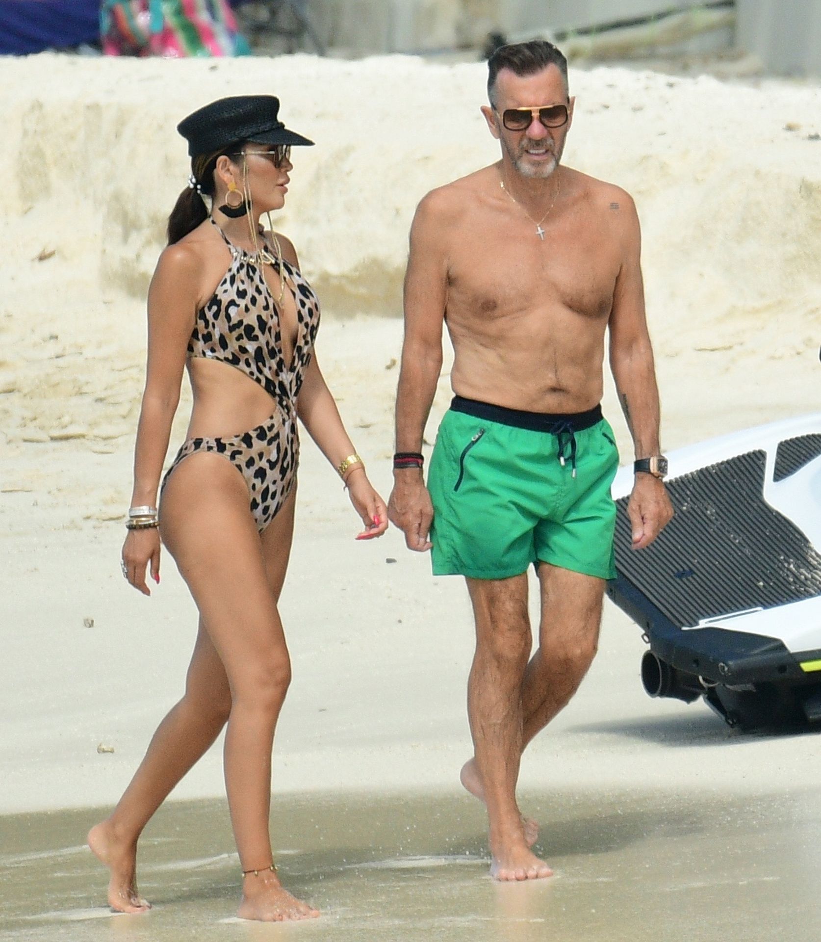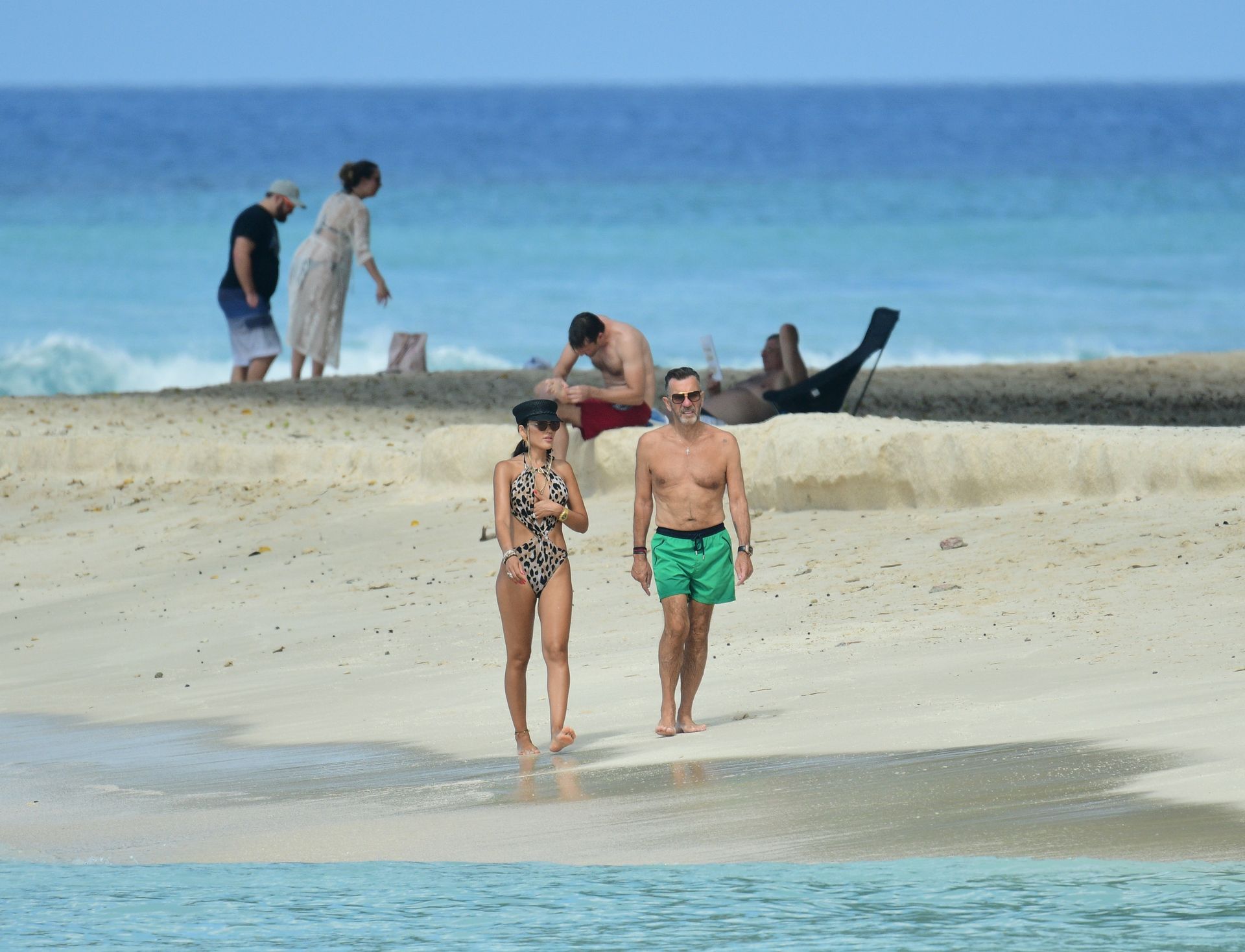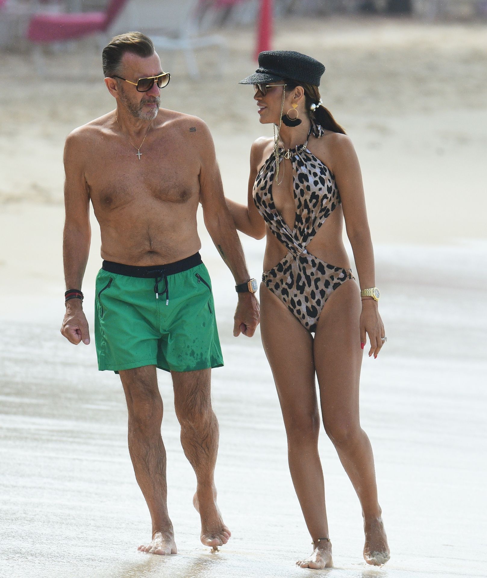 Scottish entrepreneur, Duncan Bannatyne and his wife Nigora Bannatyne make a splash on the beach and have some fun in the sun while vacationing in Barbados, 12/29/2019.