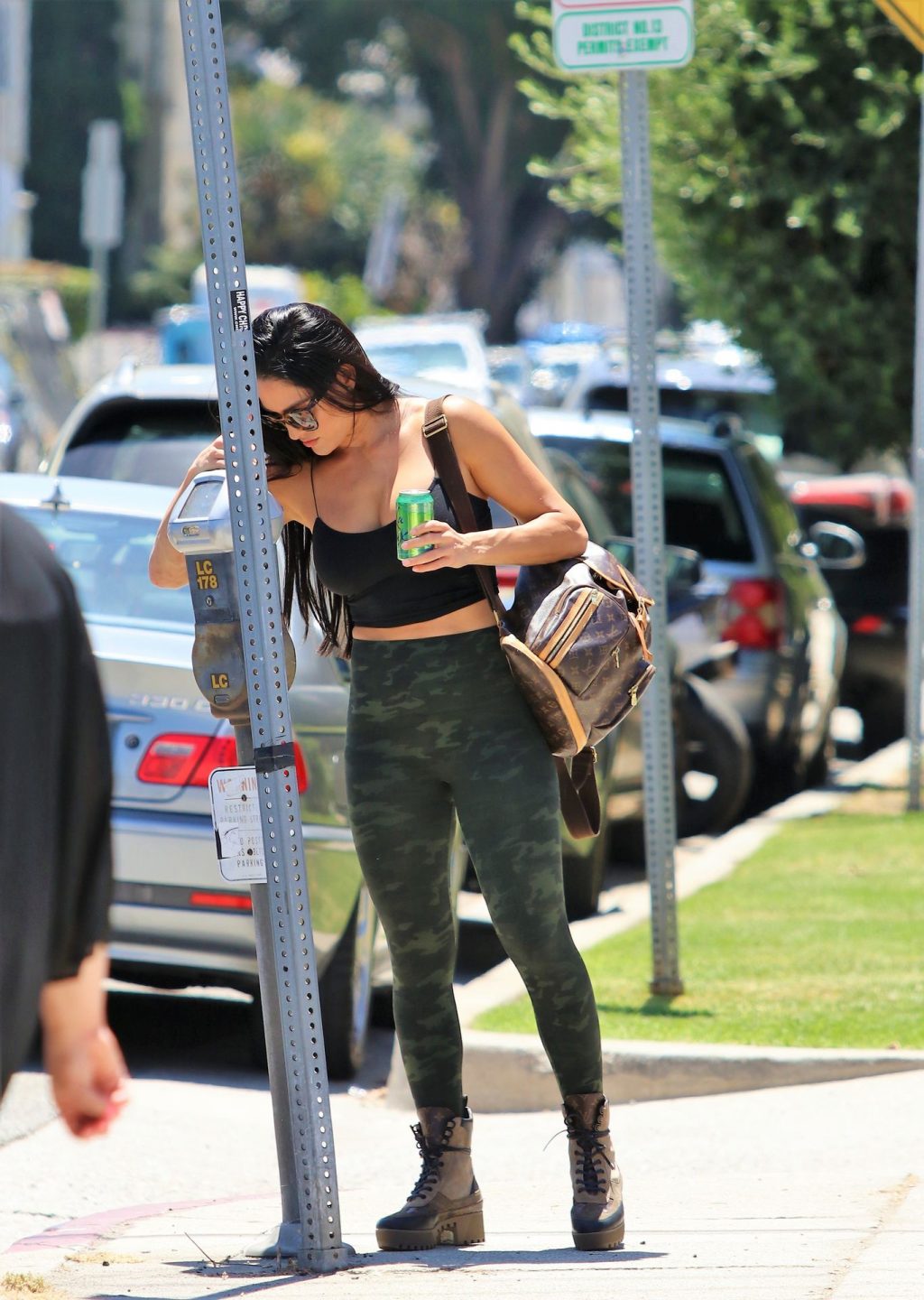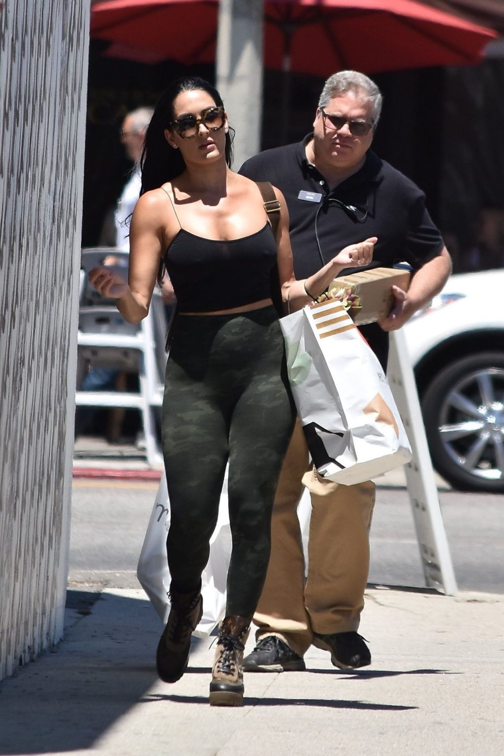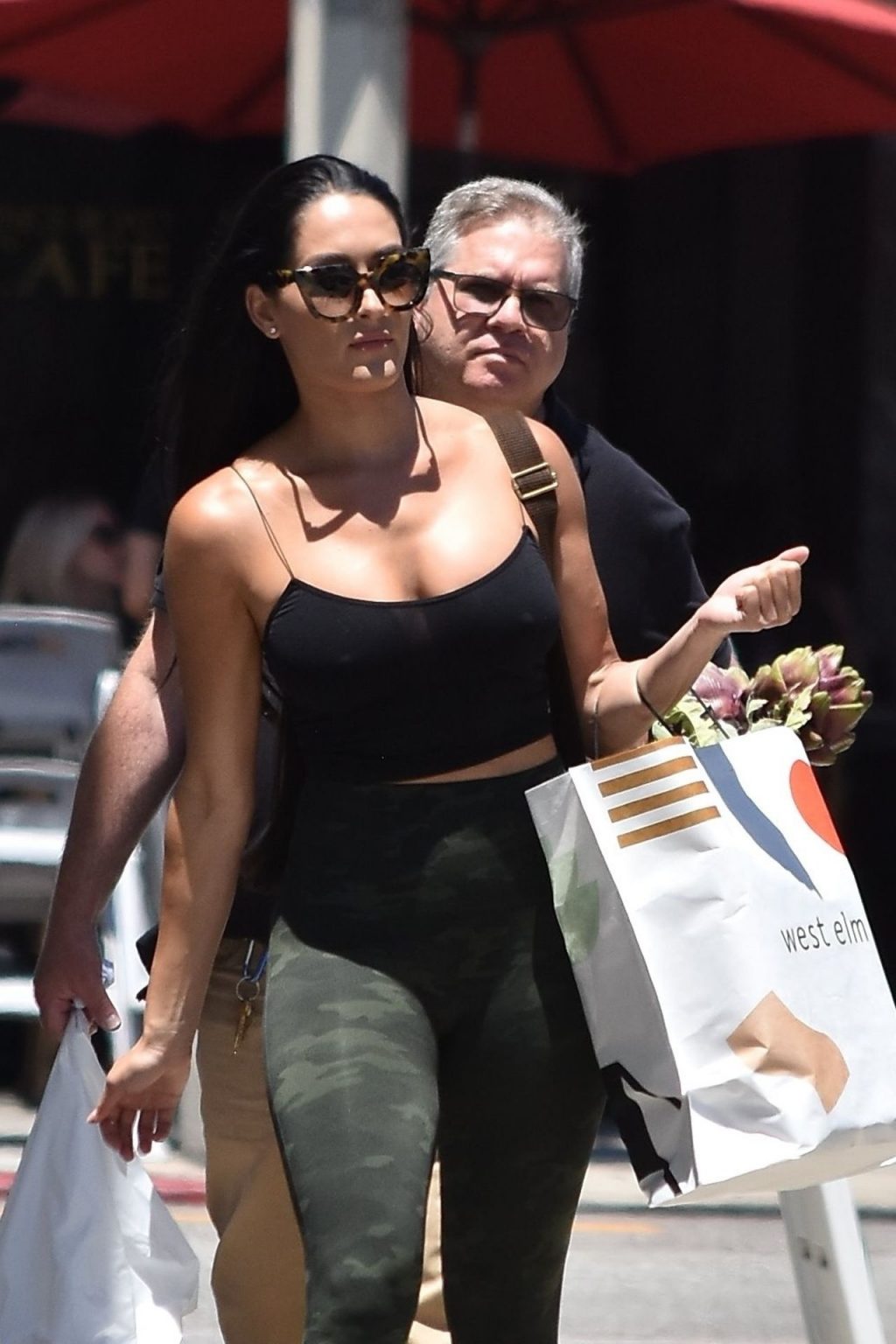 Nikki Bella was seen out shopping for furniture in West Hollywood, 07/27/2019. The WWE Star showed off her tits wearing a black sports top without a bra.