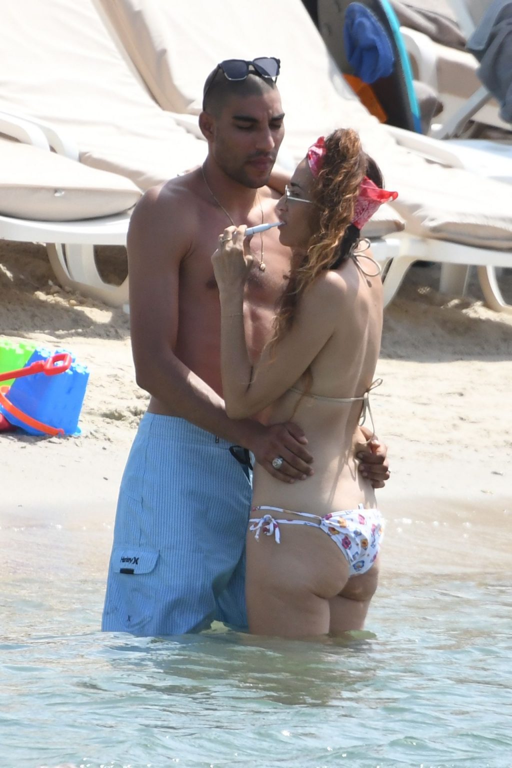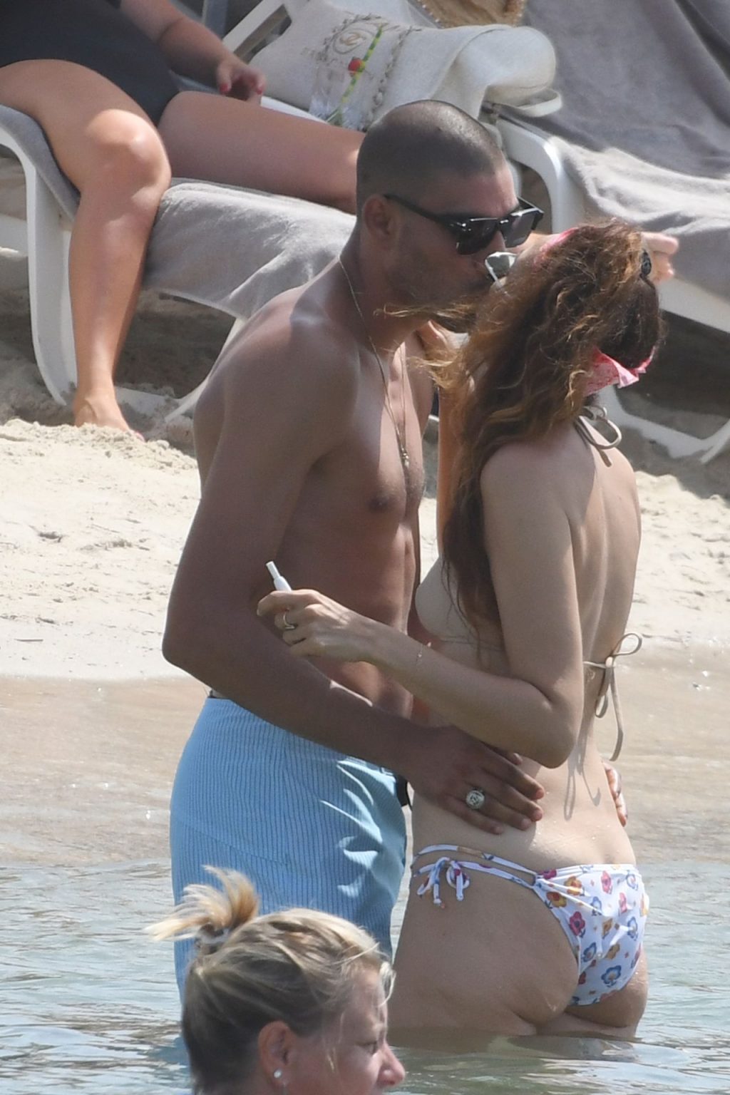Cannes singer Nina Zilli and the boyfriend artist Omar Hassan were seen on vacation on the beach in Provence-Alpes-Côte d’Azur, 08/15/2019.