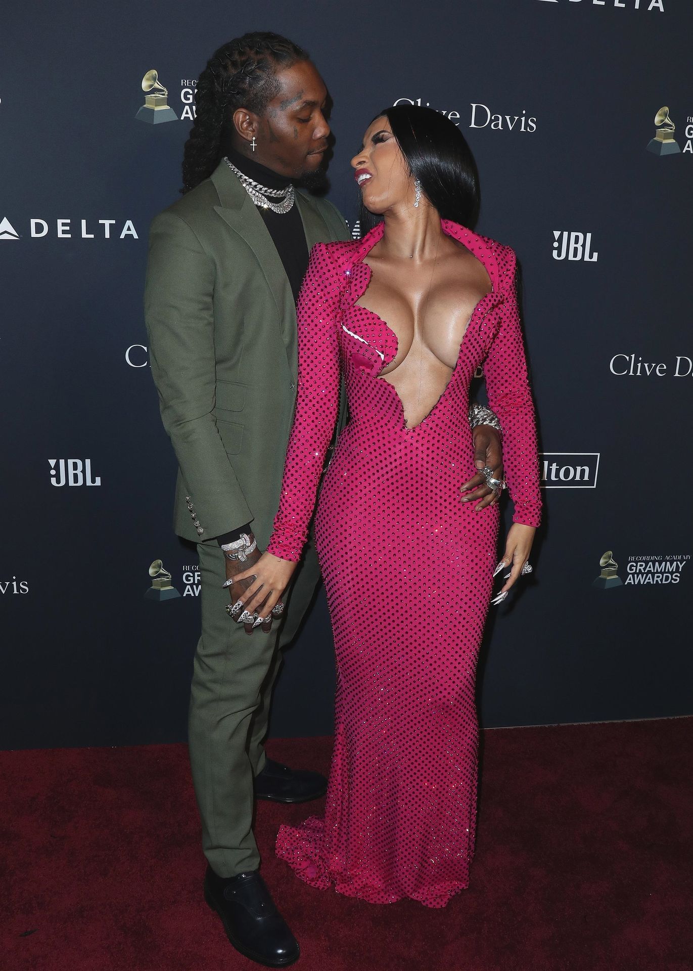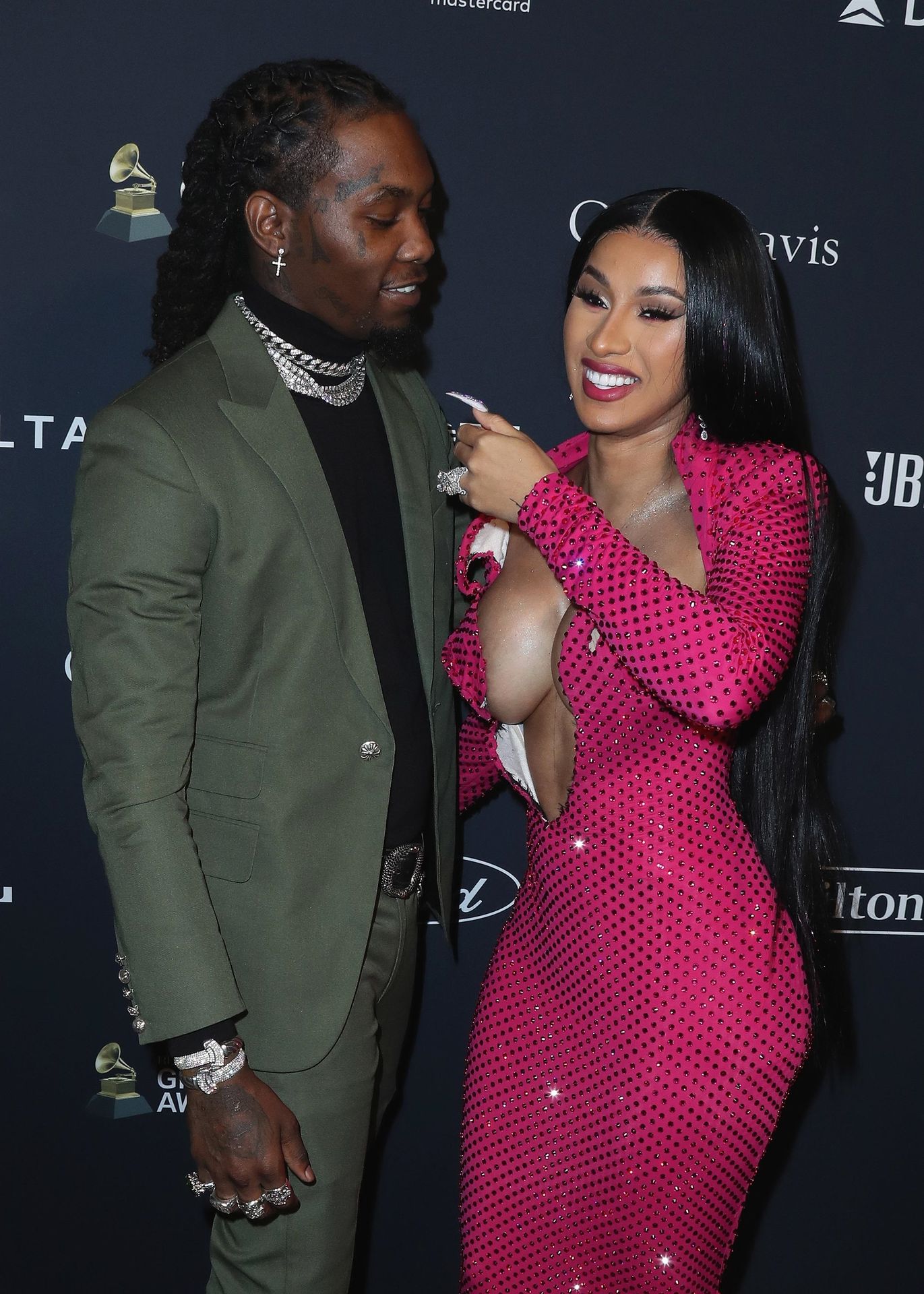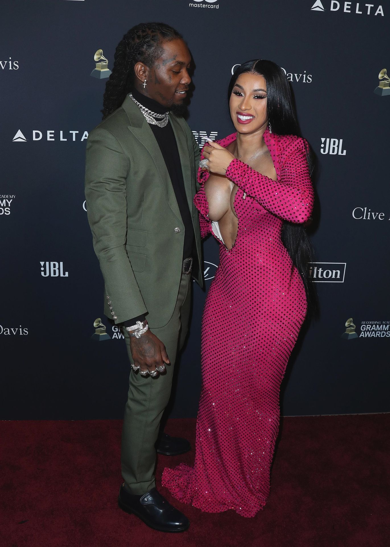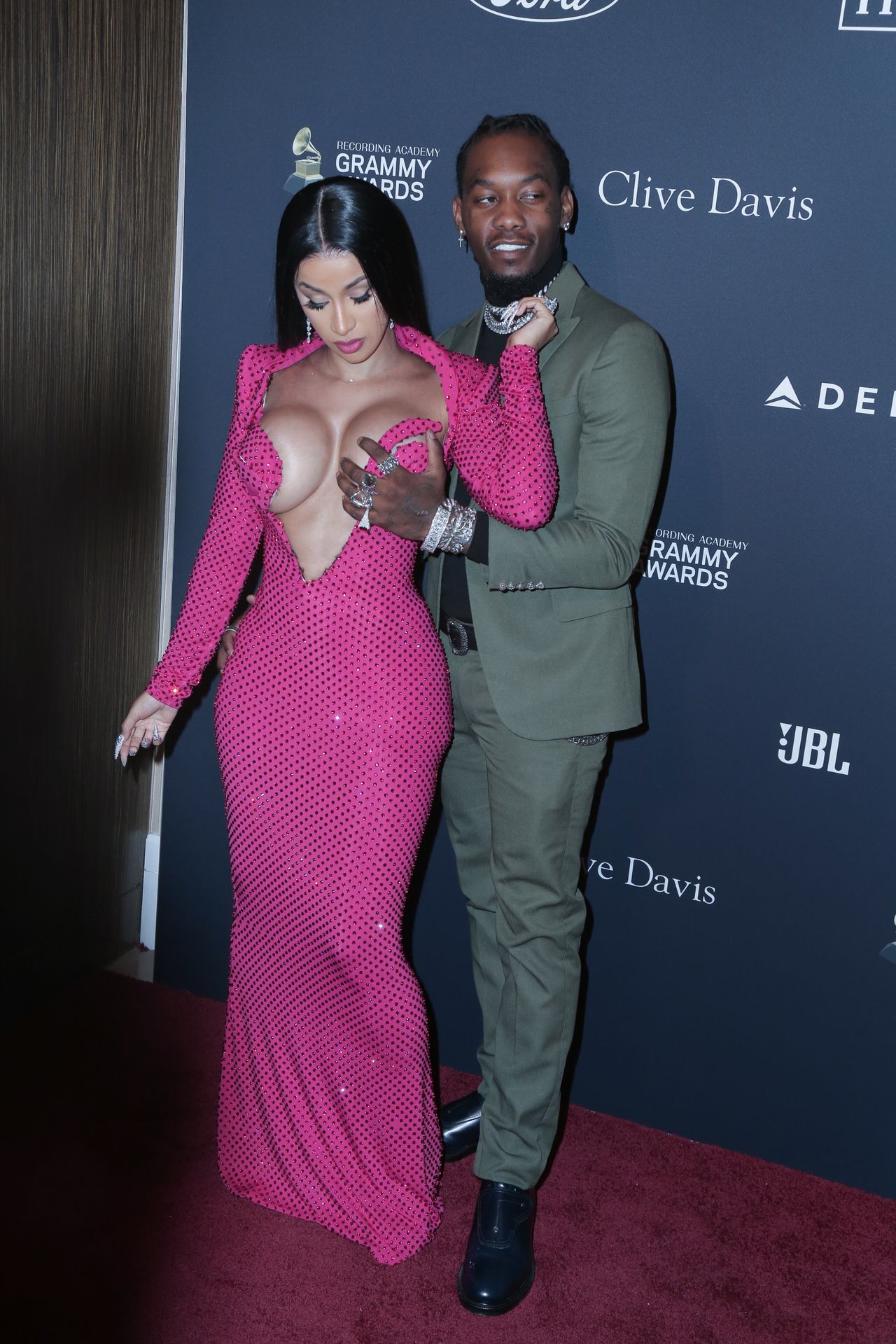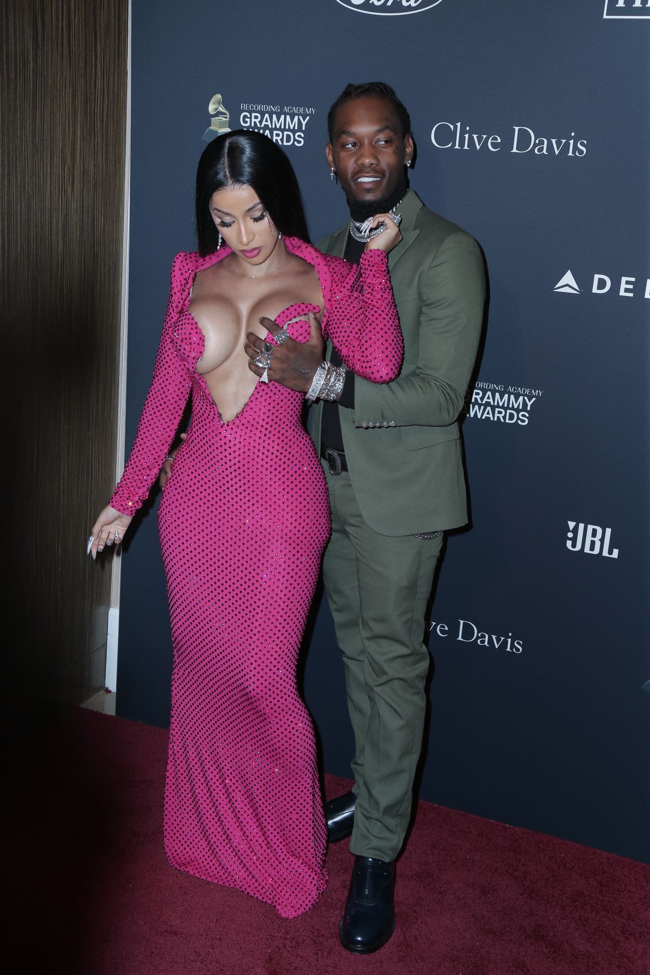 Cardi B and Offset attend Clive Davis’ 2020 Pre-Grammy Gala held at the Beverly Hilton Hotel in Beverly Hills, 01/25/2020. The sbusty inger made us happy again with her beautiful dress!