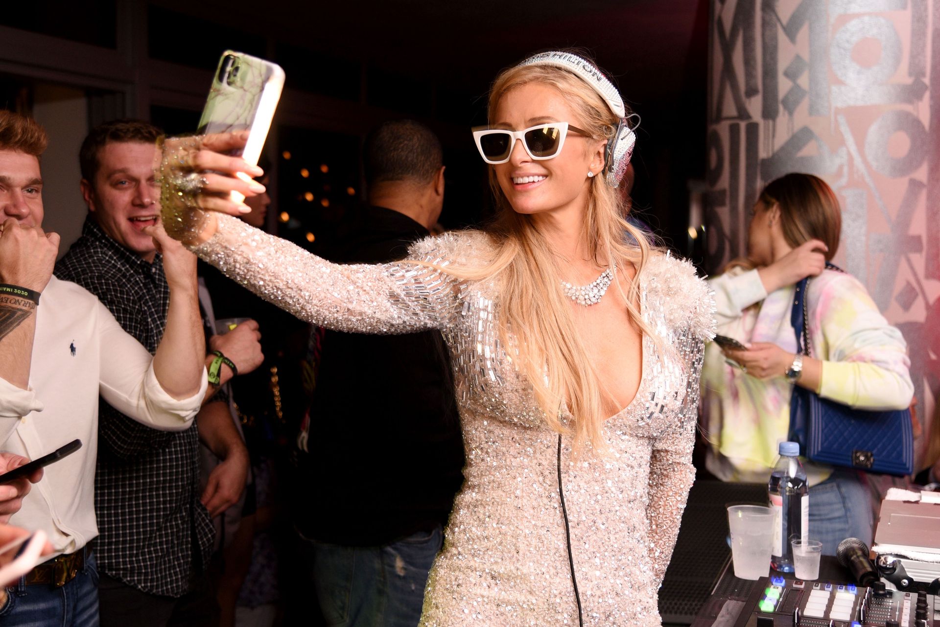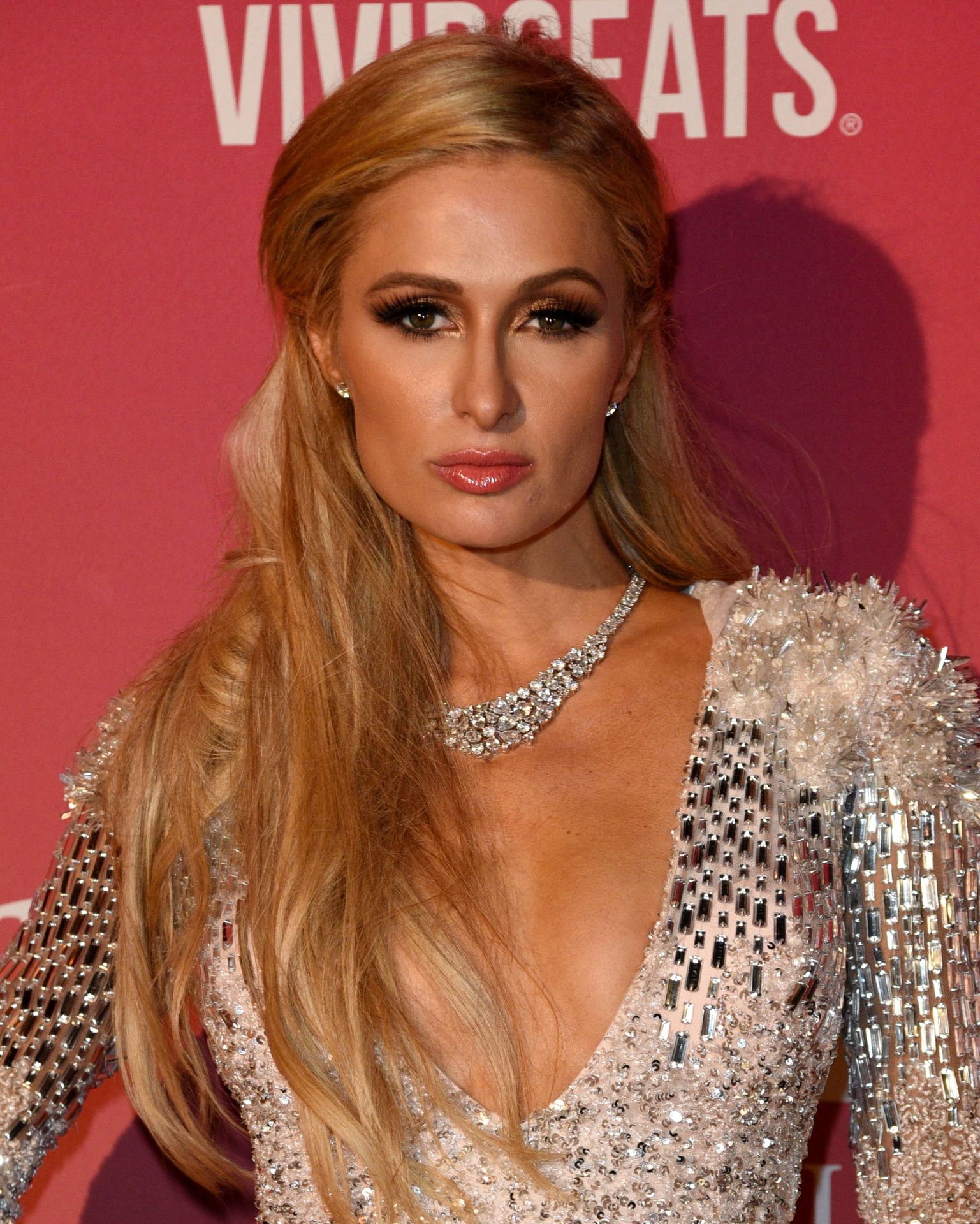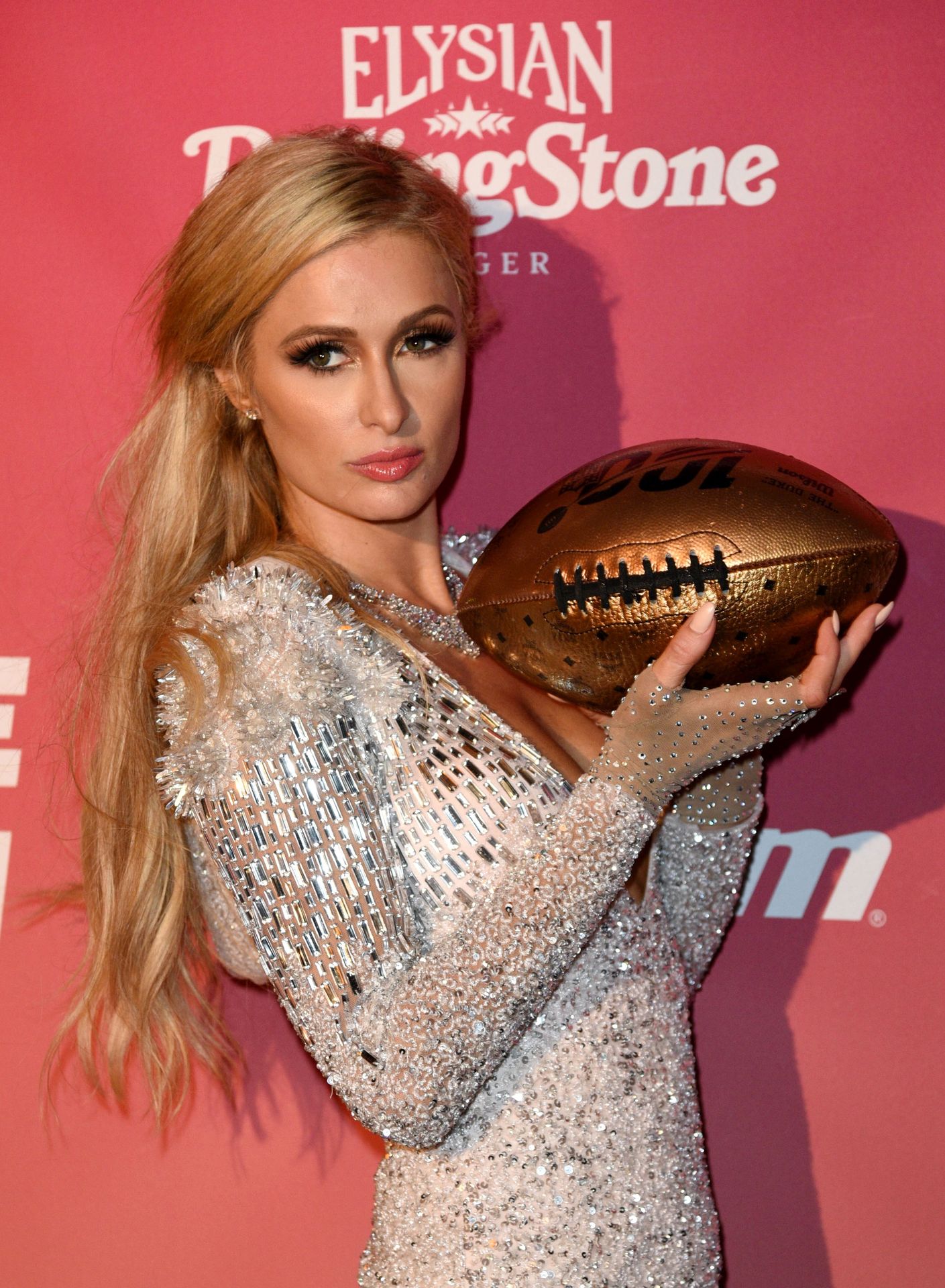 Golden blonde Paris Hilton attends Rolling Stone Live Miami at SLS South Beach in Miami, Florida, 02/01/2020. The leggy superstar was photographed at the event wearing a short dress without a bra.