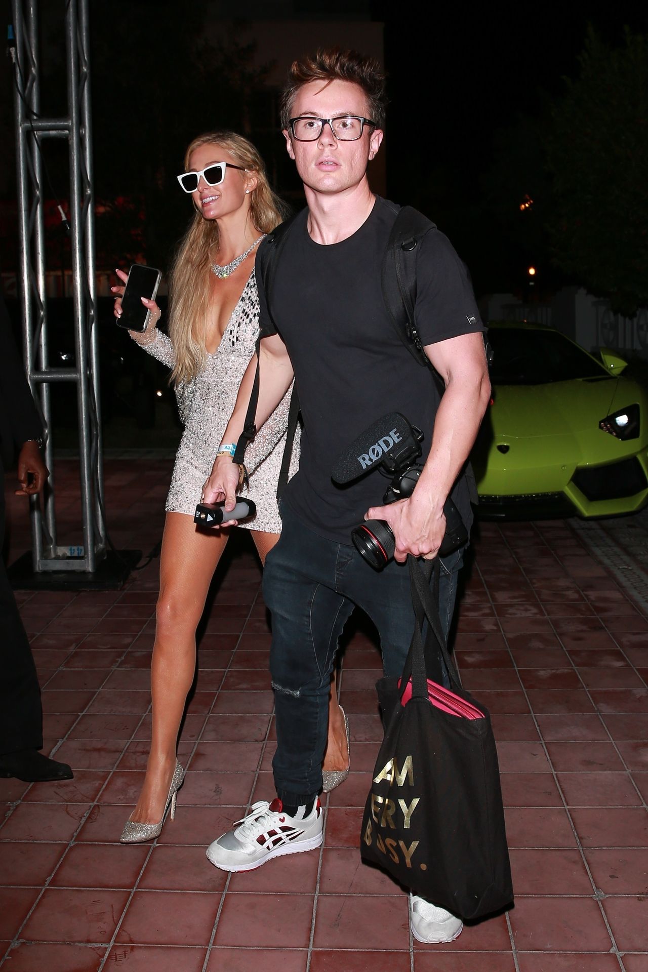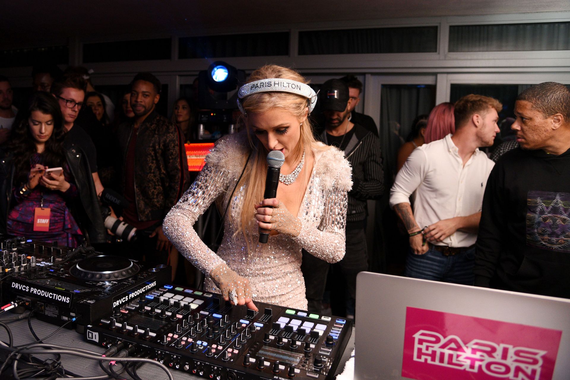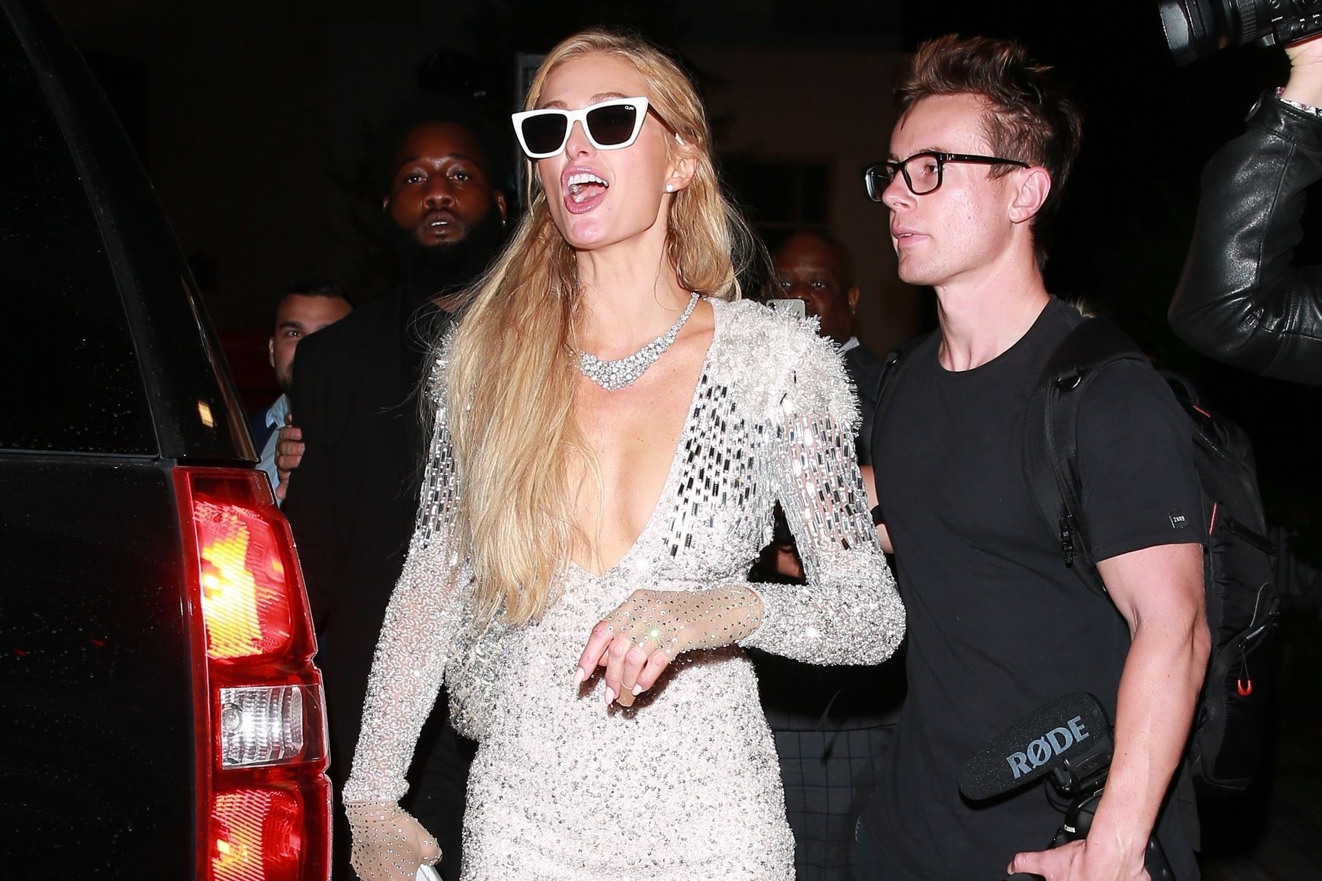 Golden blonde Paris Hilton attends Rolling Stone Live Miami at SLS South Beach in Miami, Florida, 02/01/2020. The leggy superstar was photographed at the event wearing a short dress without a bra.