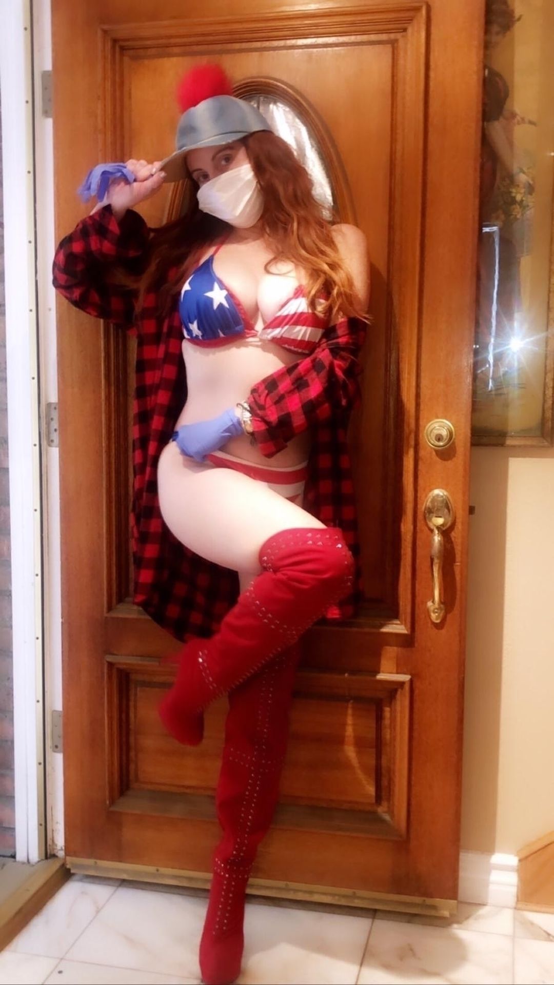 Busty actress Phoebe Price shows off her curves as she poses for photos in an American flag bikini and a mask – West Hollywood, 03/20/2020.
