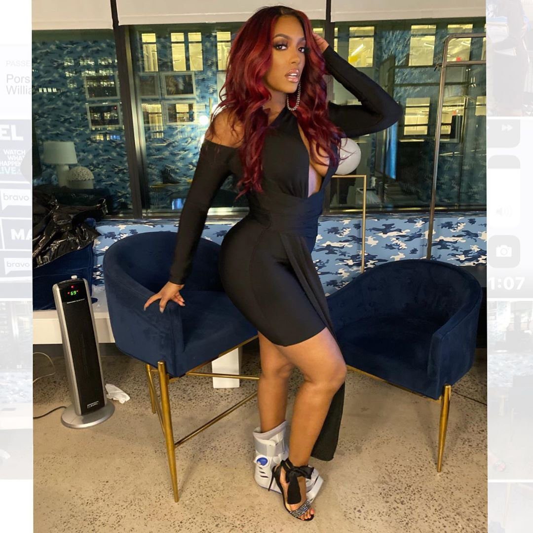 Busty American TV personality, model, actress Porsha Williams (38) was photographed with an injured leg at the Watch What Happens Live With Andy Cohen – Season 16 in New York, 12/01/2019.