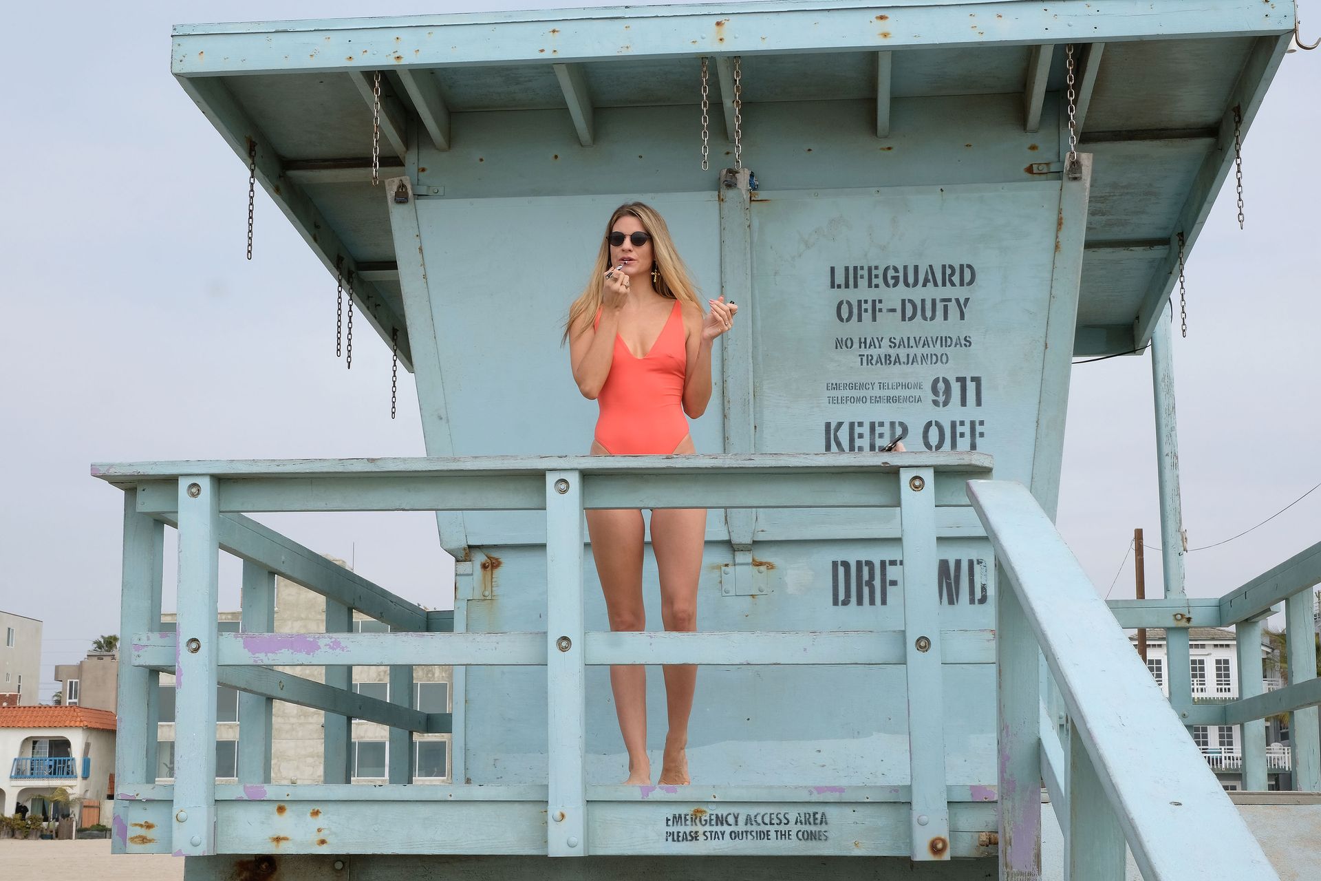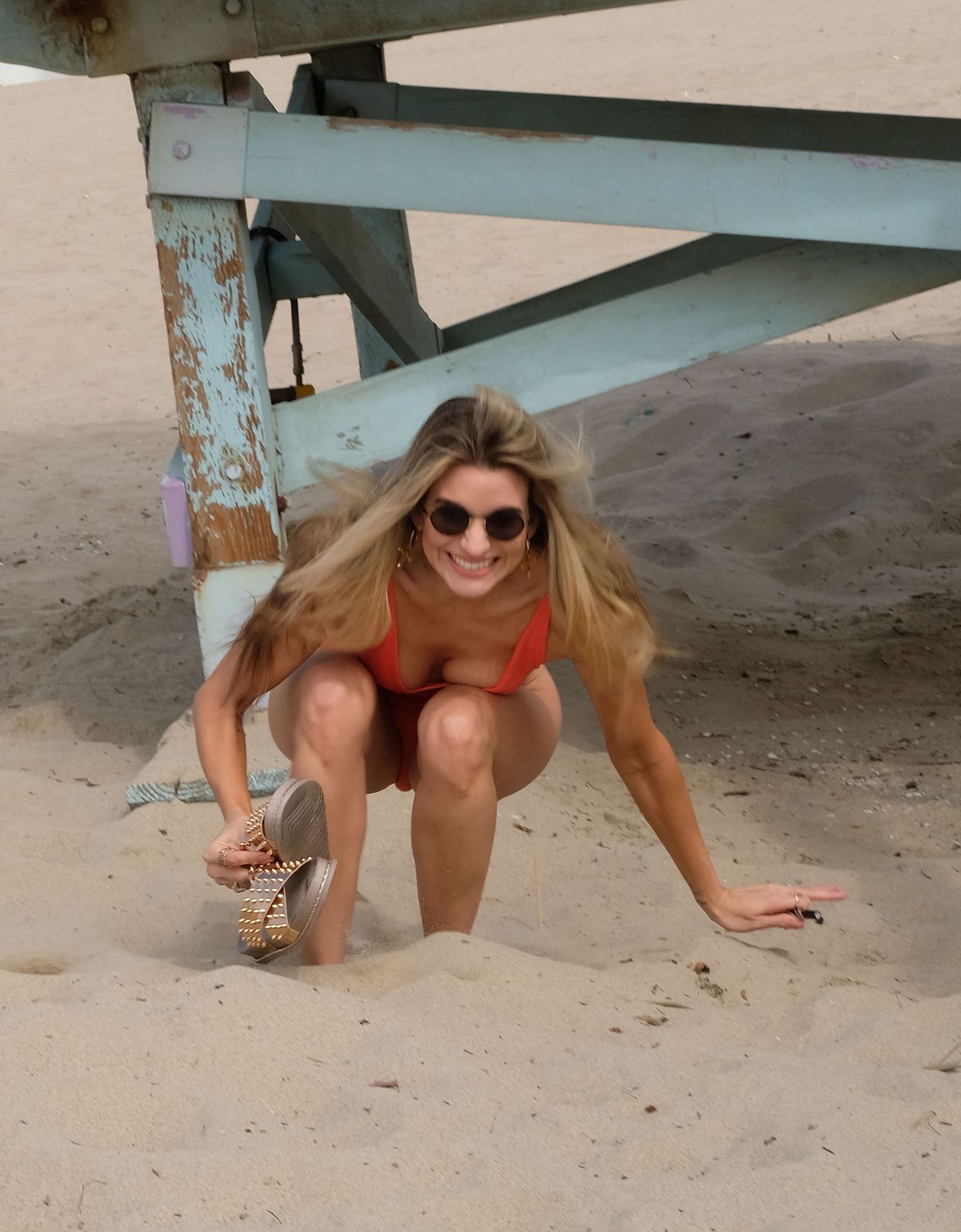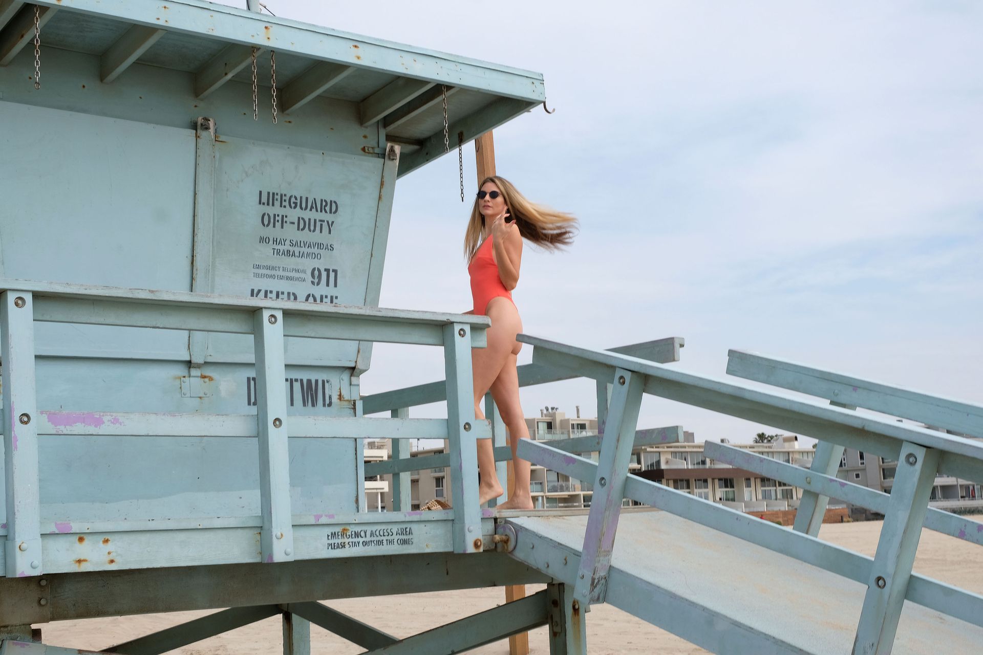 Rachel McCord was seen enjoying the morning at the beach in Venice, 07/20/2019. The 29-year-old influencer showed her slim body in a red one-piece swimsuit.