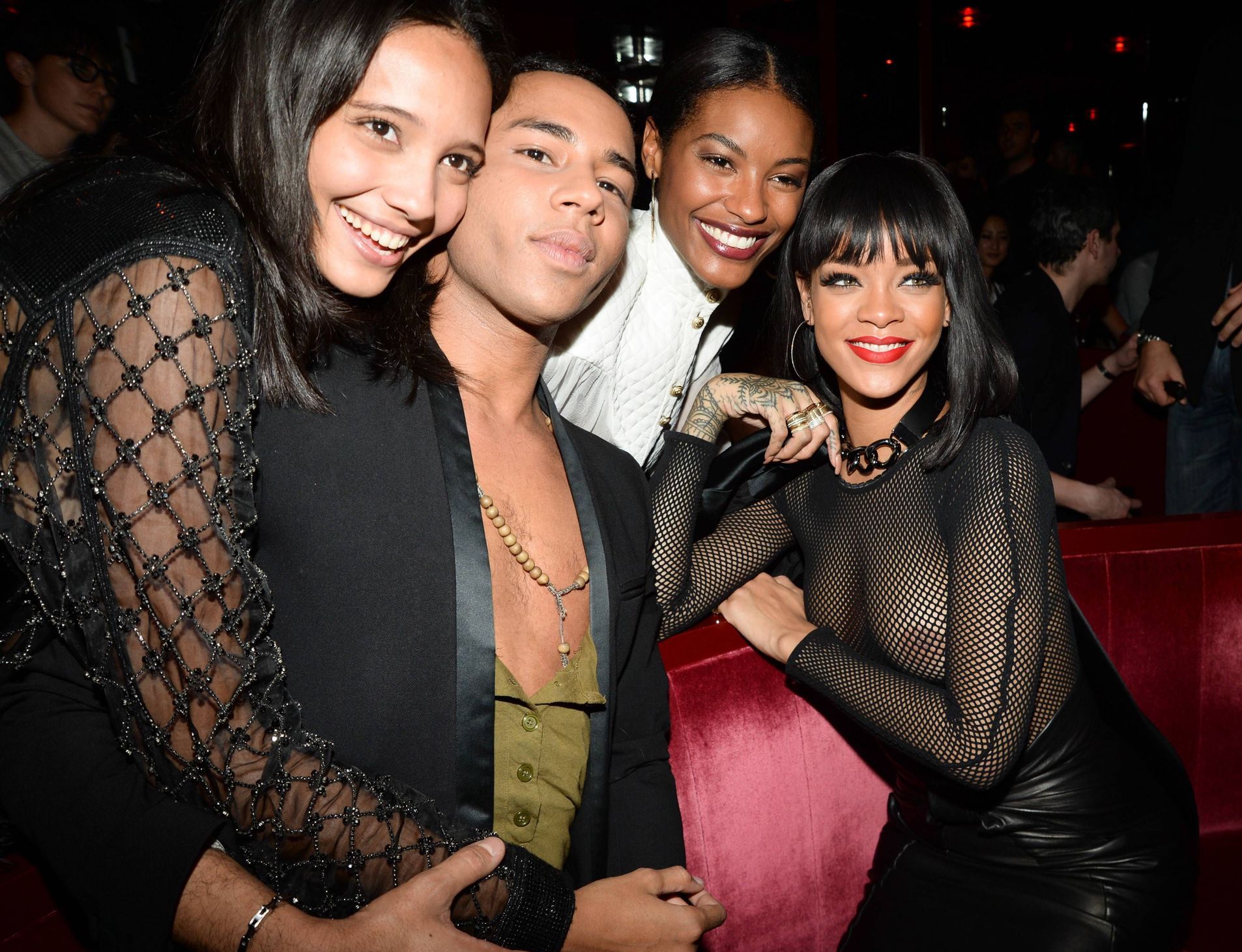 Singer Rihanna showed off her tits at the Balmain after party during Paris Fashion Week, 09/15/2014.