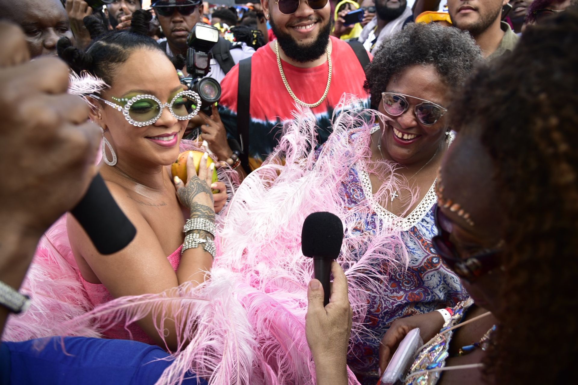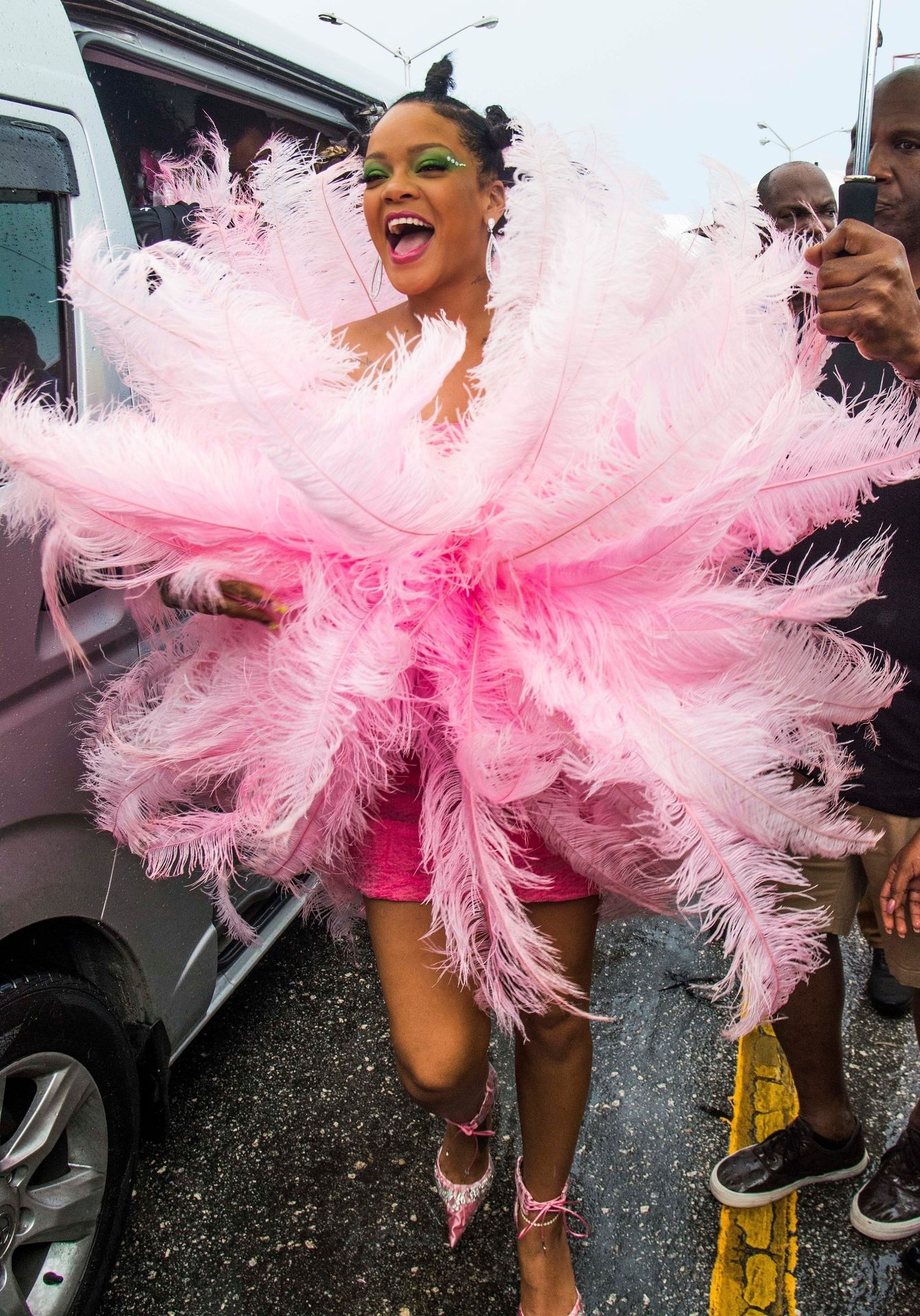 Singer Rihanna is spotted in a pink dress during “Kadooment Day” parade in St. Michael Parish, Barbados, 08/05/2019.