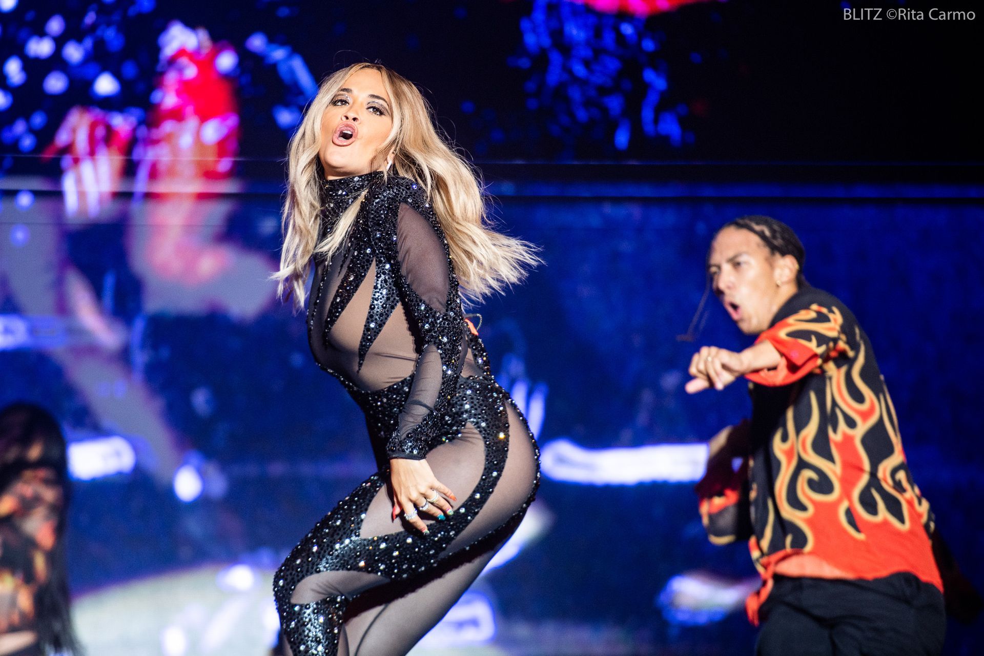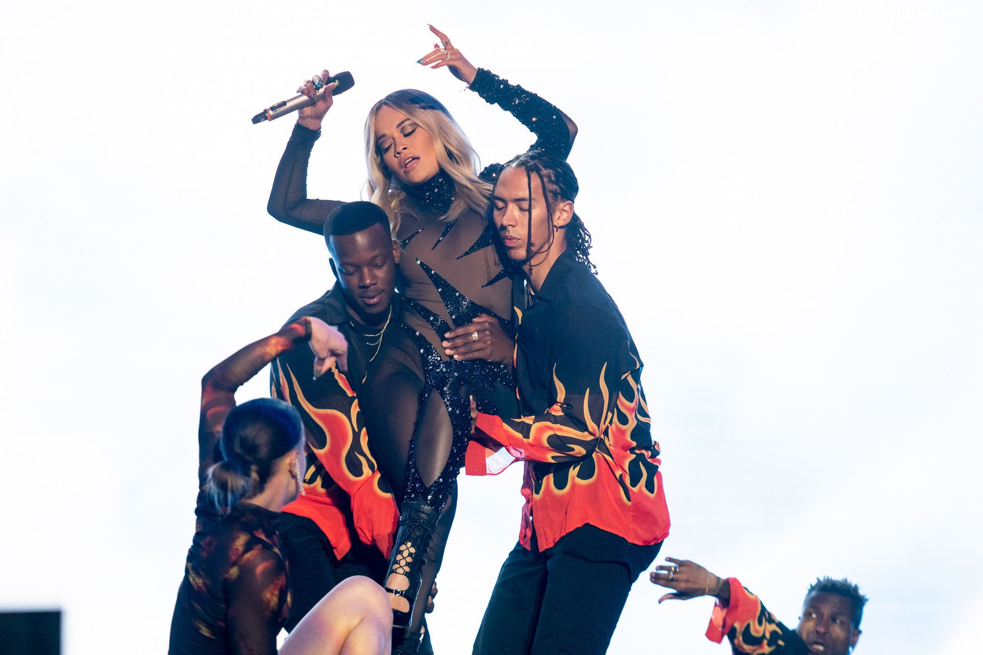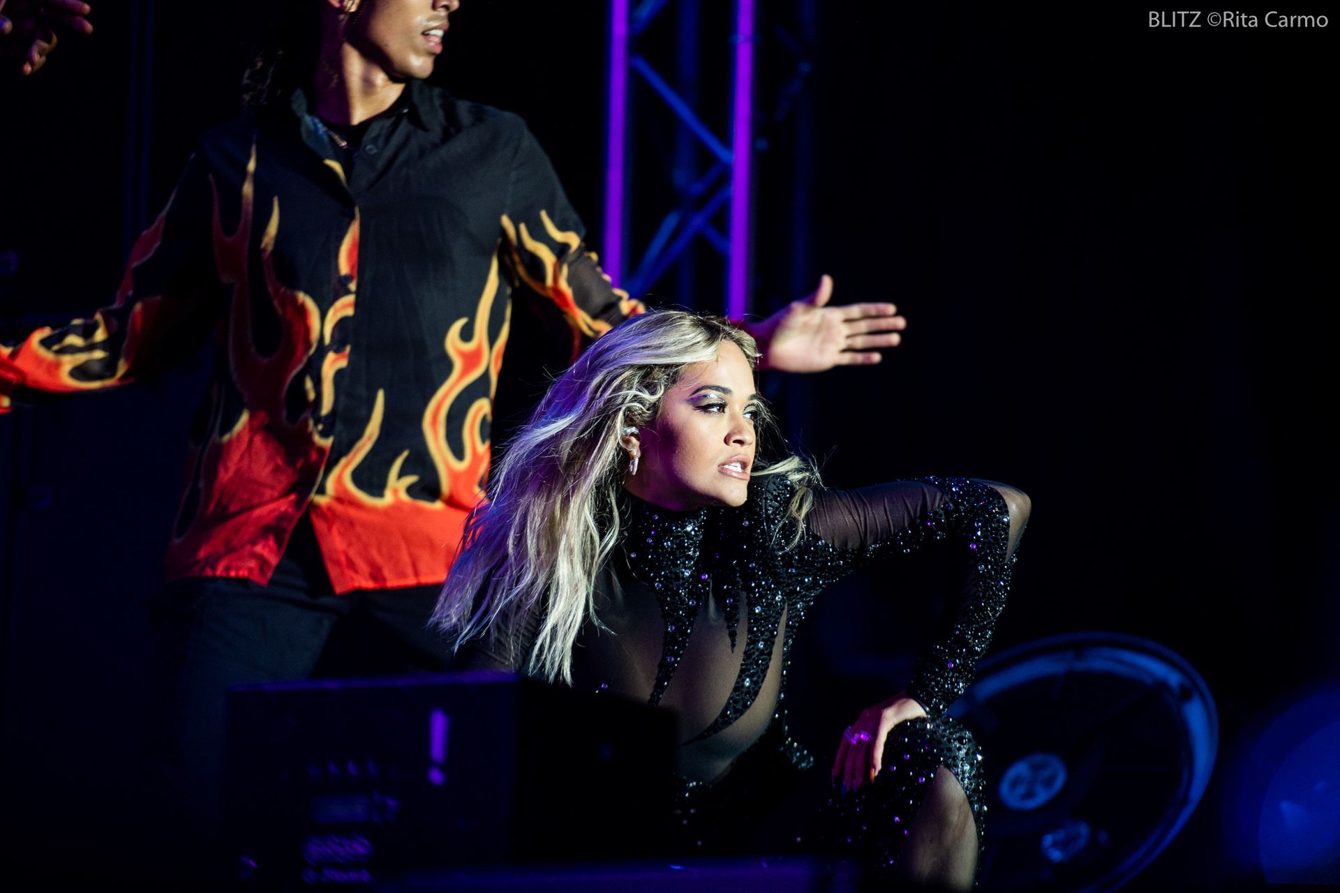 Rita Ora performs at the 23rd edition of the Meo Sudoeste Festival in Zambujeira do Mar, Portugal, 08/10/2019. The singer chose for the concert a tight black outfit.
