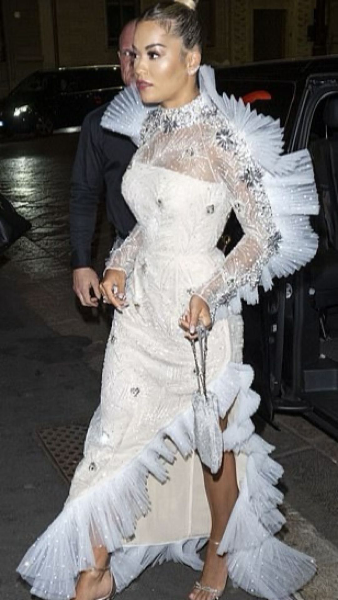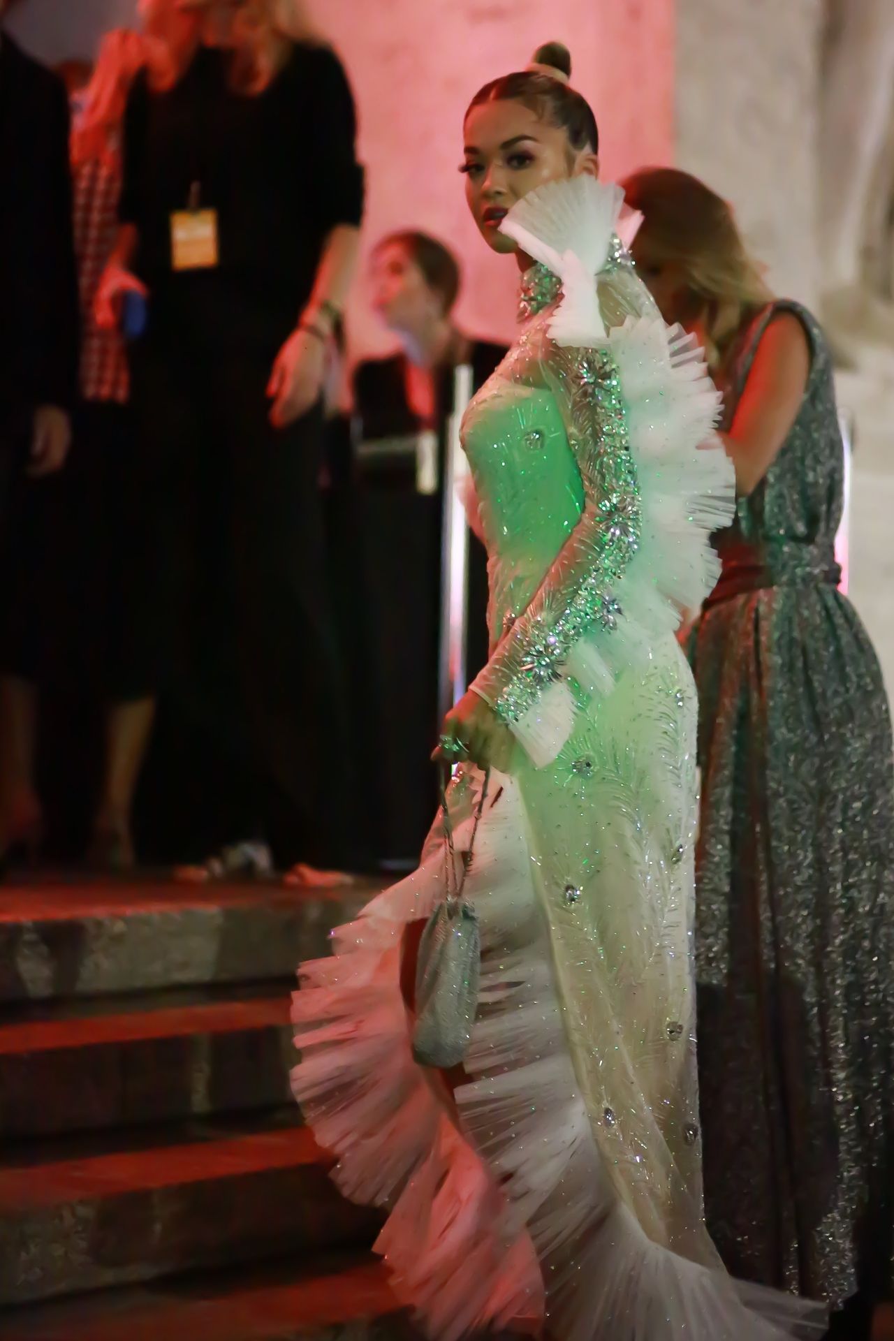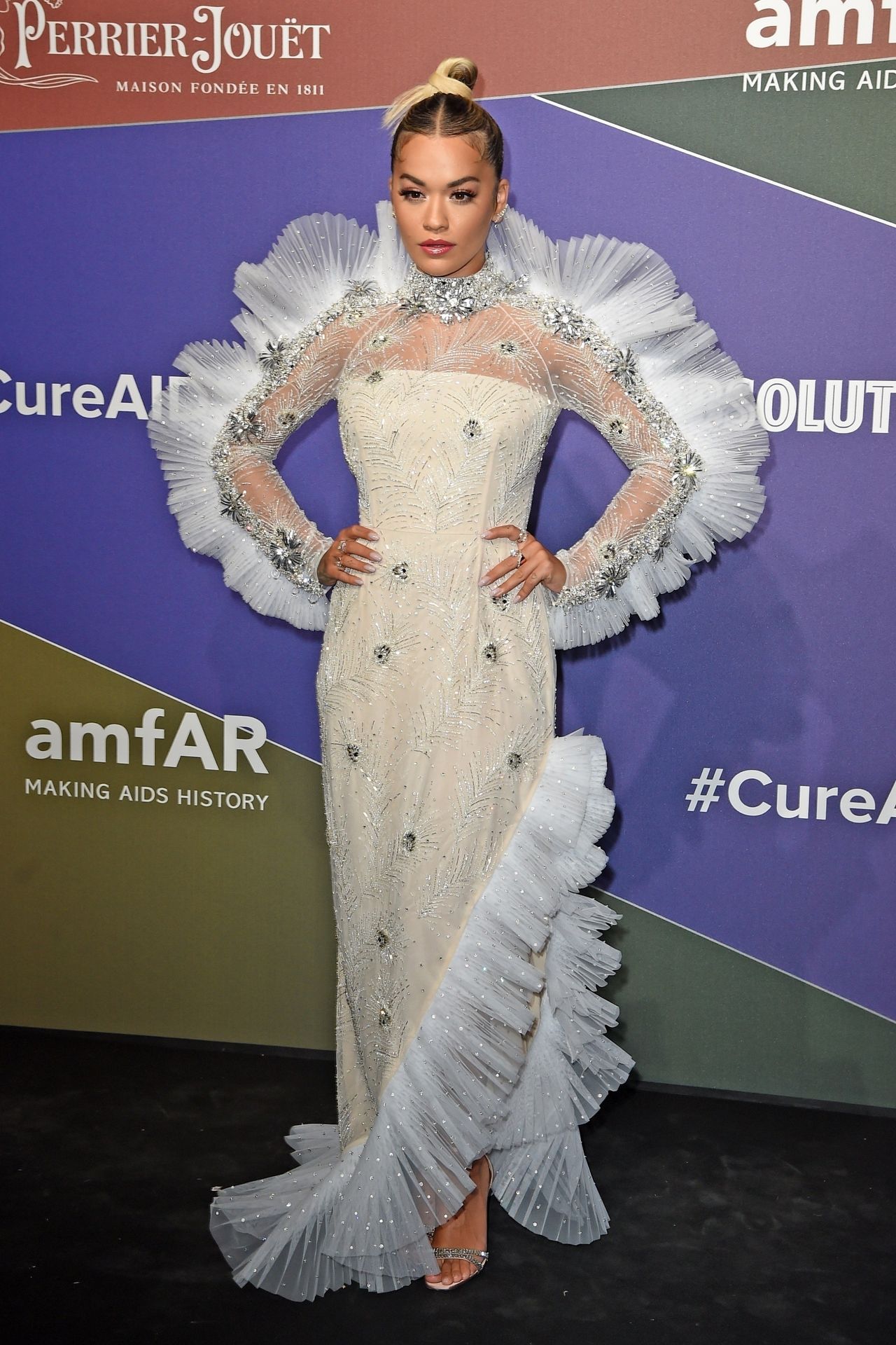 Singer Rita Ora wows in a beautiful white dress at the amfAR Gala Milano 2019 at Palazzo Mezzanotte in Milan, Italy, 09/22/2019.