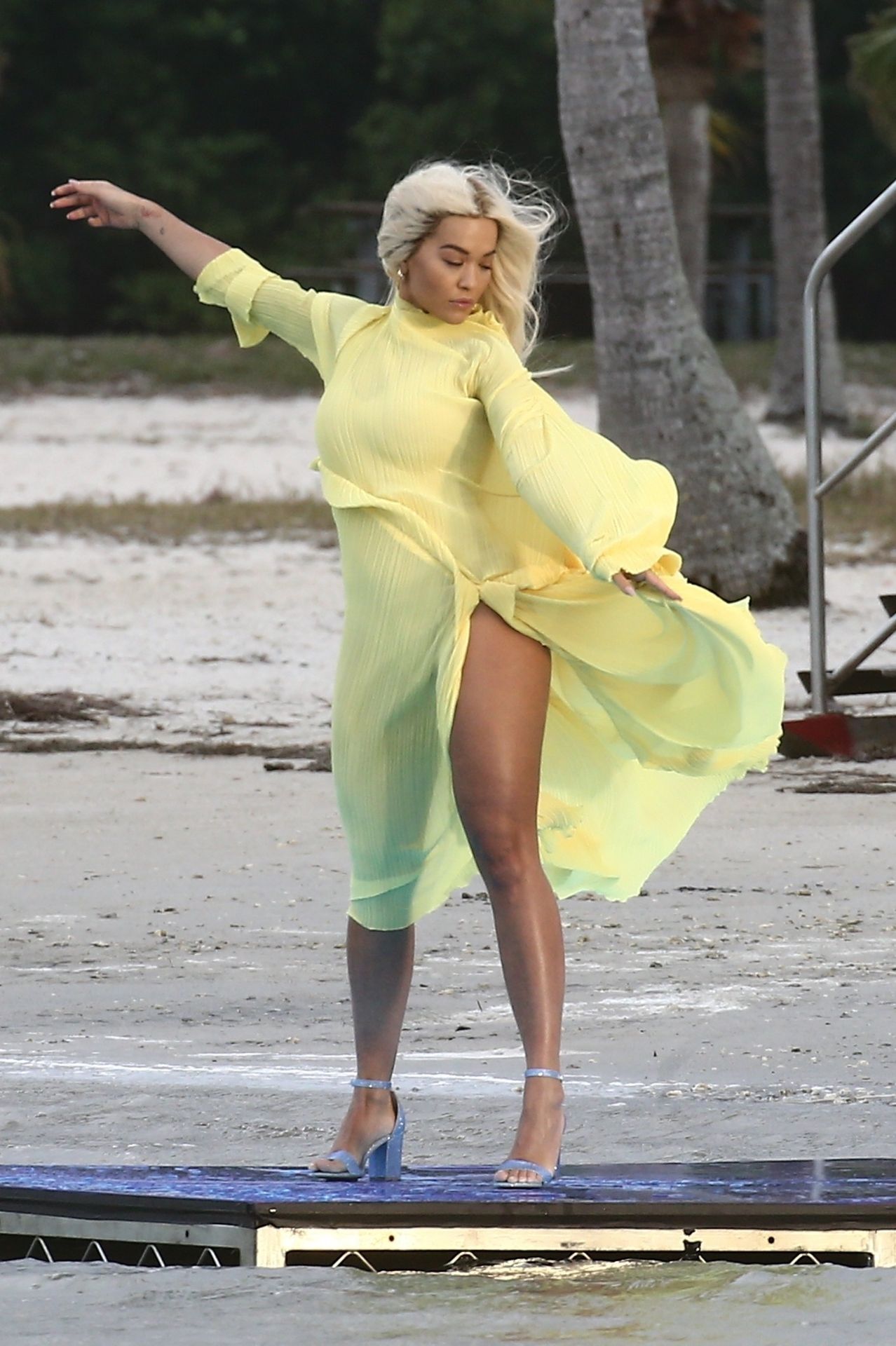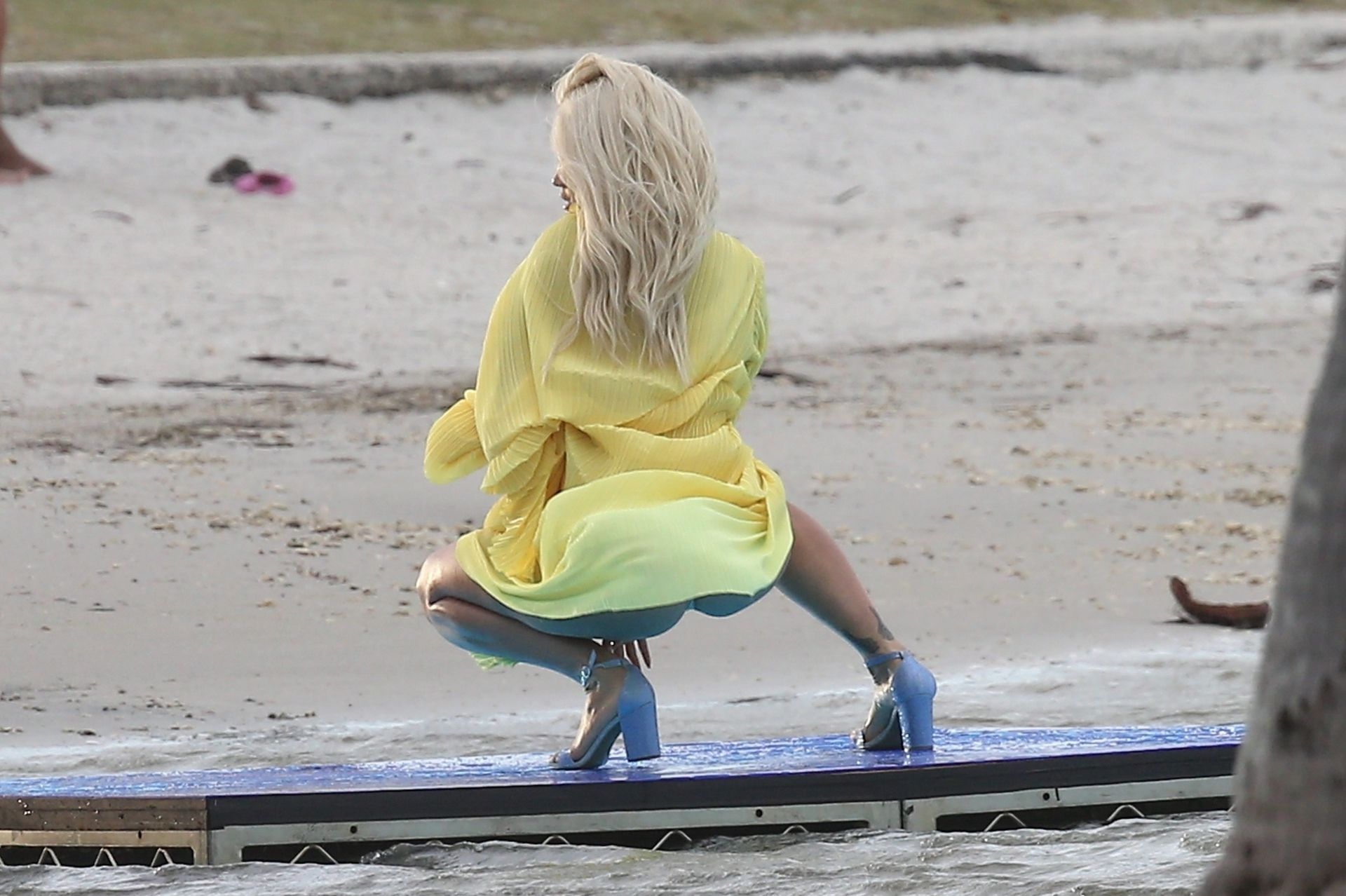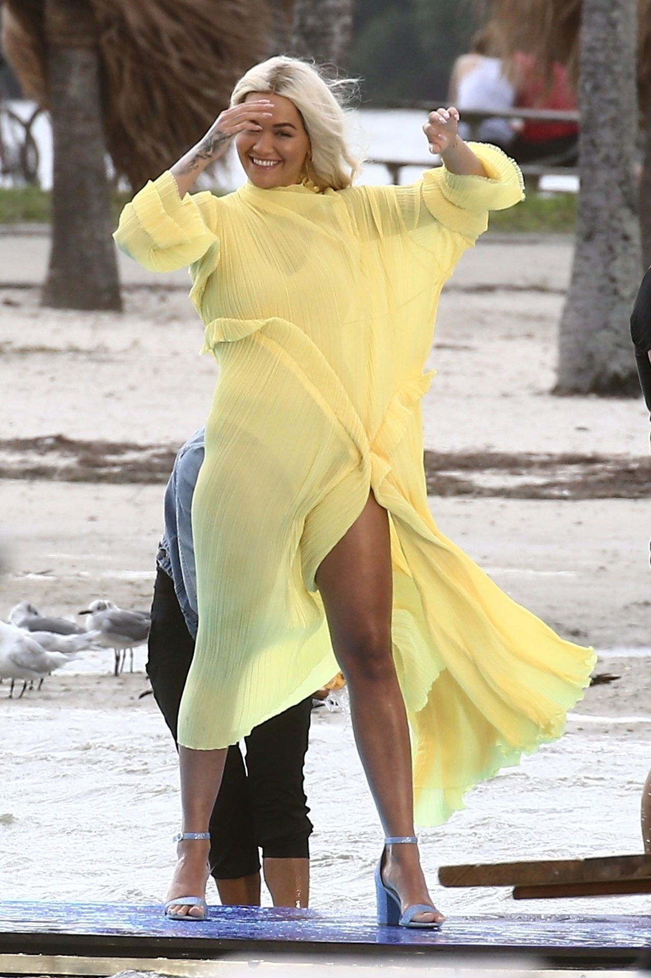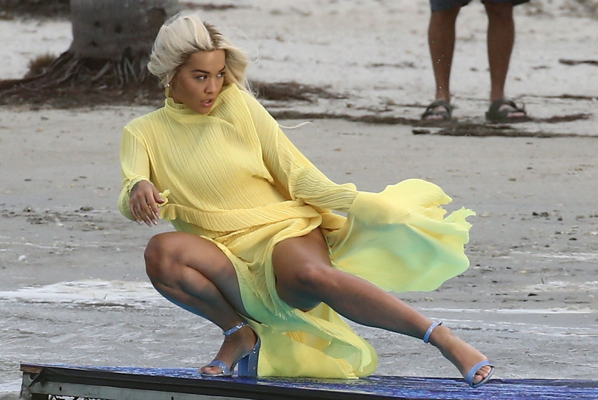 Songstress Rita Ora is in Miami shooting a video and the windy conditions might have revealed more than the singer intended, 01/10/2020.