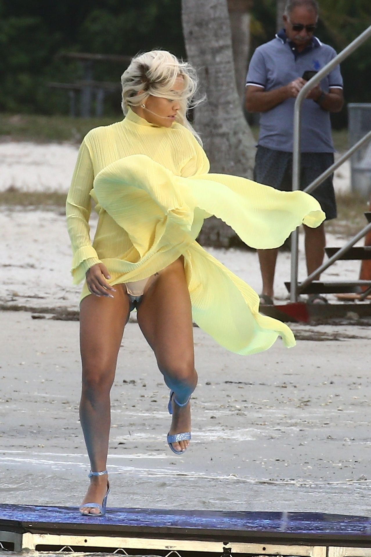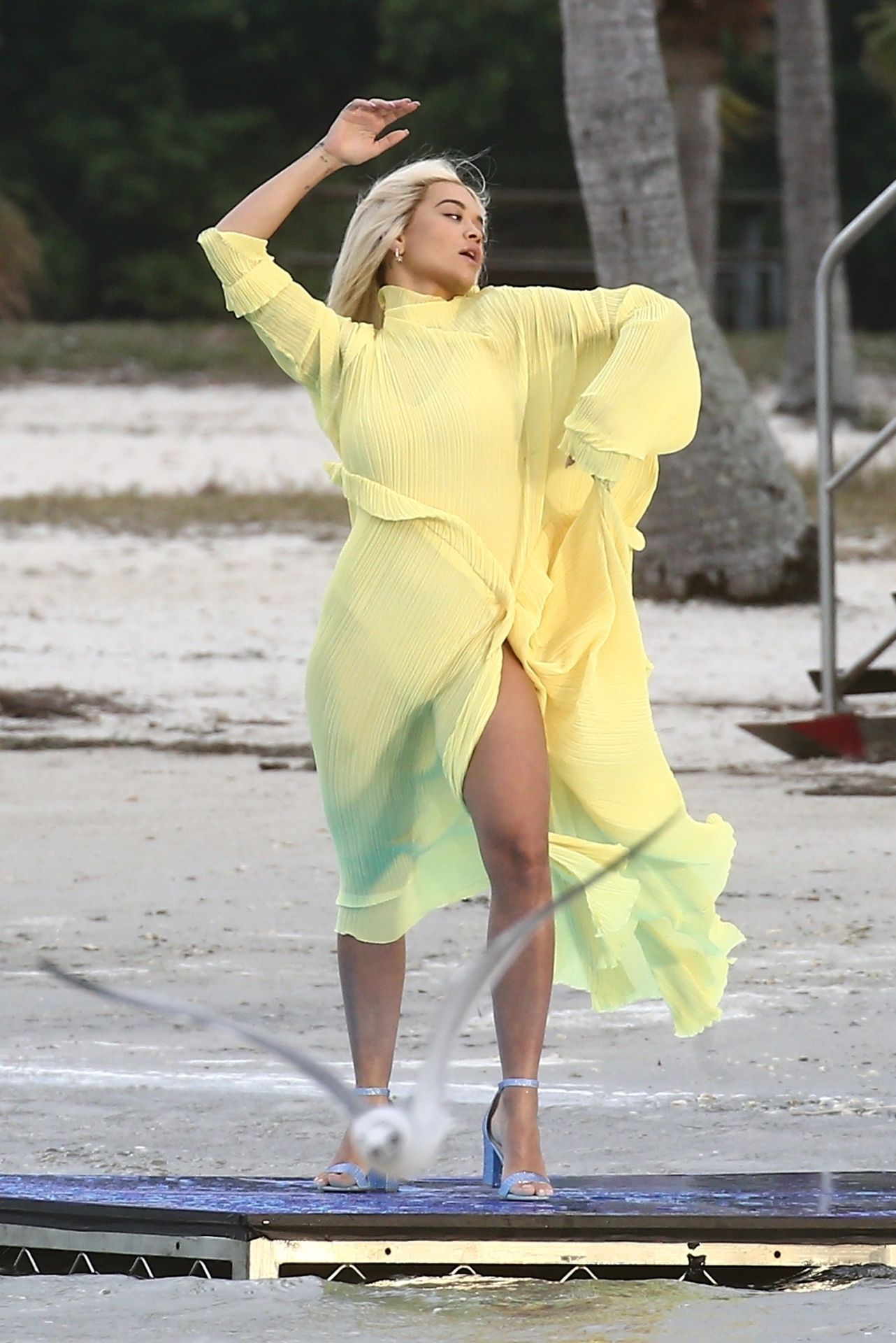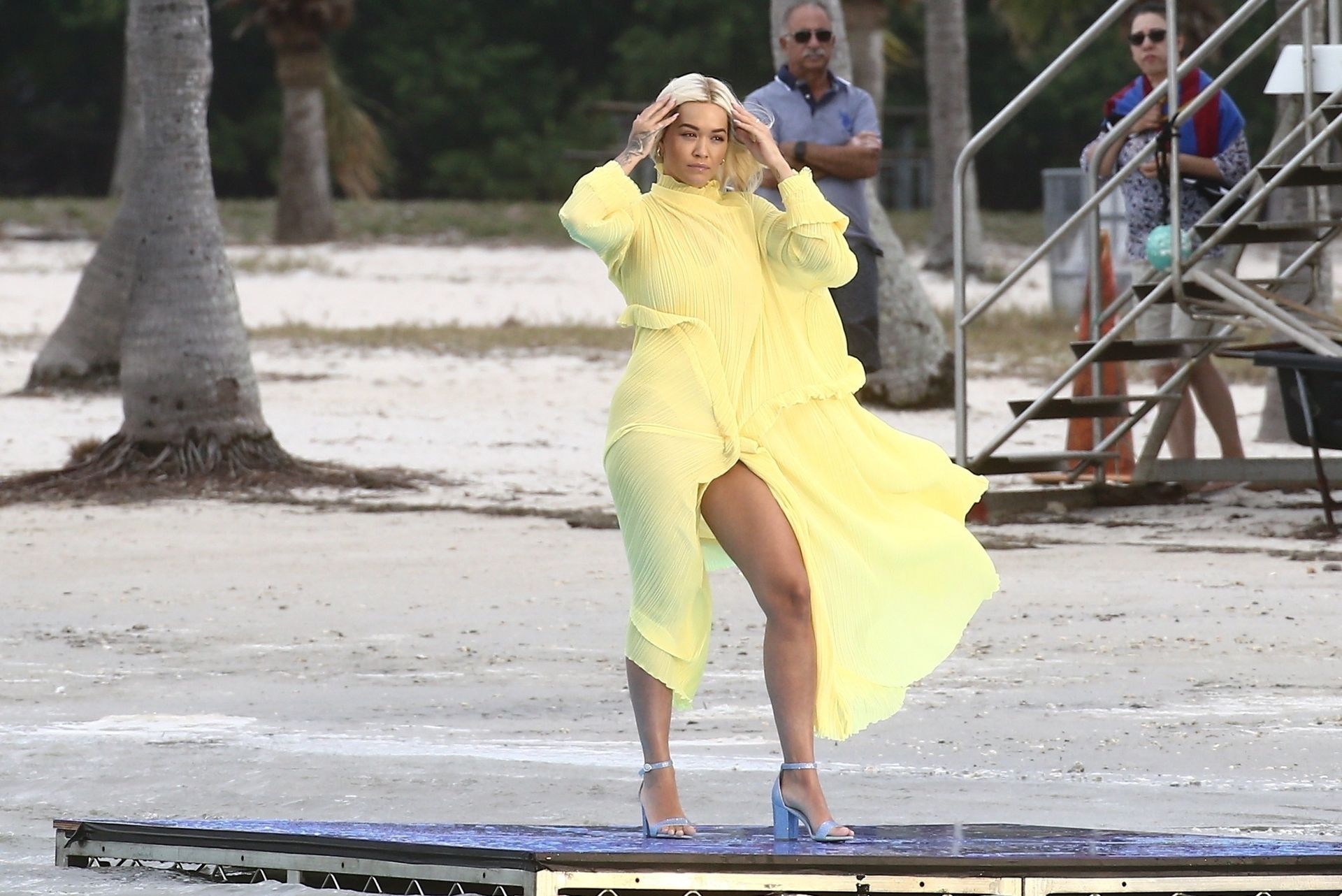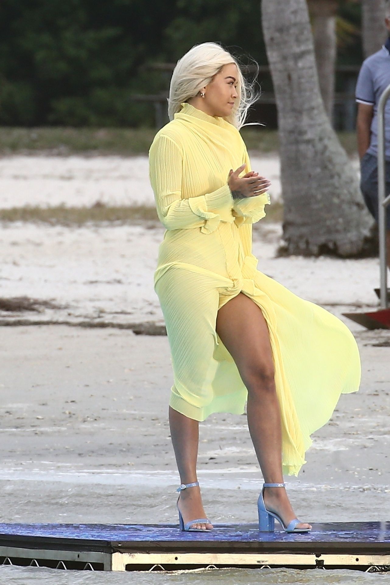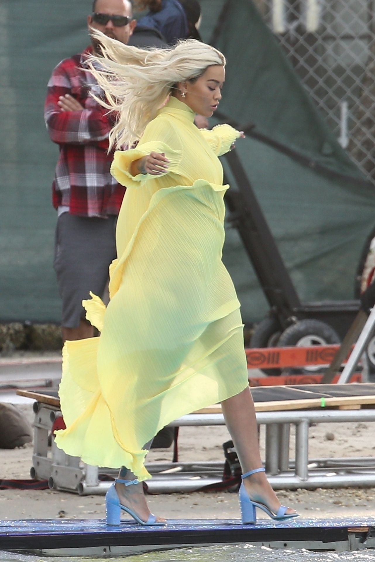 Songstress Rita Ora is in Miami shooting a video and the windy conditions might have revealed more than the singer intended, 01/10/2020.