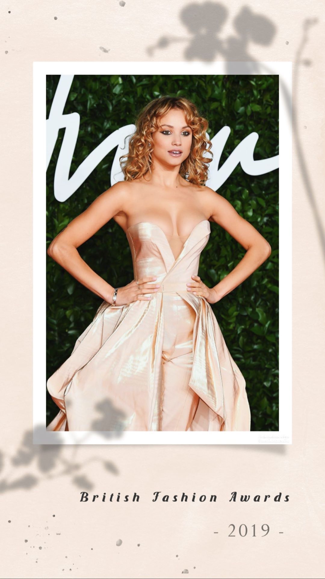 Belgian model Rose Bertram (25) displayed her perfect cleavage, while posing in a cream dress on the red carpet of The Fashion Awards 2019 at the Royal Albert Hall in London, 12/02/2019.