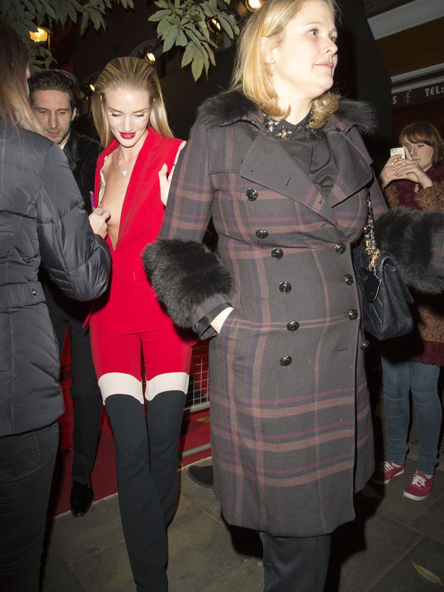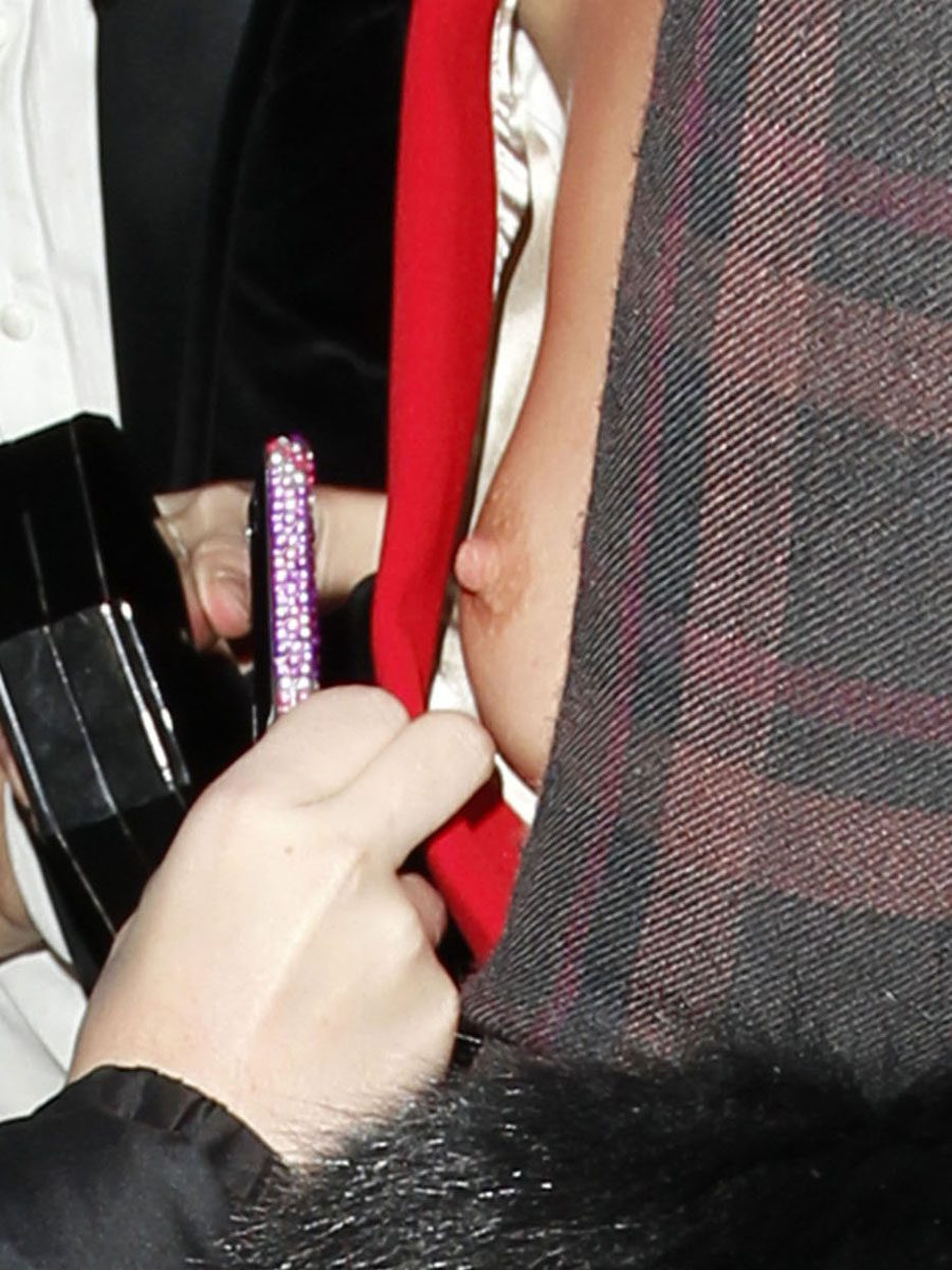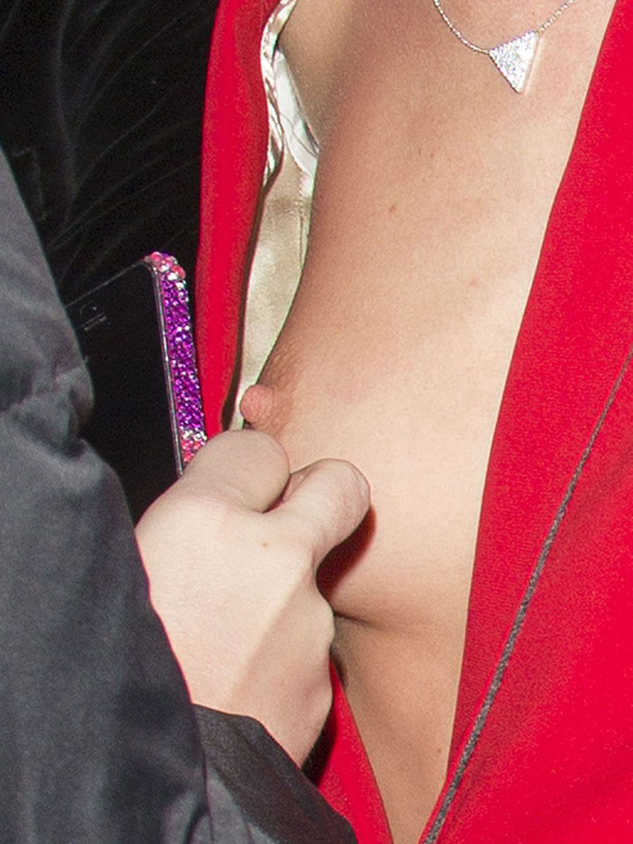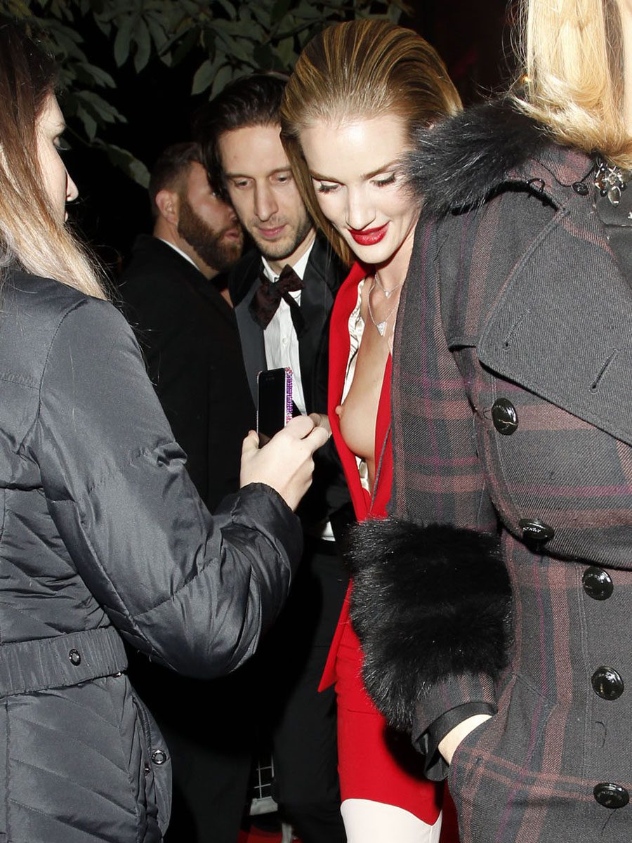 Model Rosie Huntington-Whiteley showed her bare breast for the paparazzi, while arriving at The 2013 British Fashion Awards in London.