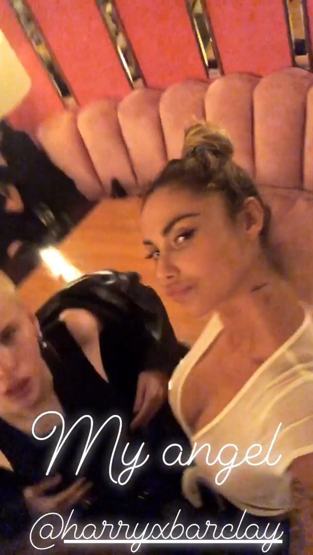 Model Sahara Ray shows off her big boobs, wearing a see-through white top at a party with friends – Instagram Stories, 09/21/2019.