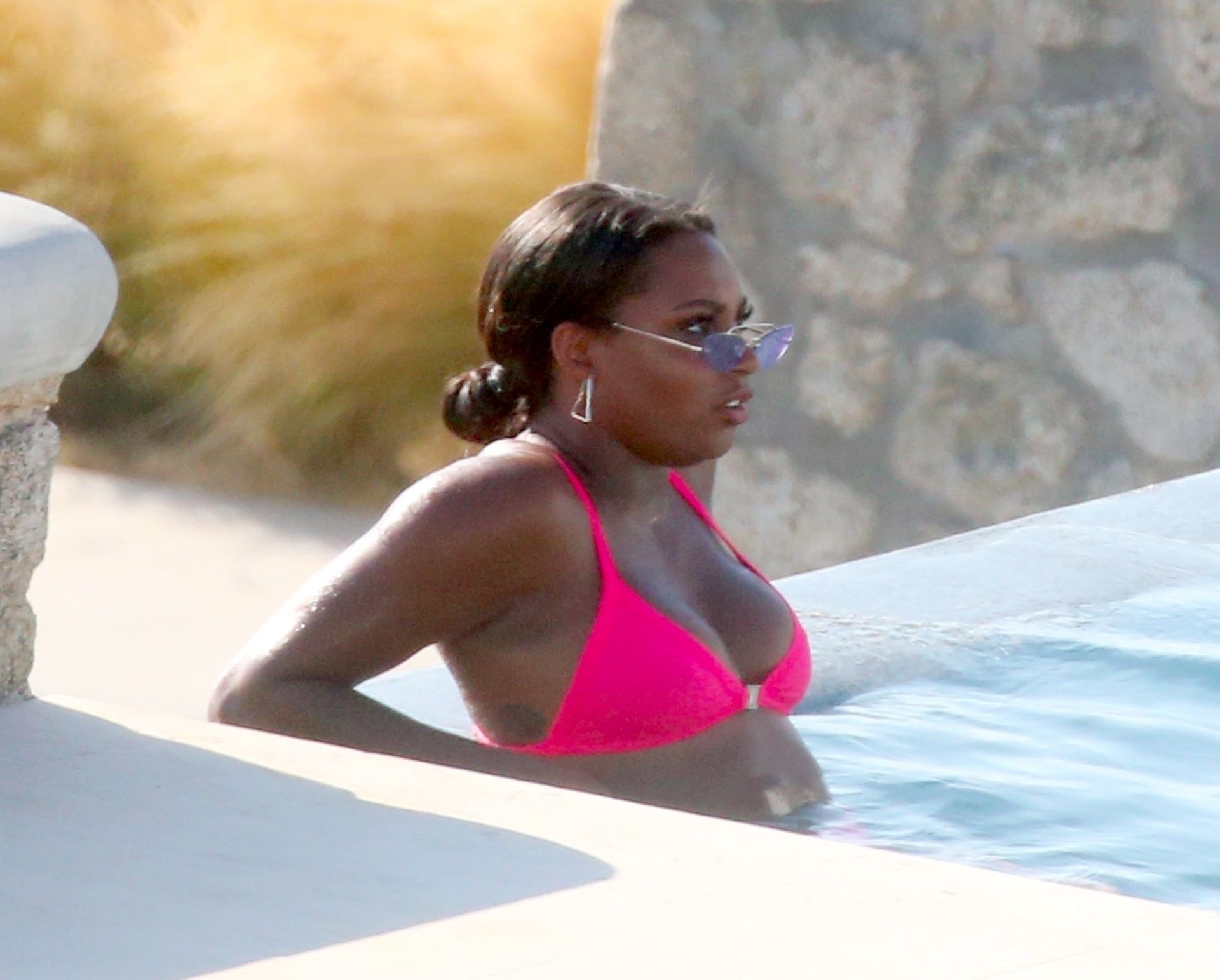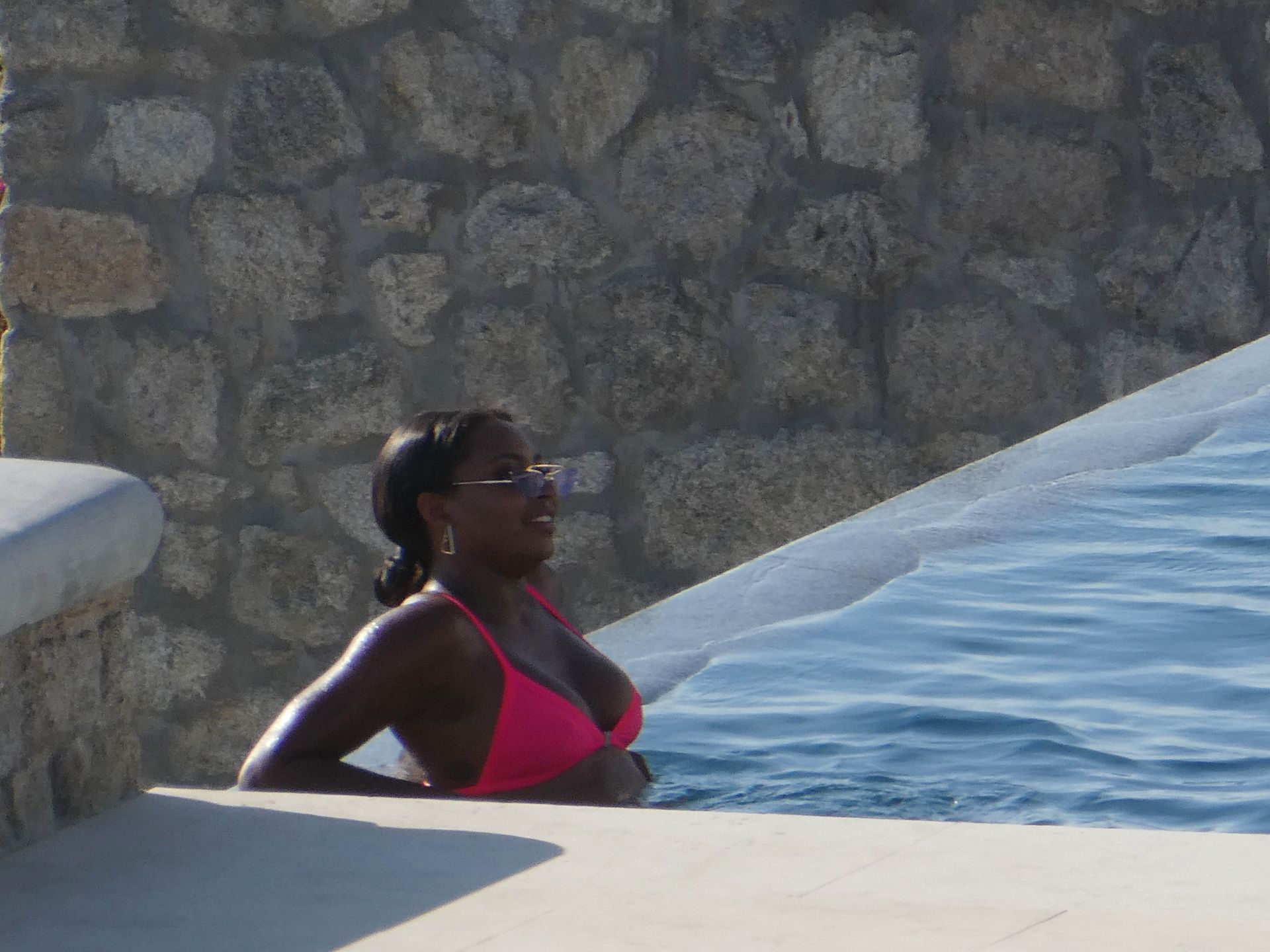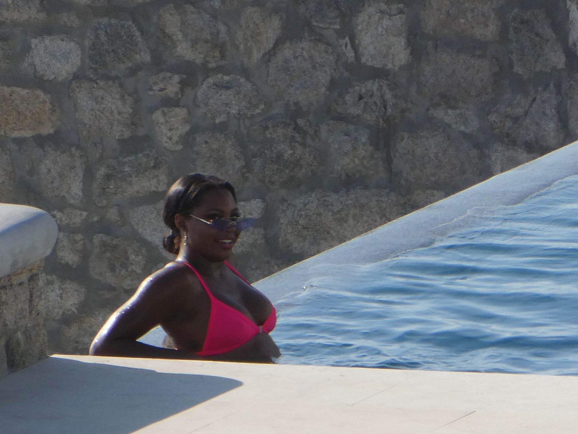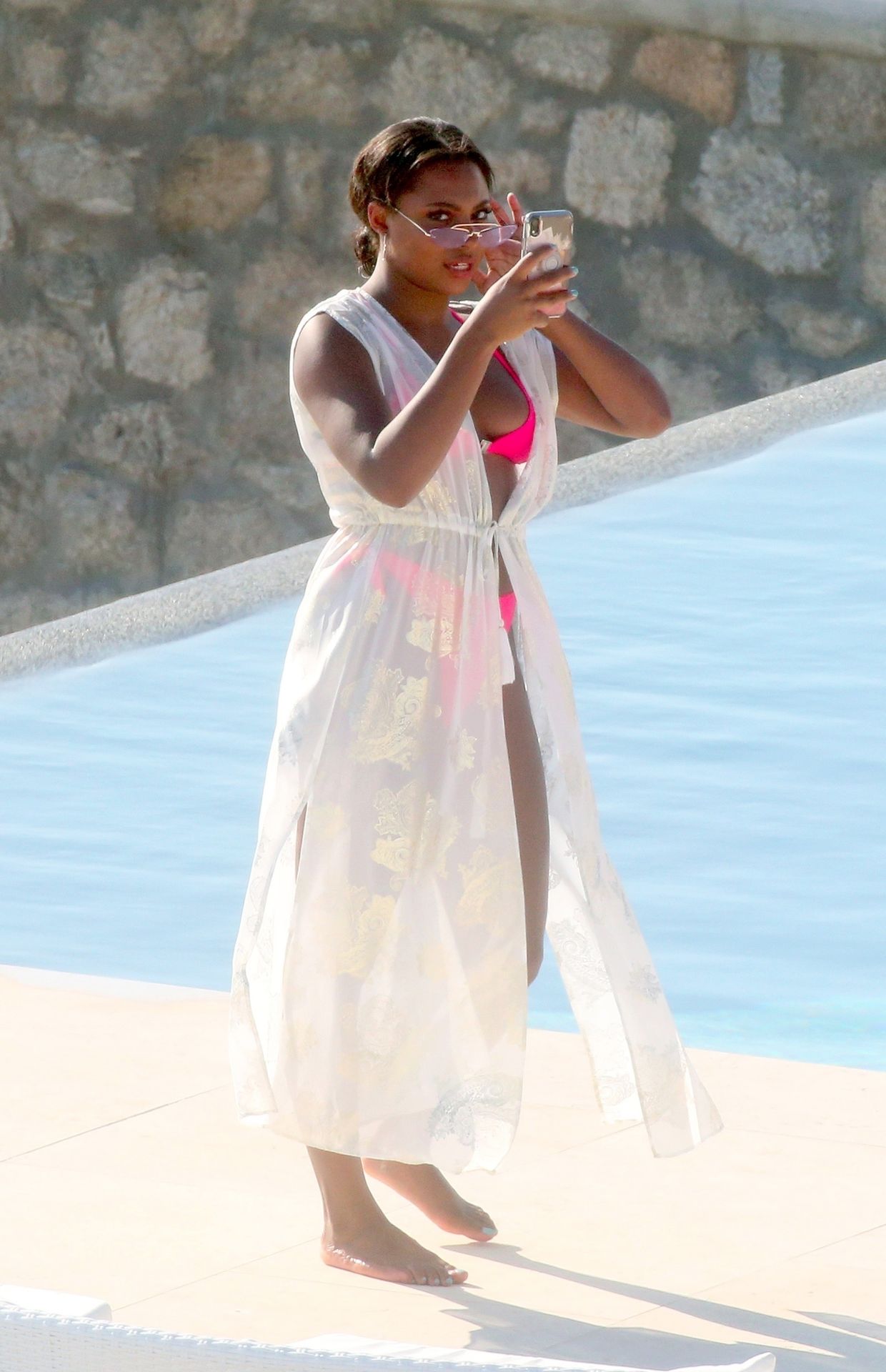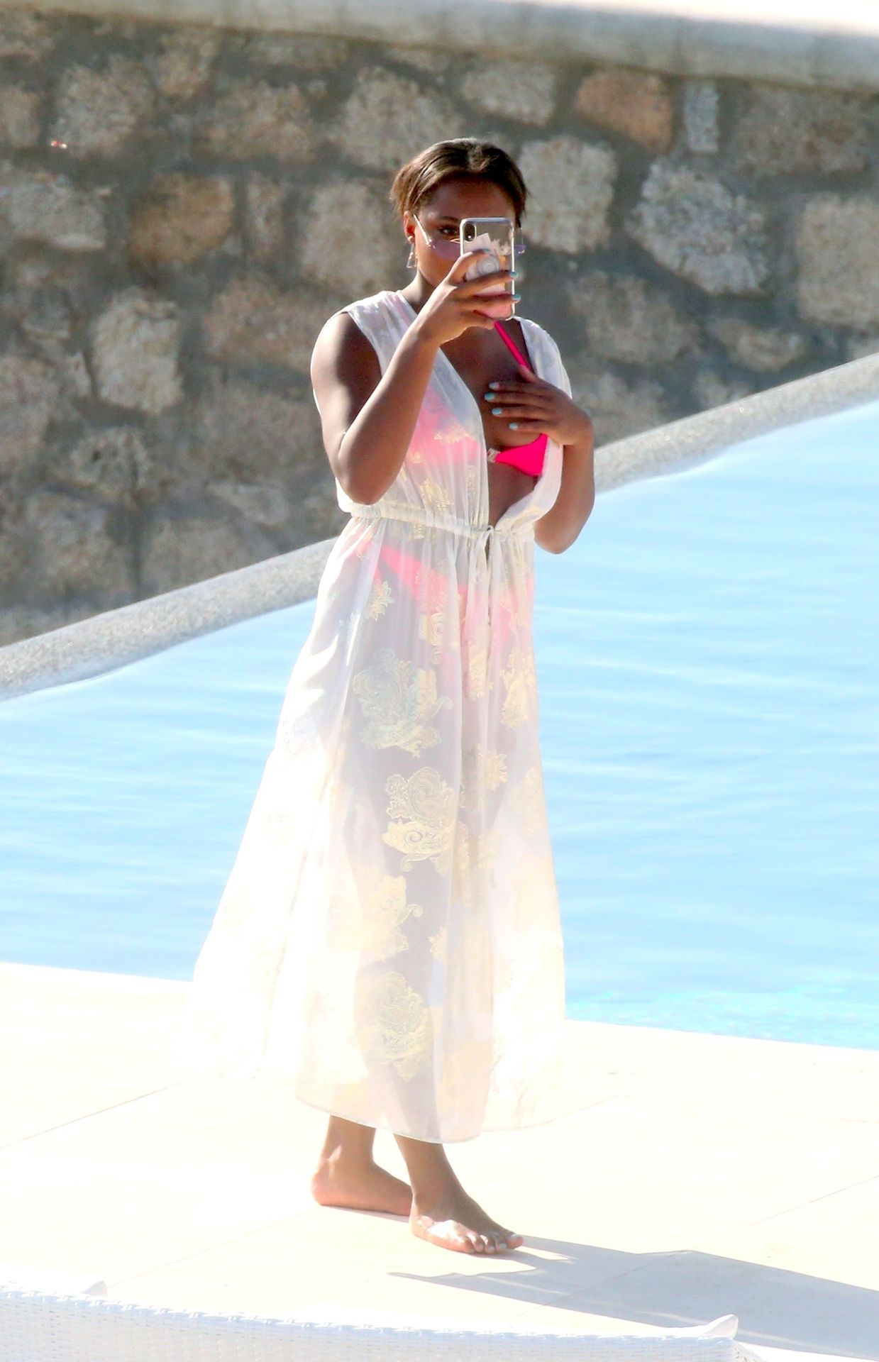 Reality TV personality Samira Mighty was seen in a pink bikini chilling at her pool during vacation in Mykonos, 06/08/2019.