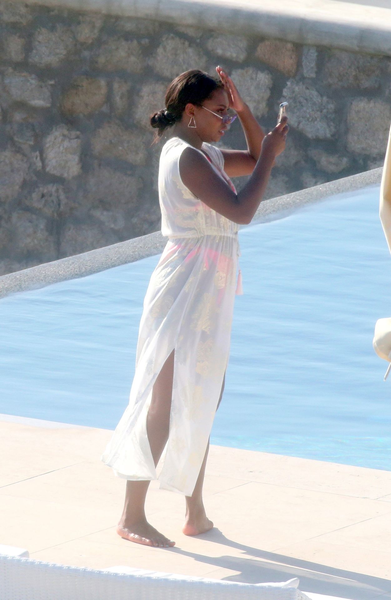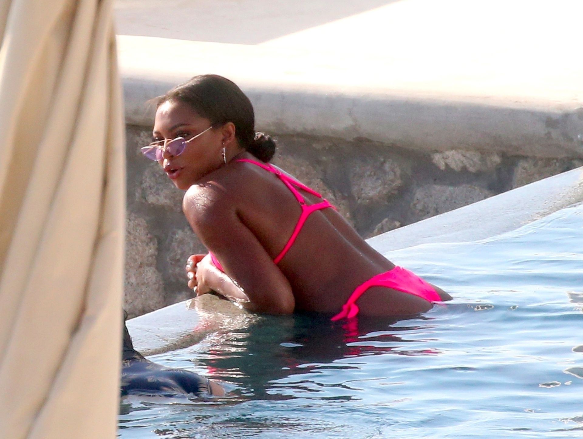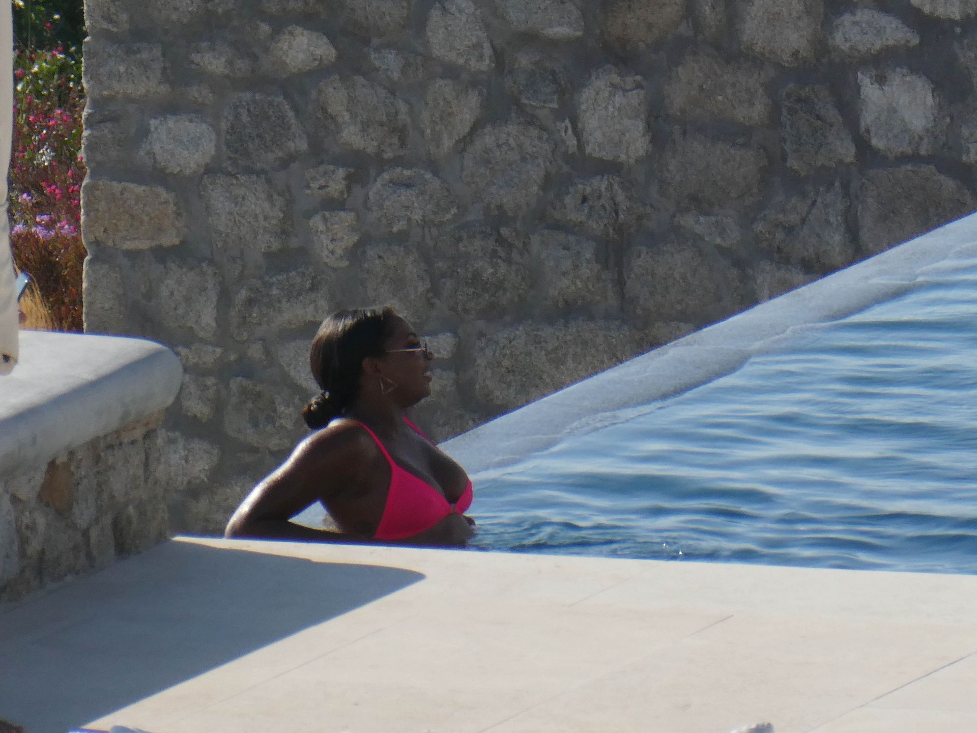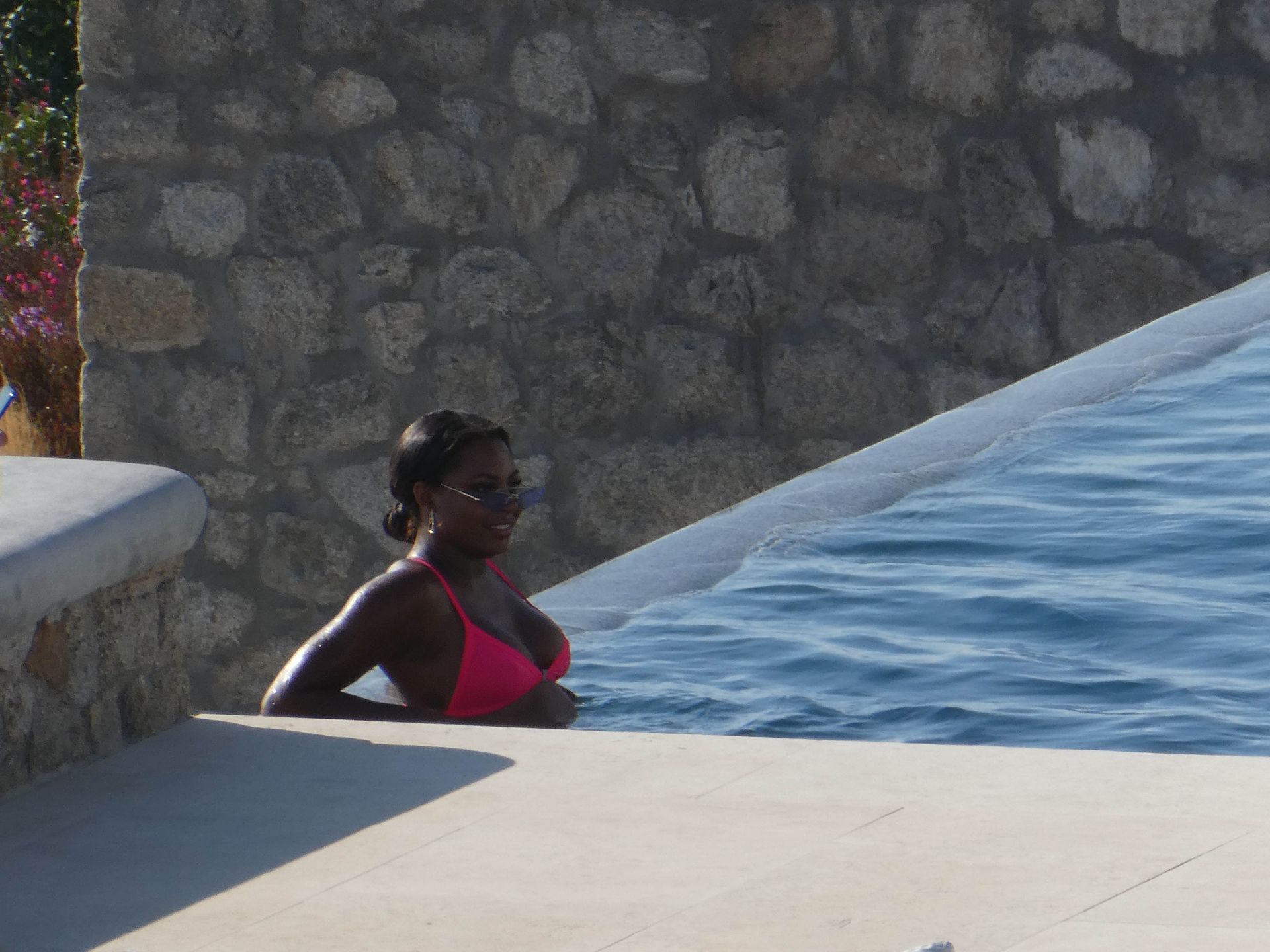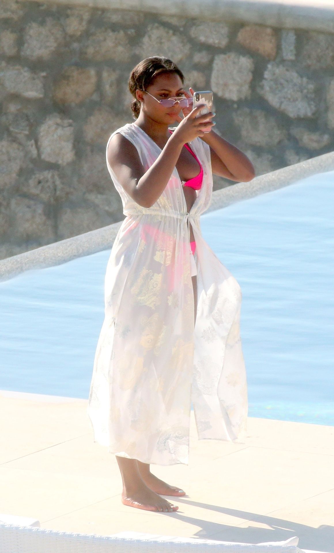 Reality TV personality Samira Mighty was seen in a pink bikini chilling at her pool during vacation in Mykonos, 06/08/2019.