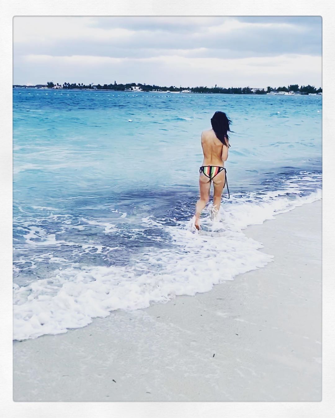 Actress and The Fappening Star Sarah Shahi shared a few topless (covered) photos from her vacation in the Bahamas – Instagram (January 2020).
