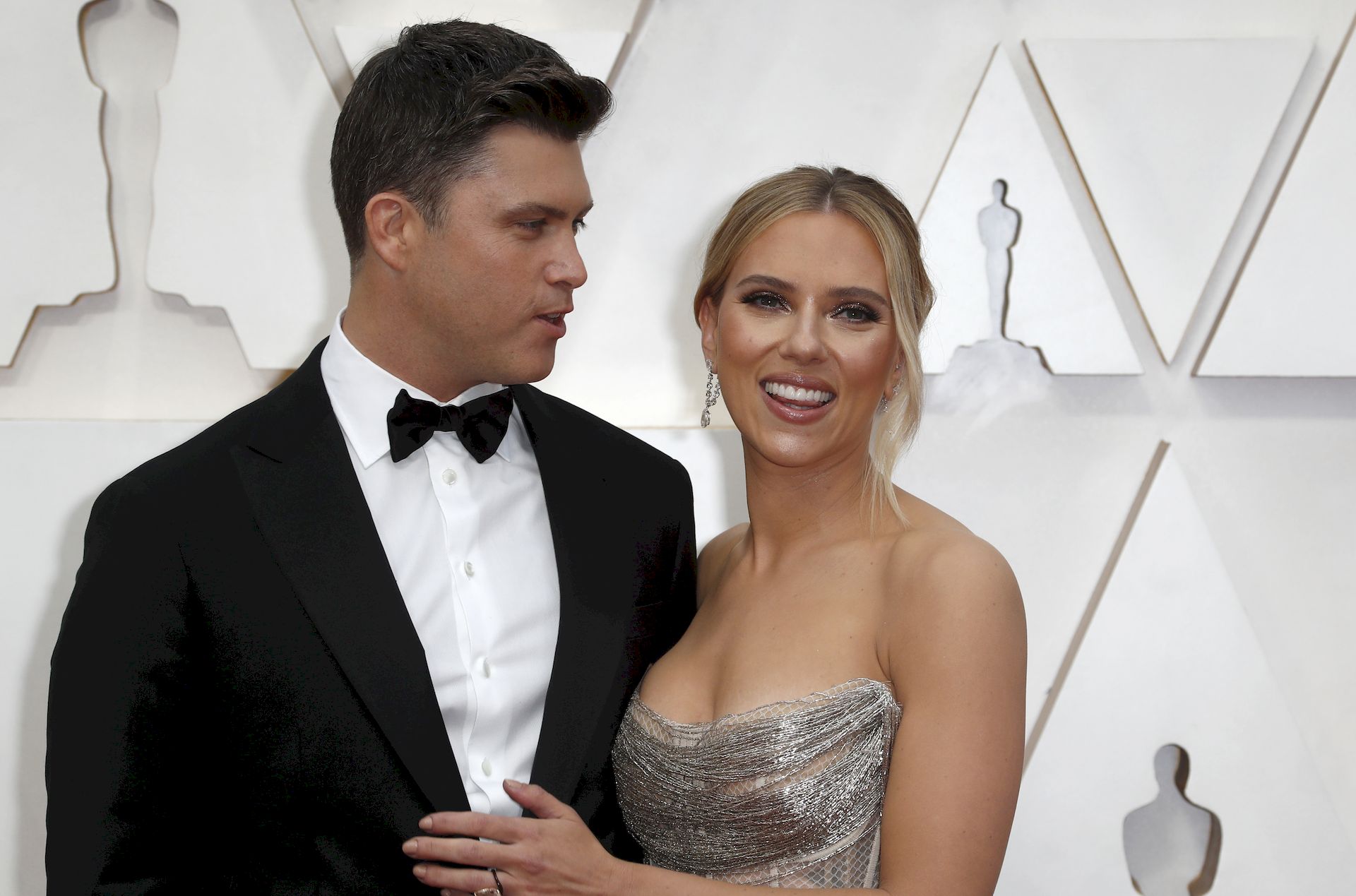Taika Waititi took home the award for Best Adapted Screenplay for penning Jojo Rabbit at the 92nd Oscars, and received a congratulatory kiss from Scarlett Johansson who stars in the movie and showed her cleavage on the red carpet.