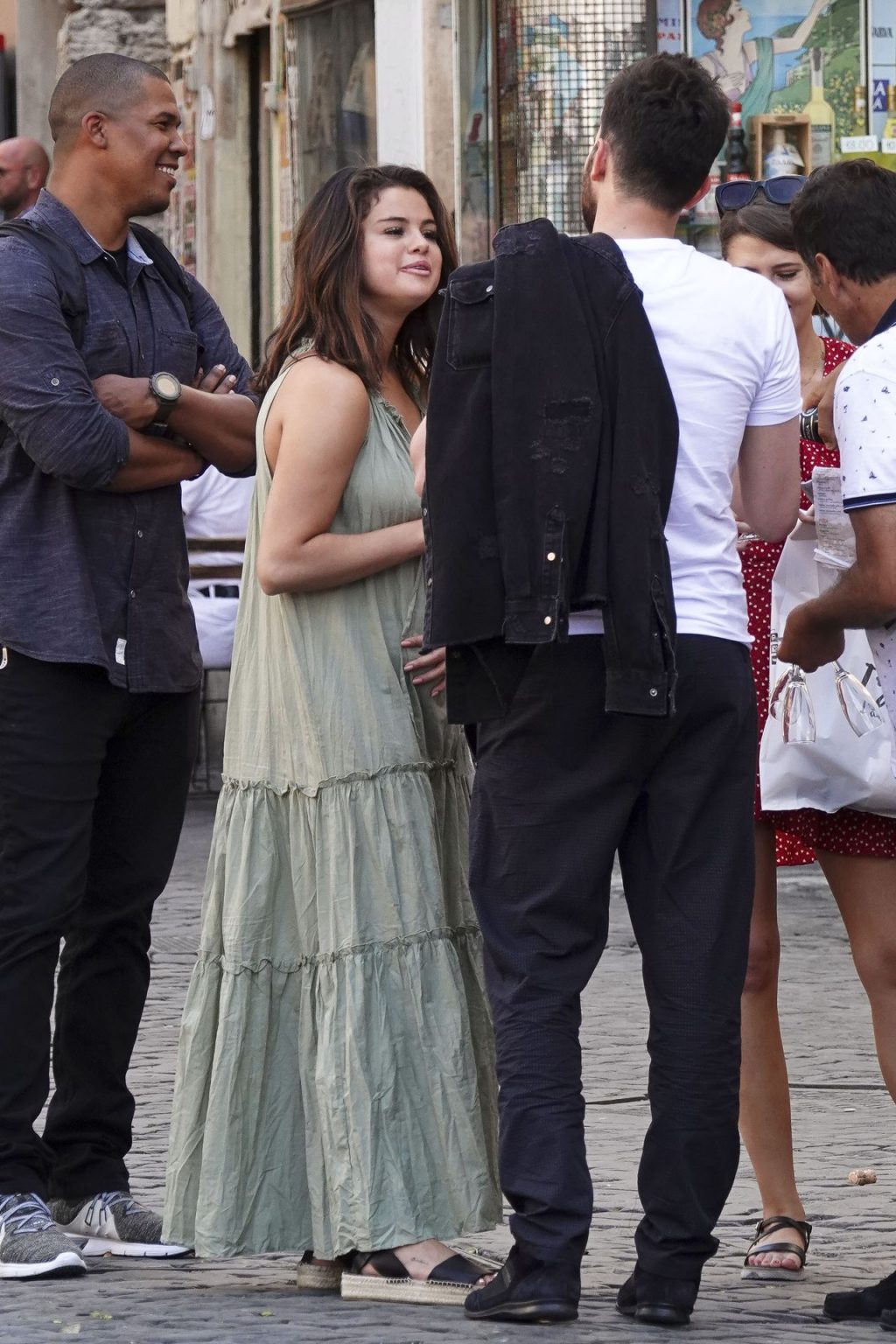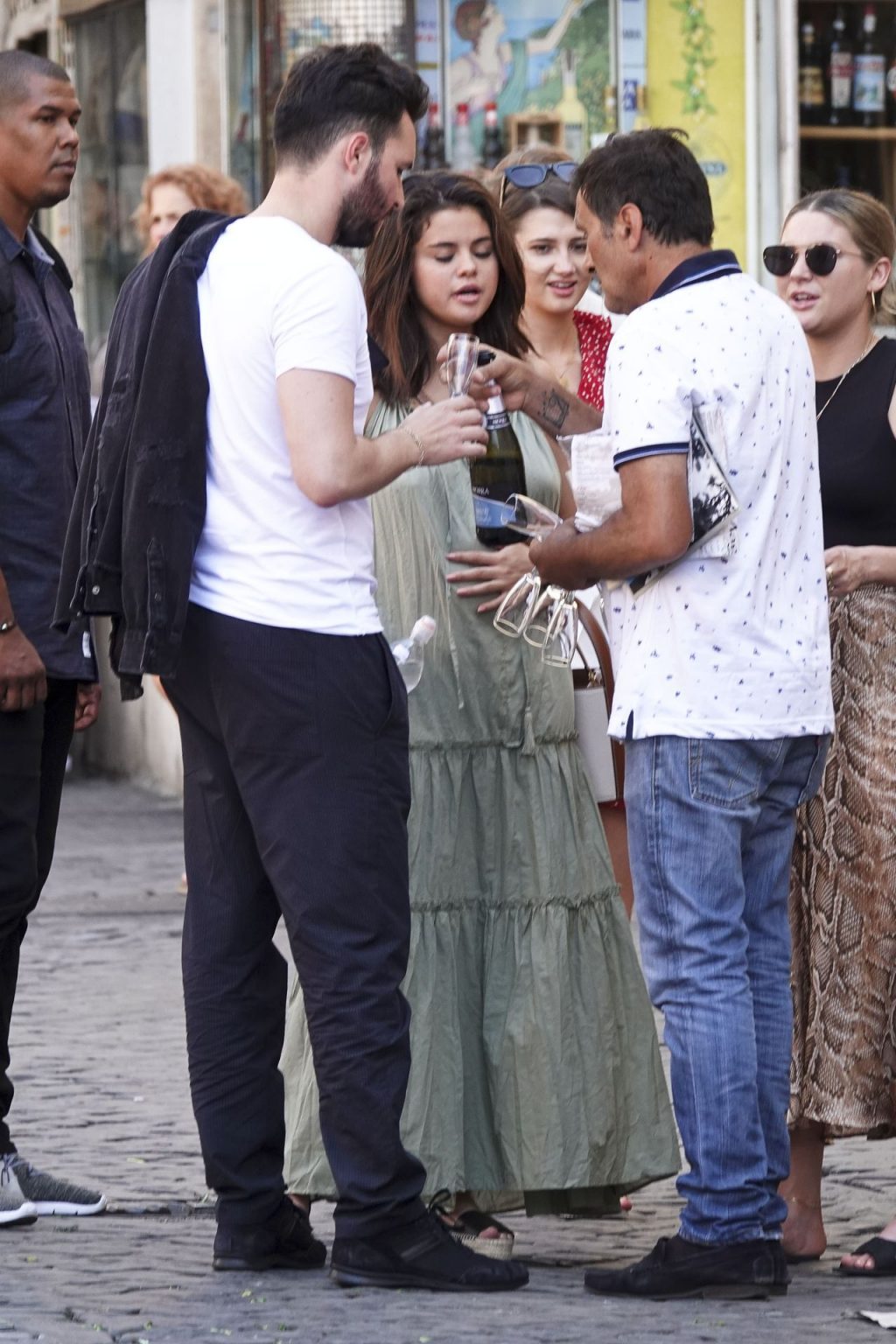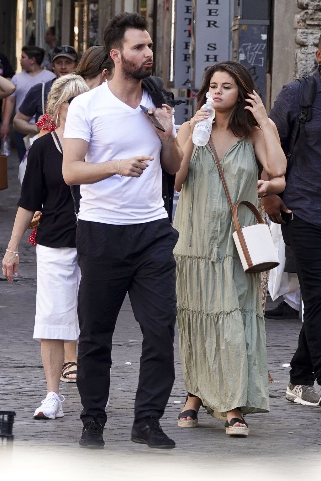Braless Selena Gomez is spotted having lunch at Pierluigi restaurant, then strolling in Rome with film producer Andrea Jervolino, 07/22/2019.