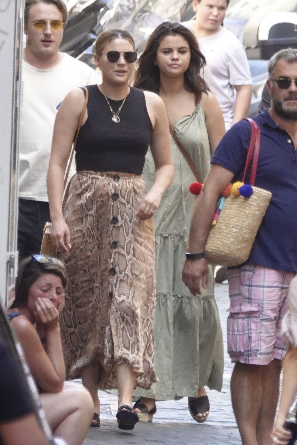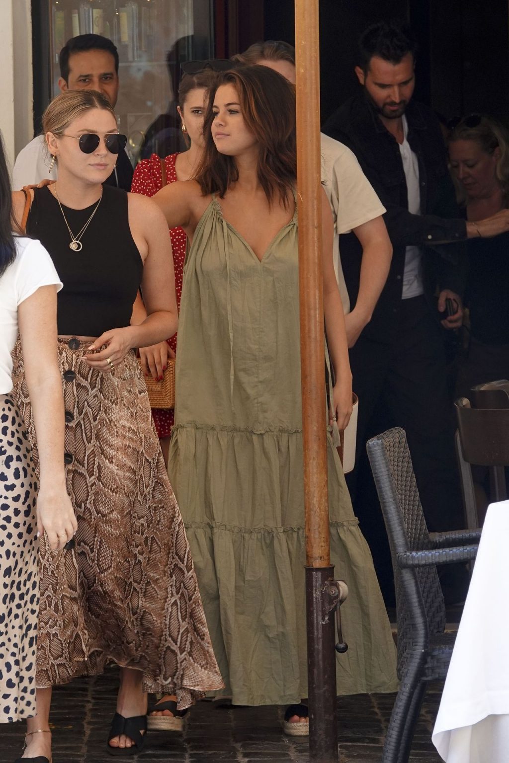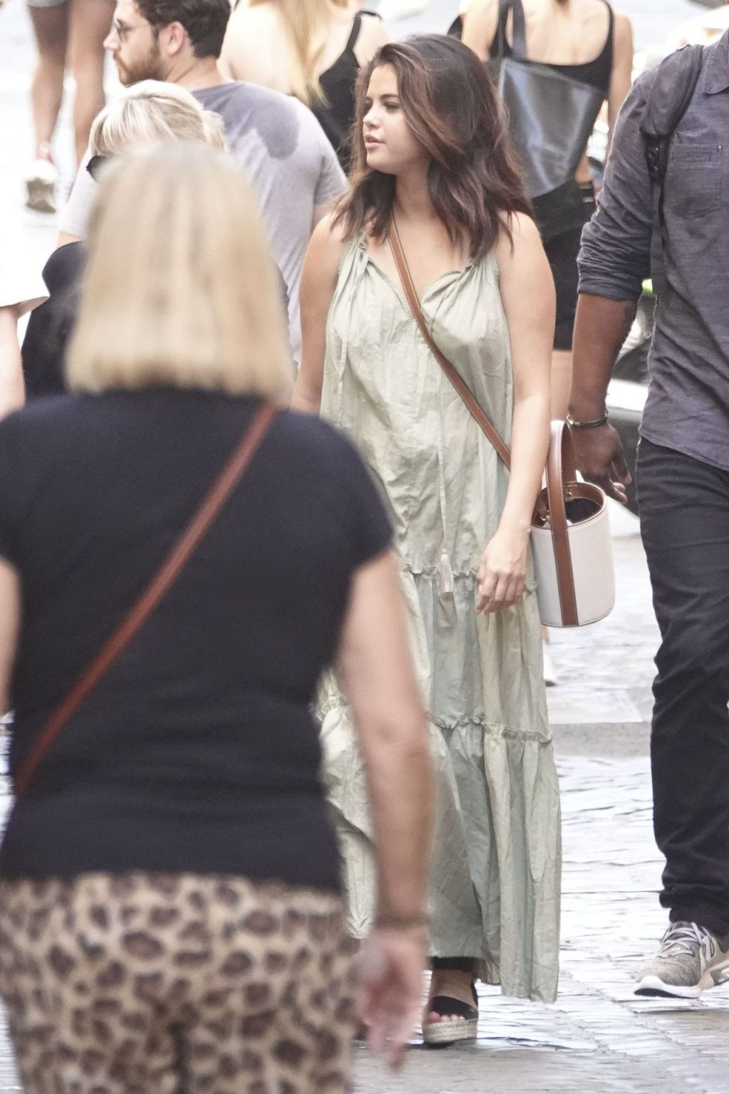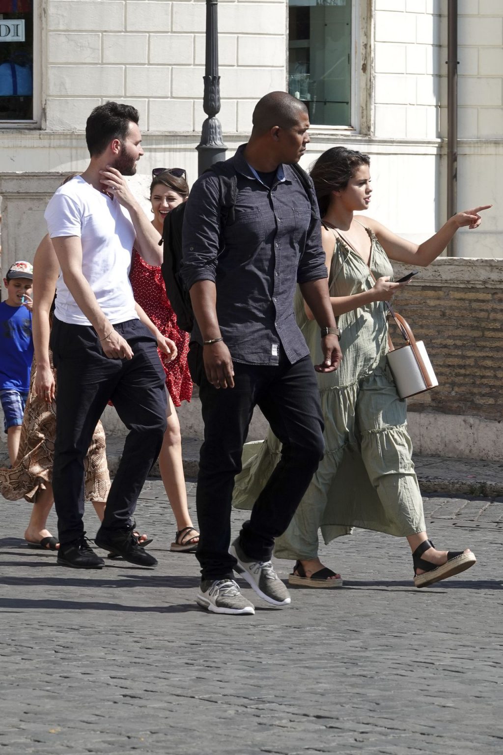 Braless Selena Gomez is spotted having lunch at Pierluigi restaurant, then strolling in Rome with film producer Andrea Jervolino, 07/22/2019.