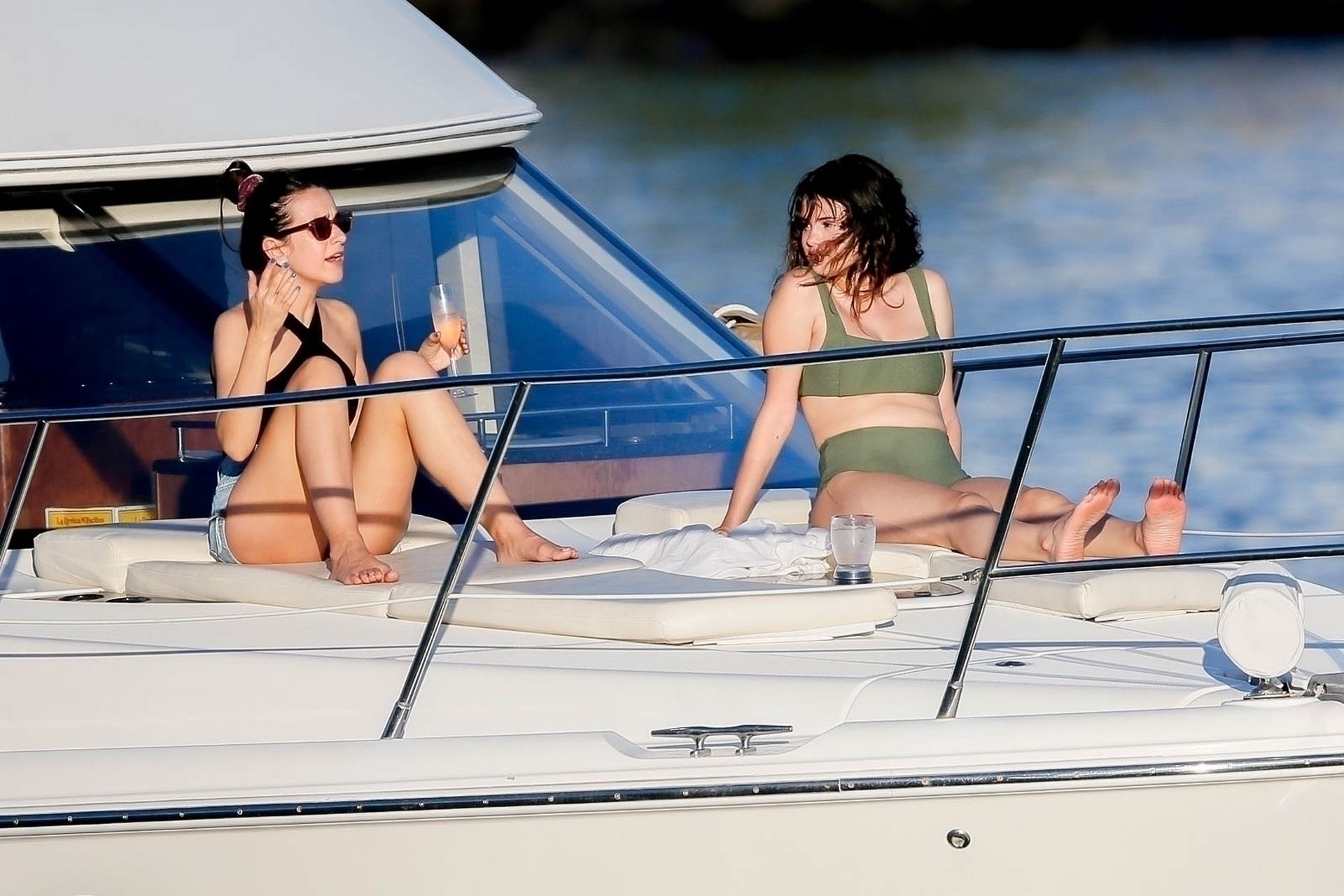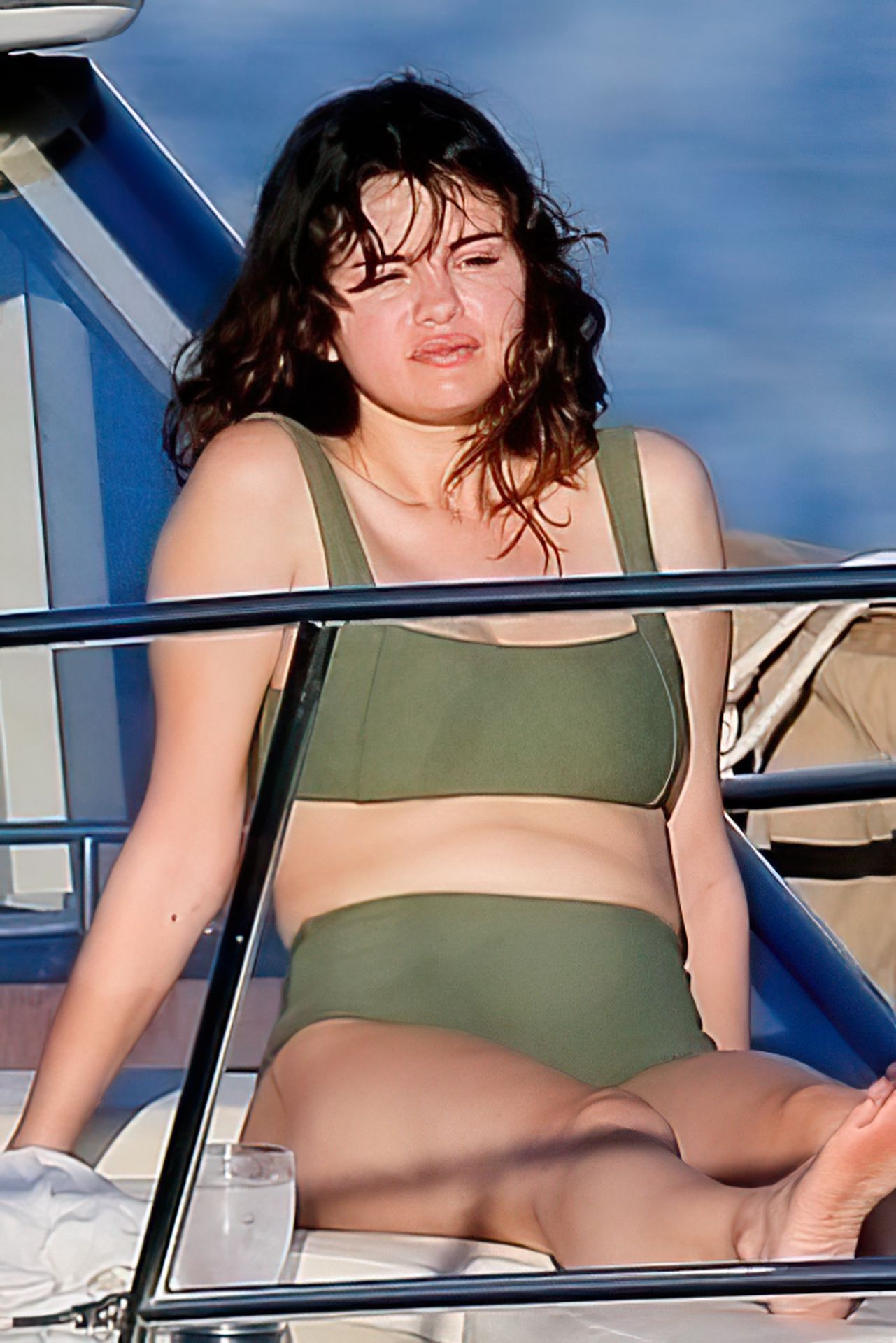 Selena Gomez stuns as she soaks up the sun in green bikini aboard luxury yacht in Hawaii, 12/31/2019.