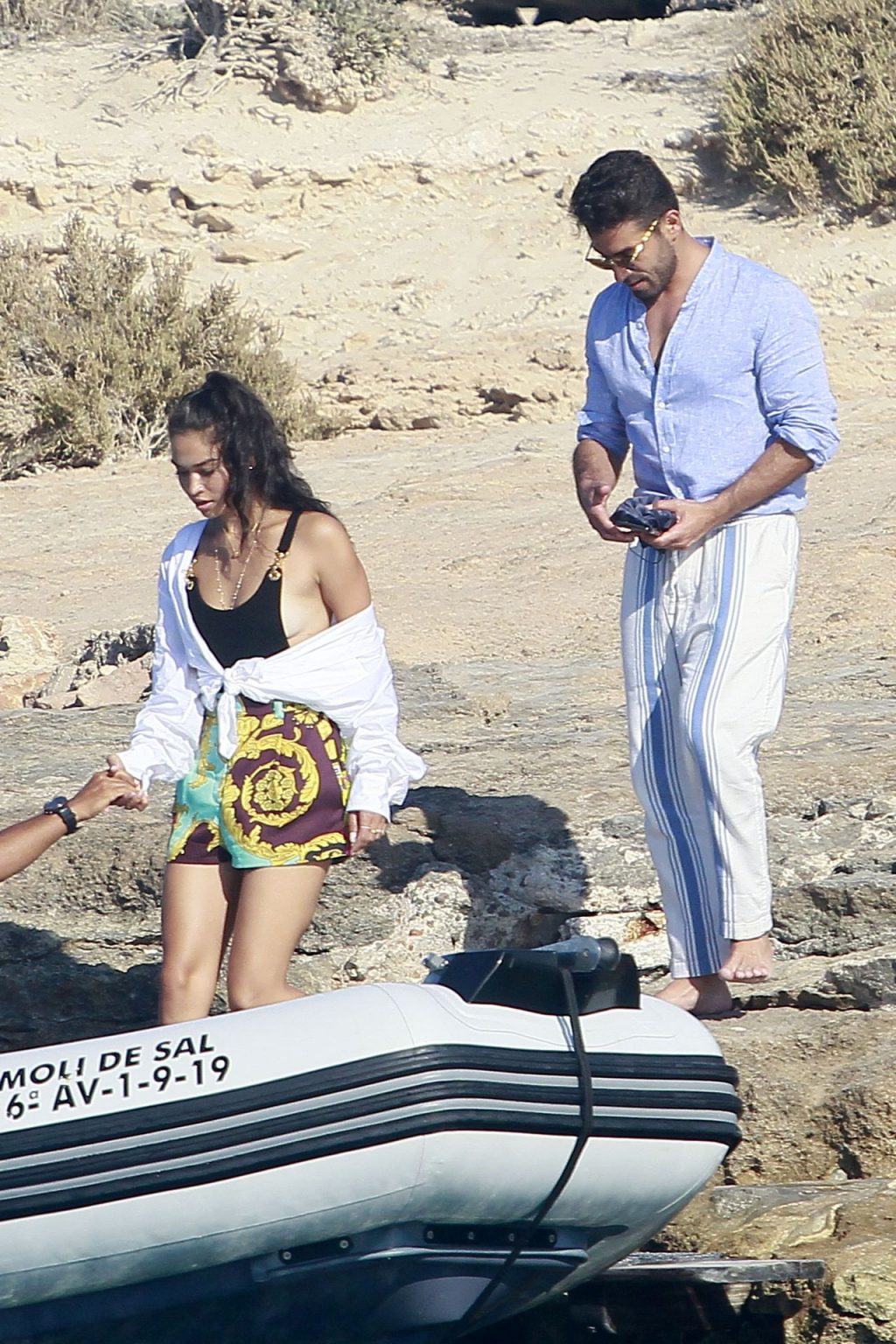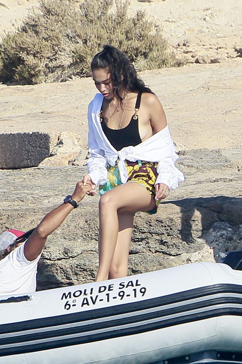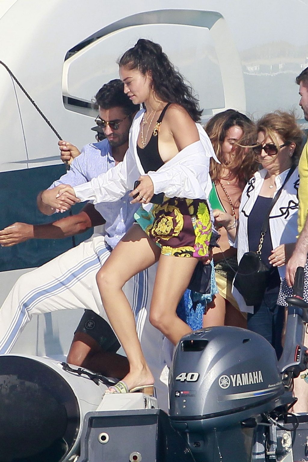 Model Shanina Shaik enjoys another day on board of a yacht with friends and unknown male in Formentera, Spain, 08/16/2019.