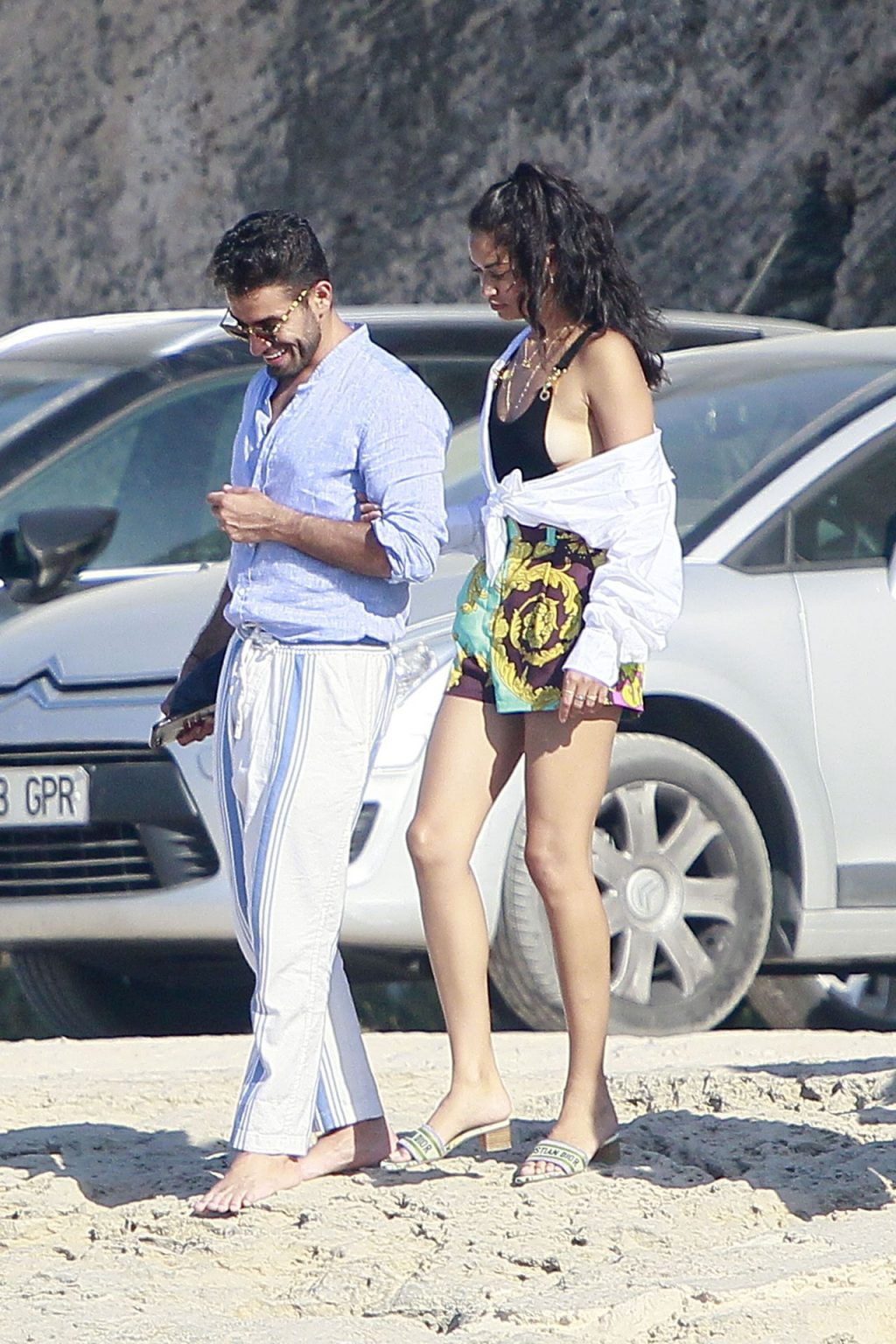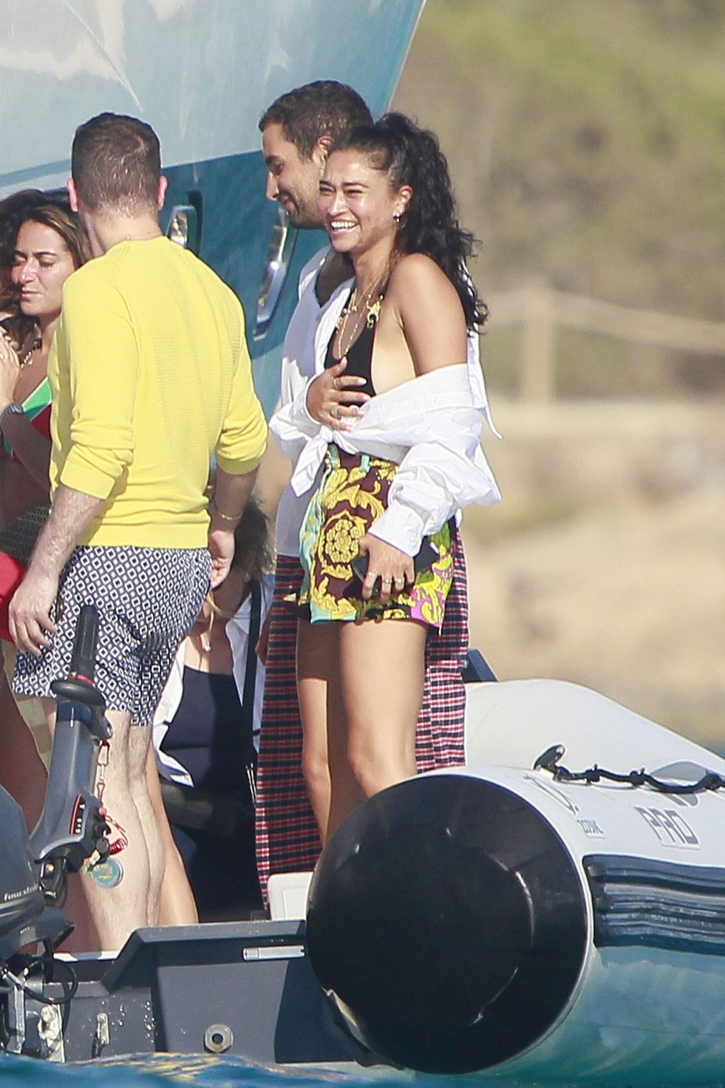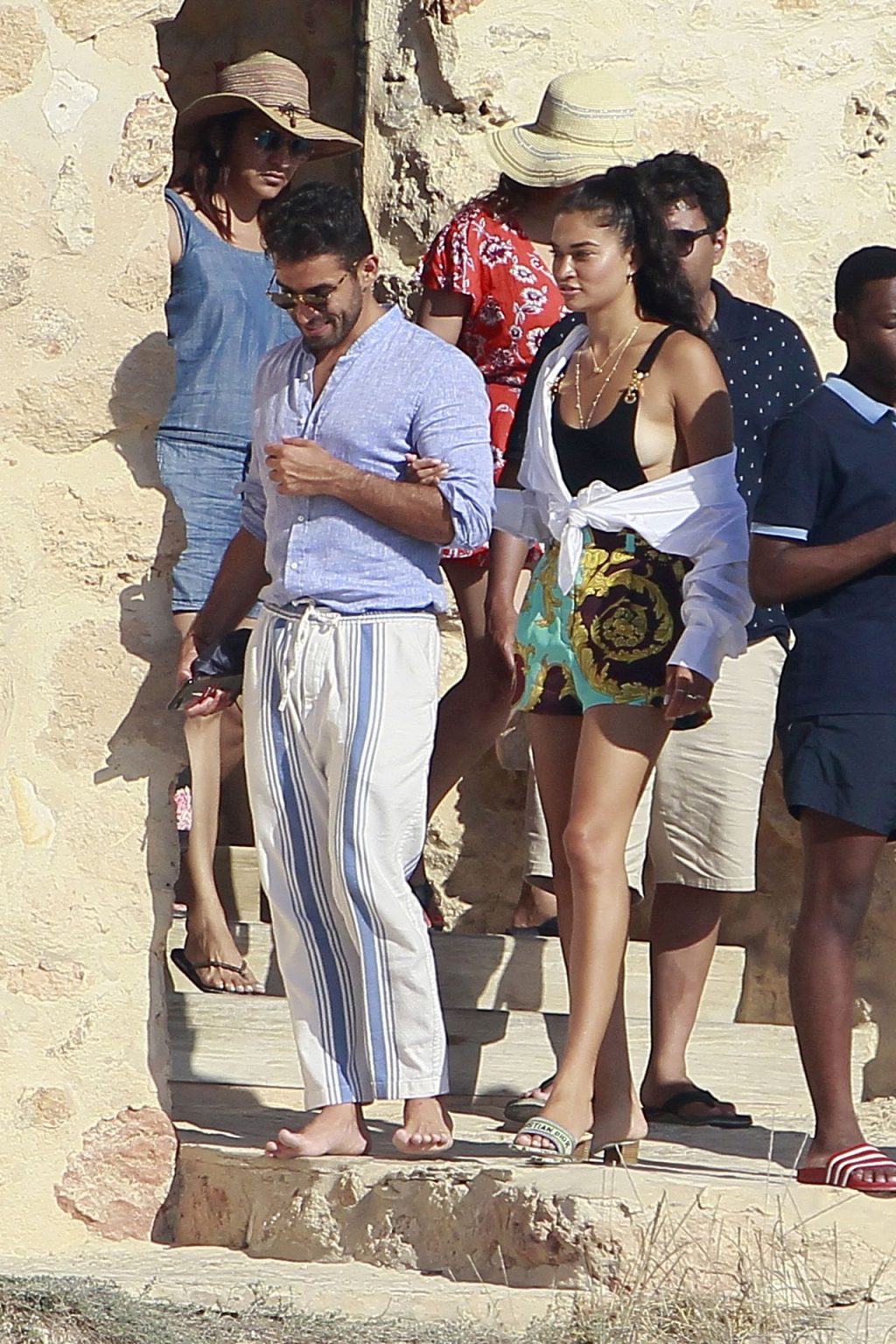 Model Shanina Shaik enjoys another day on board of a yacht with friends and unknown male in Formentera, Spain, 08/16/2019.
